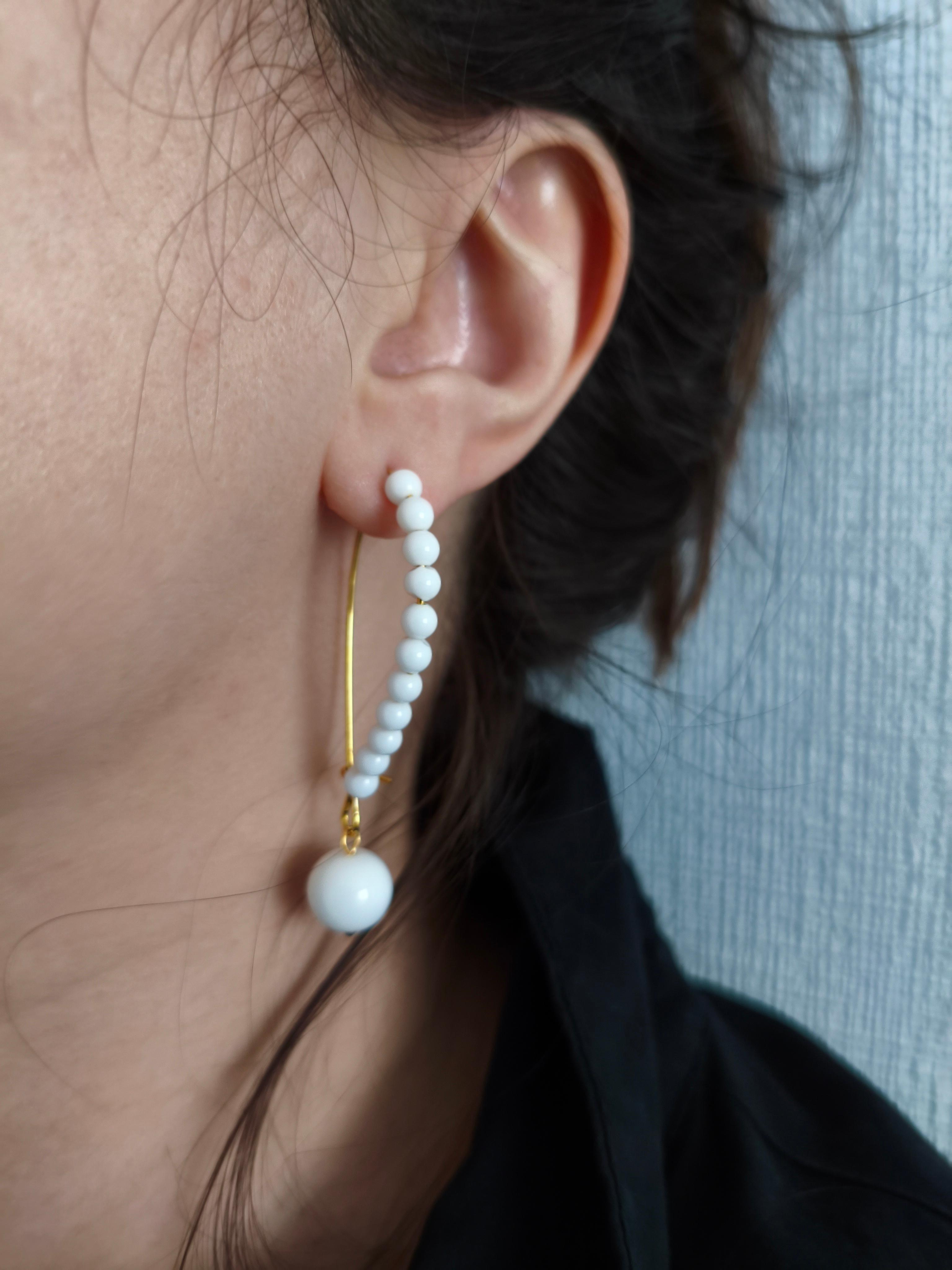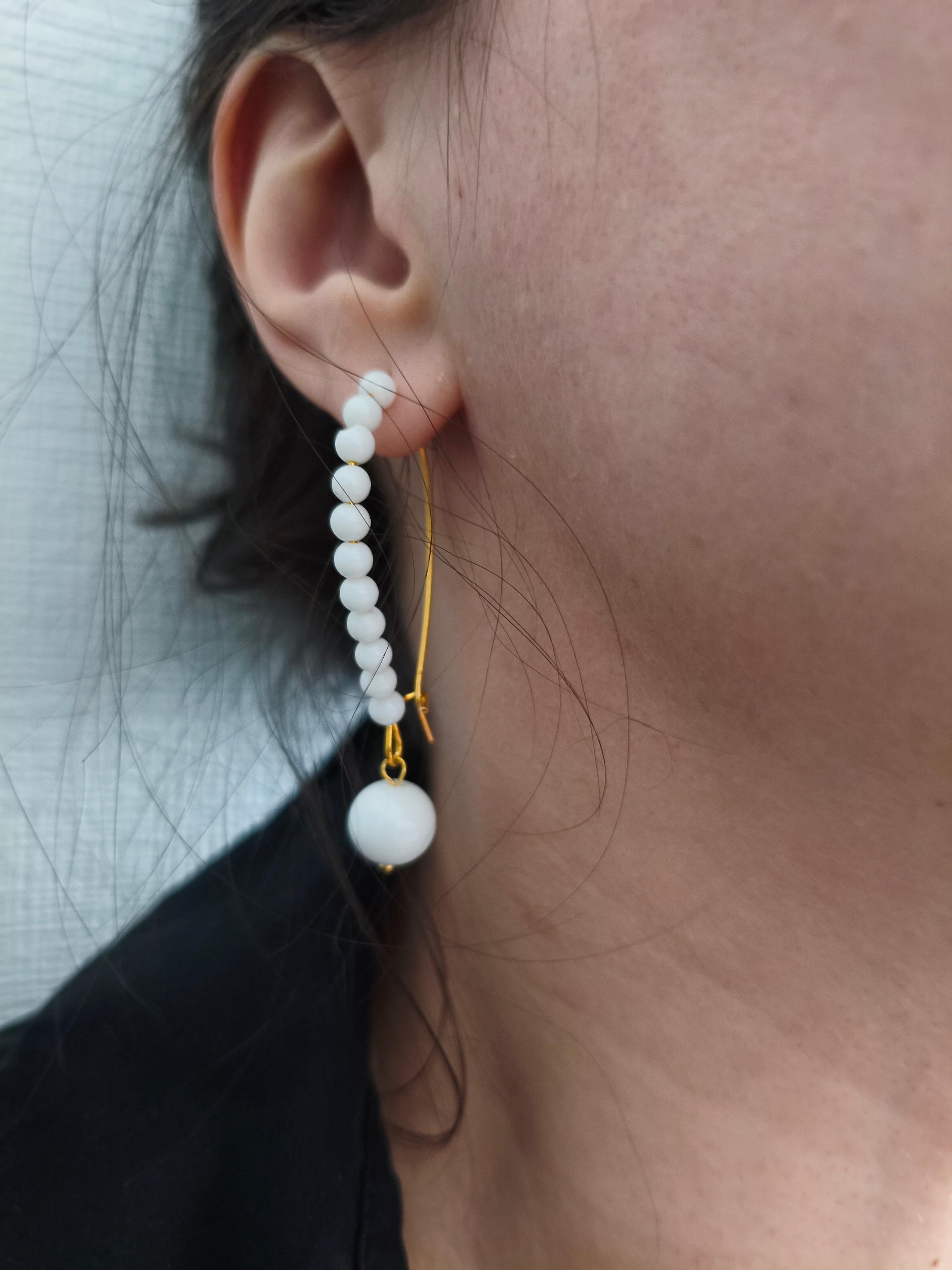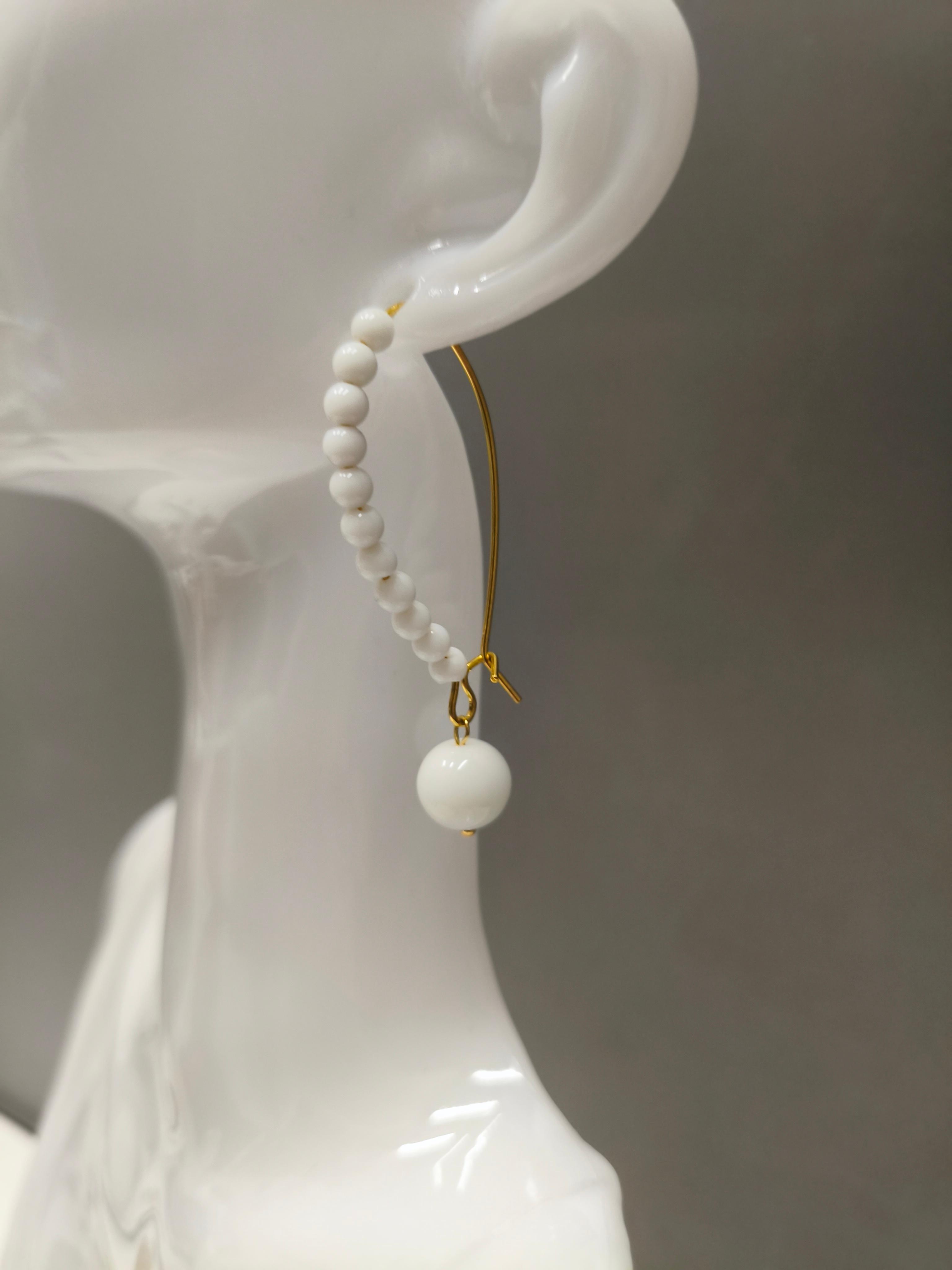 Серьги «Агатовая петля» ✅Агат белый ф 4 мм и ф 8 мм/ фурнитура ювелирное покрытие цвет золото. Длина со швензой 55 мм. #значение 🔺Белый агат: чистота, гармония, успокоение, развитие интуиции.