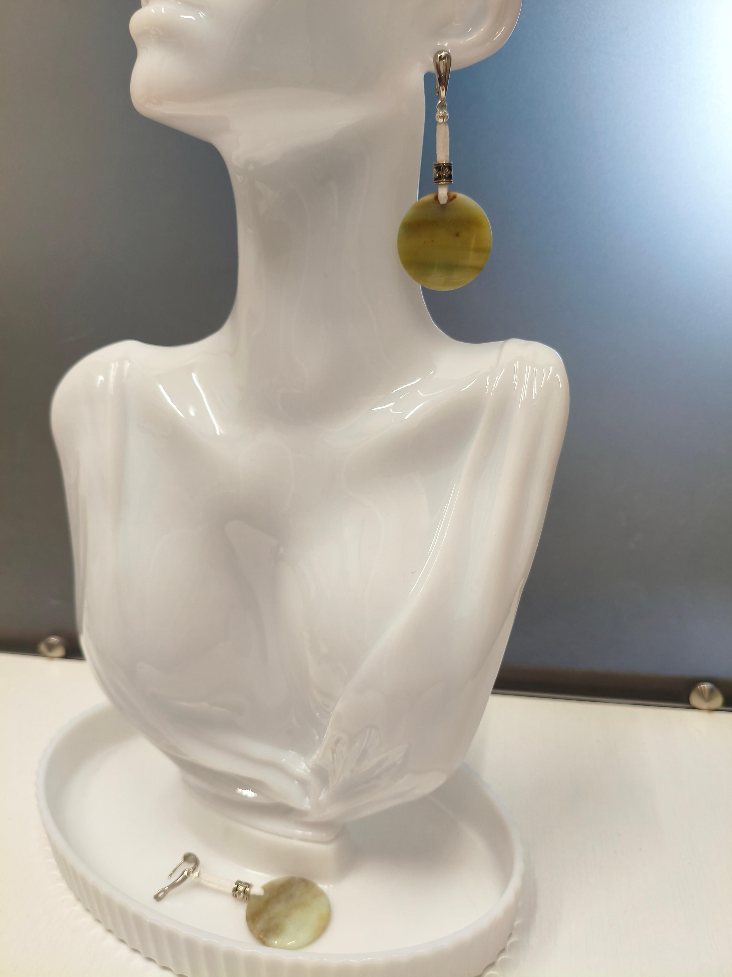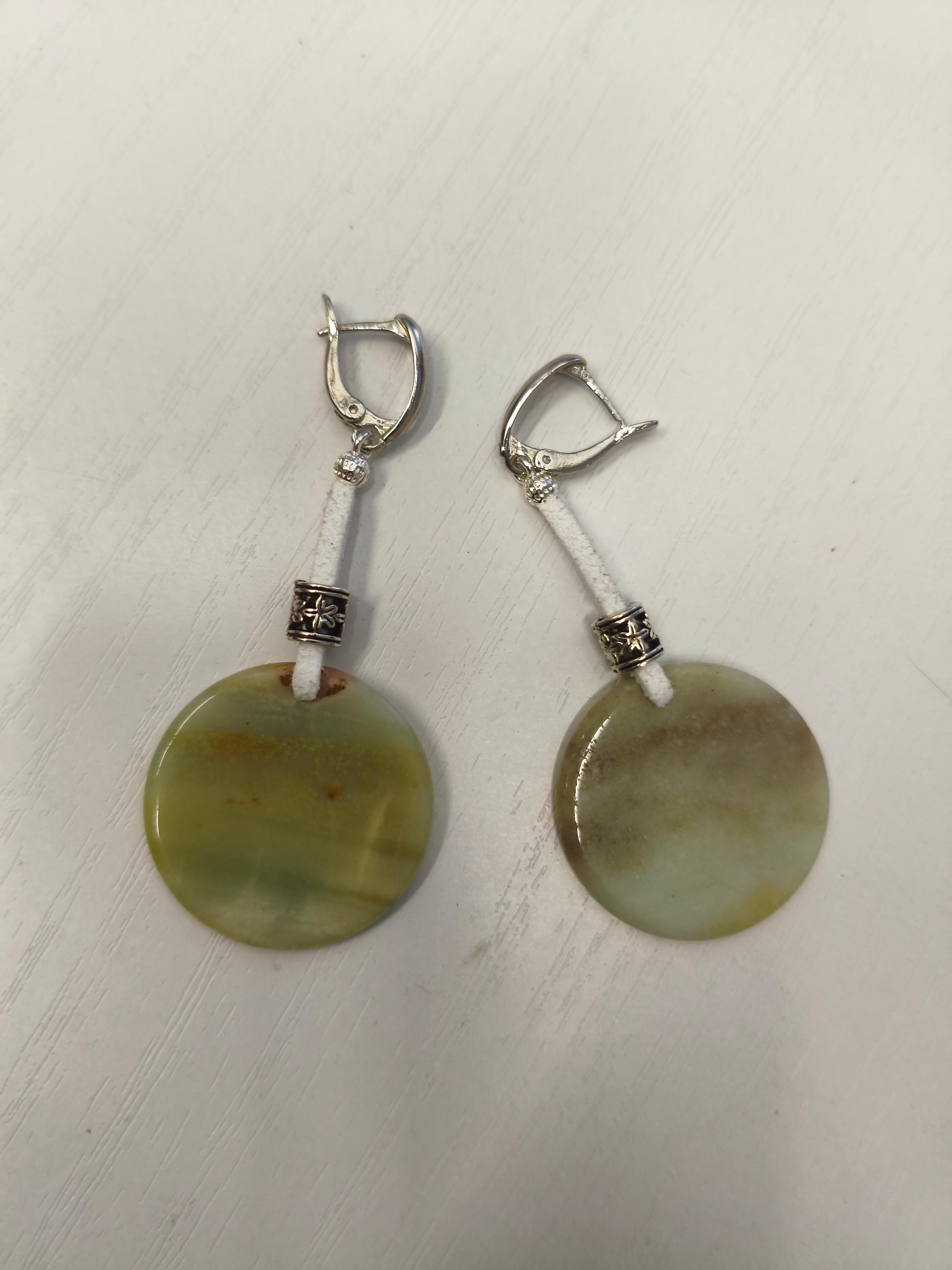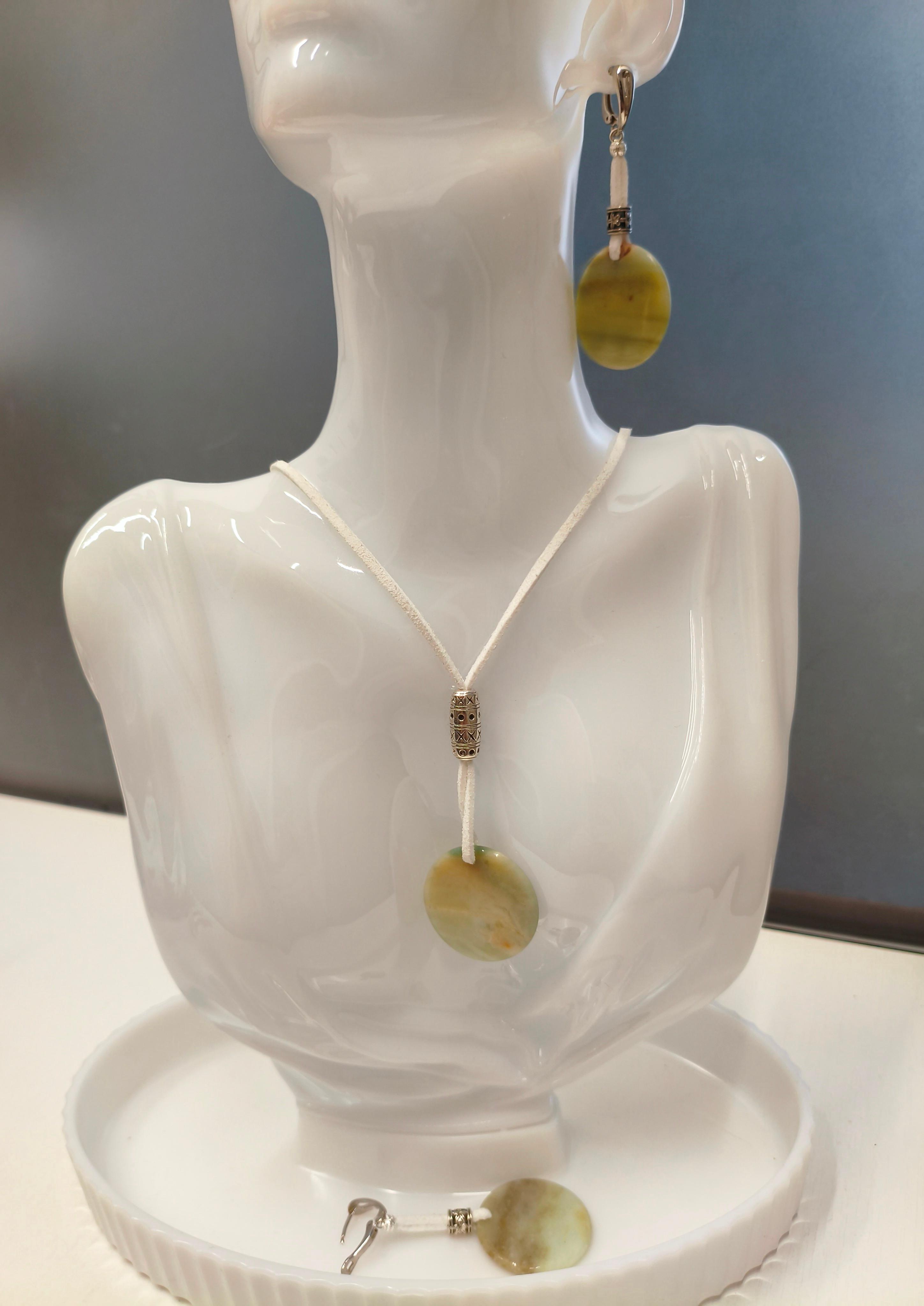 Серьги и колье «Амазонка» ✅Серьги: Амазонит ф 30 мм + белая замша/ фурнитура гипоаллергенное родиевое покрытие цвет серебро. Длина от швензы 50 мм. Стоимость: 1000 руб. ✅Колье: Амазонит ф 30 мм + белая замша /фурнитура юв. Сплав цвет серебро. Длина подвески 70 мм, длина шнура 55-60 см. Стоимость: 500 руб. 🔺Амазонит: семейный очаг, стабильность, уверенность, смягчение гнева, помощь в ведении хозяйства.