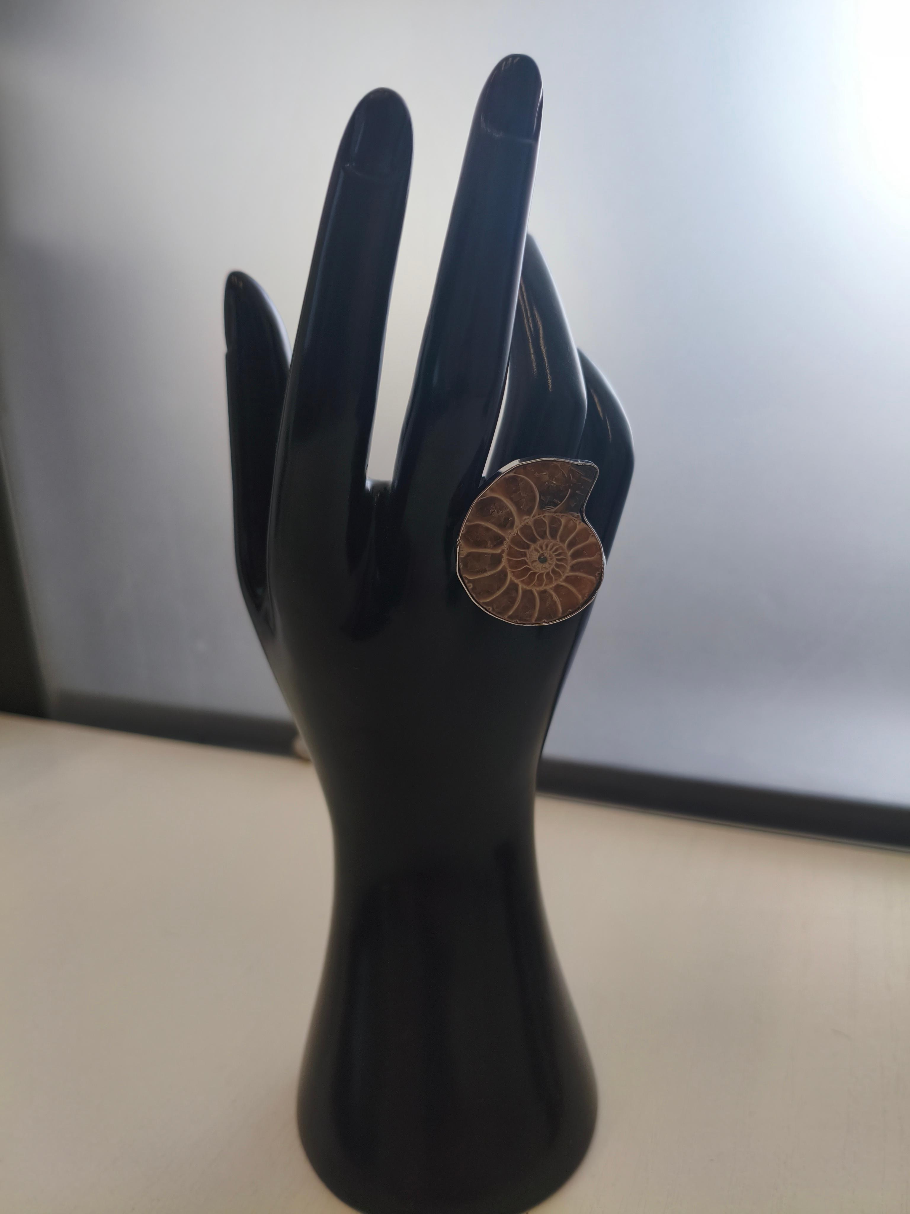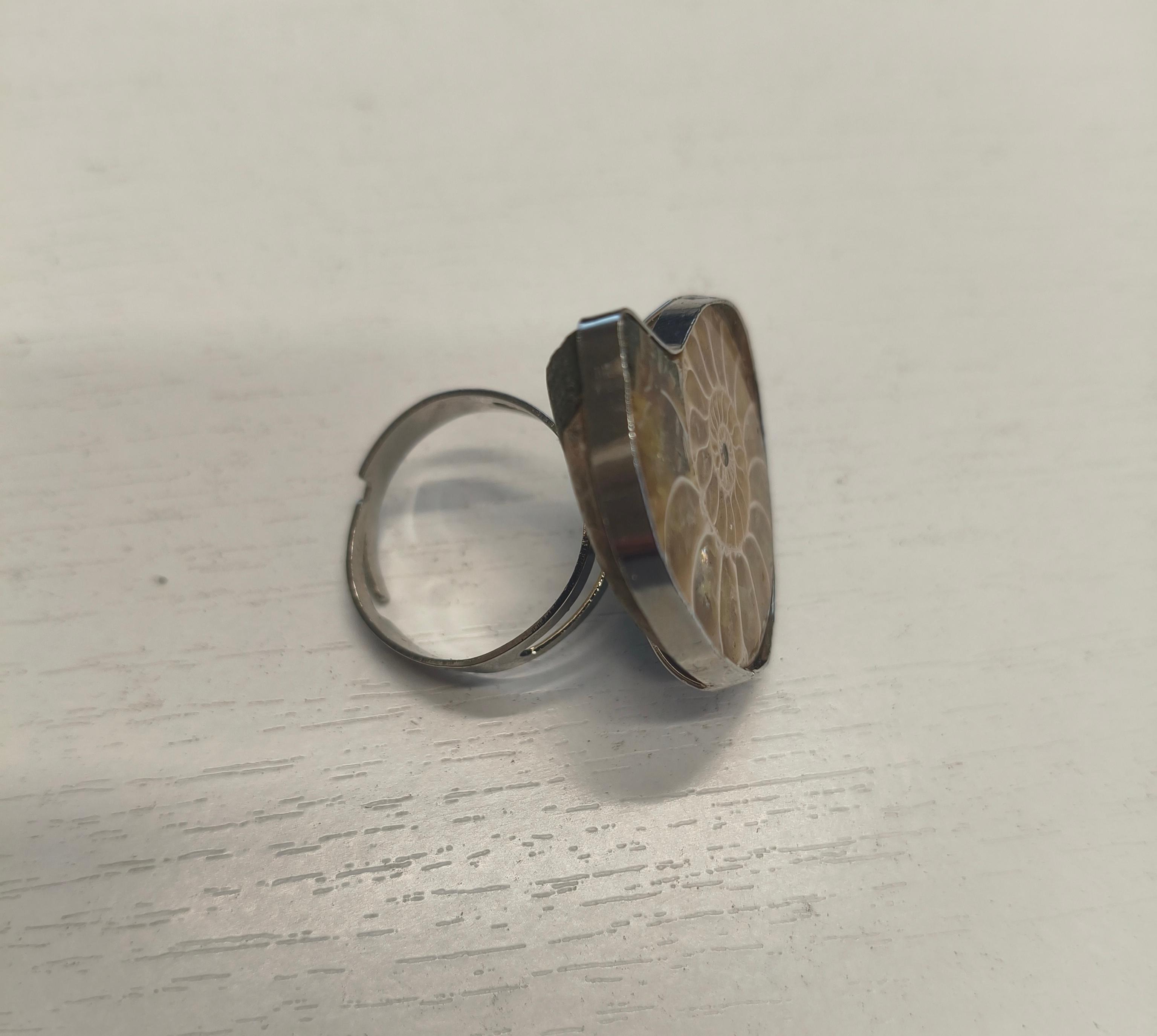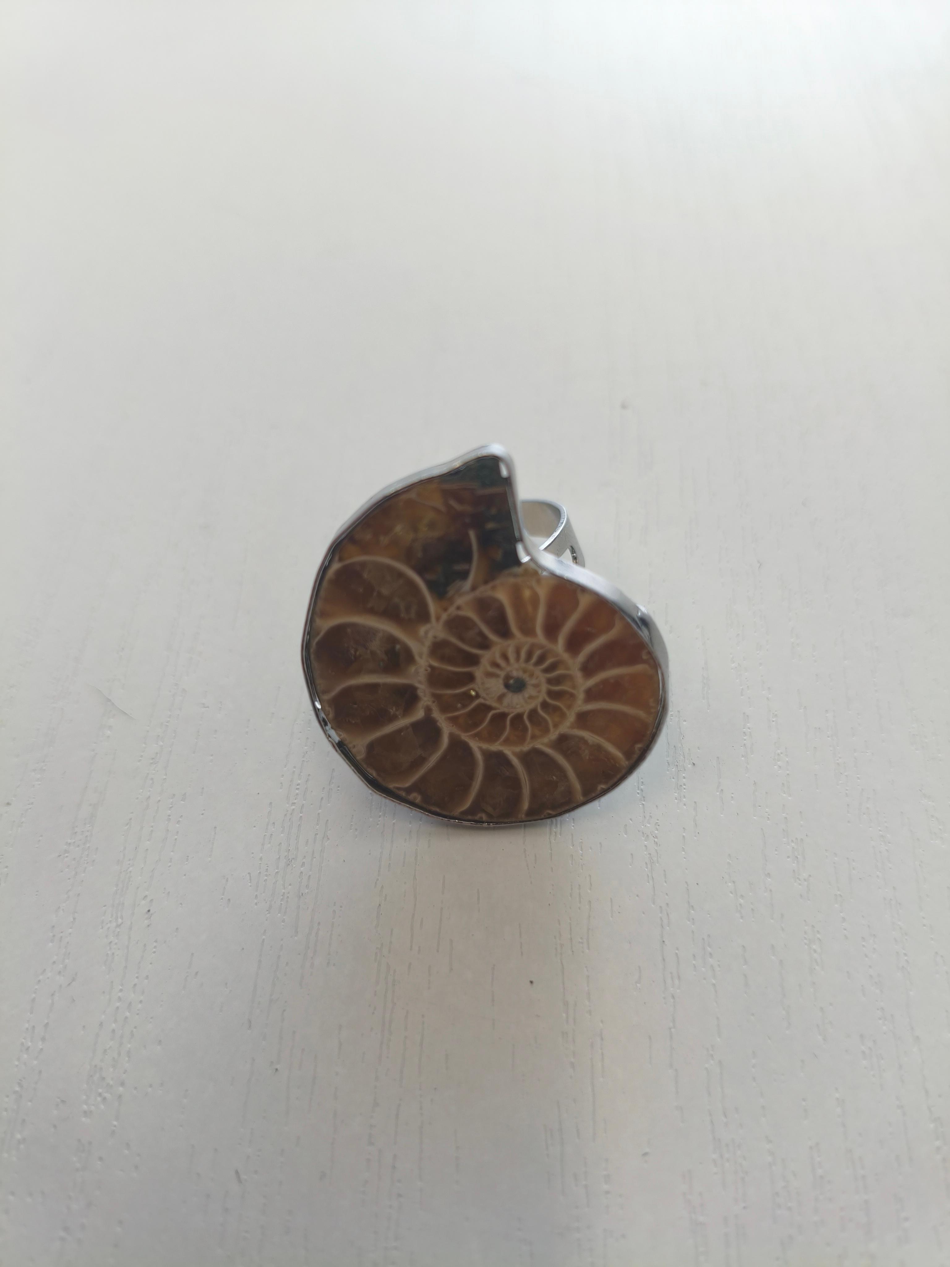 Кольцо безразмерное с аммонитом 36*32 мм/фурнитура ювелирный сплав цвет серебро