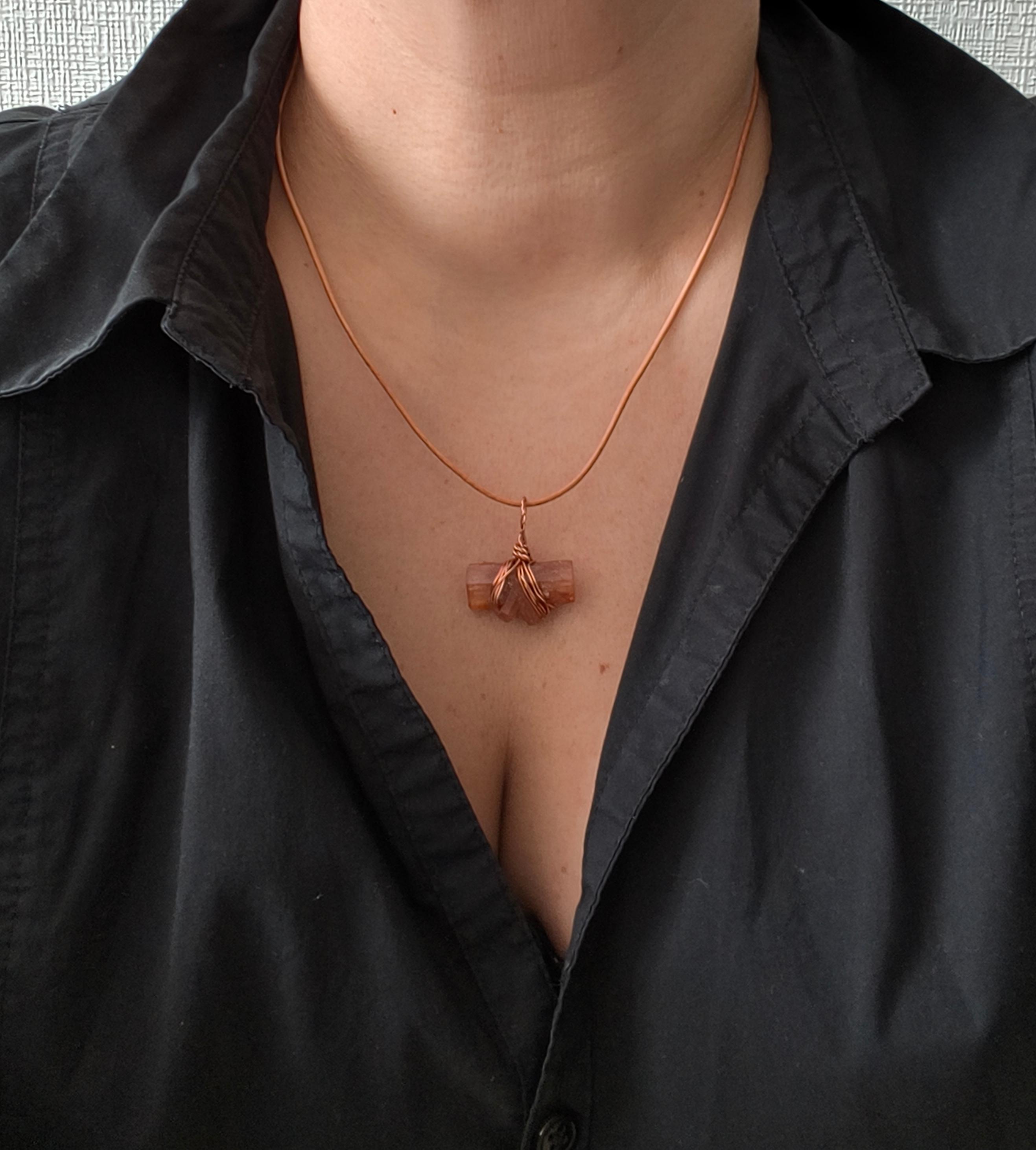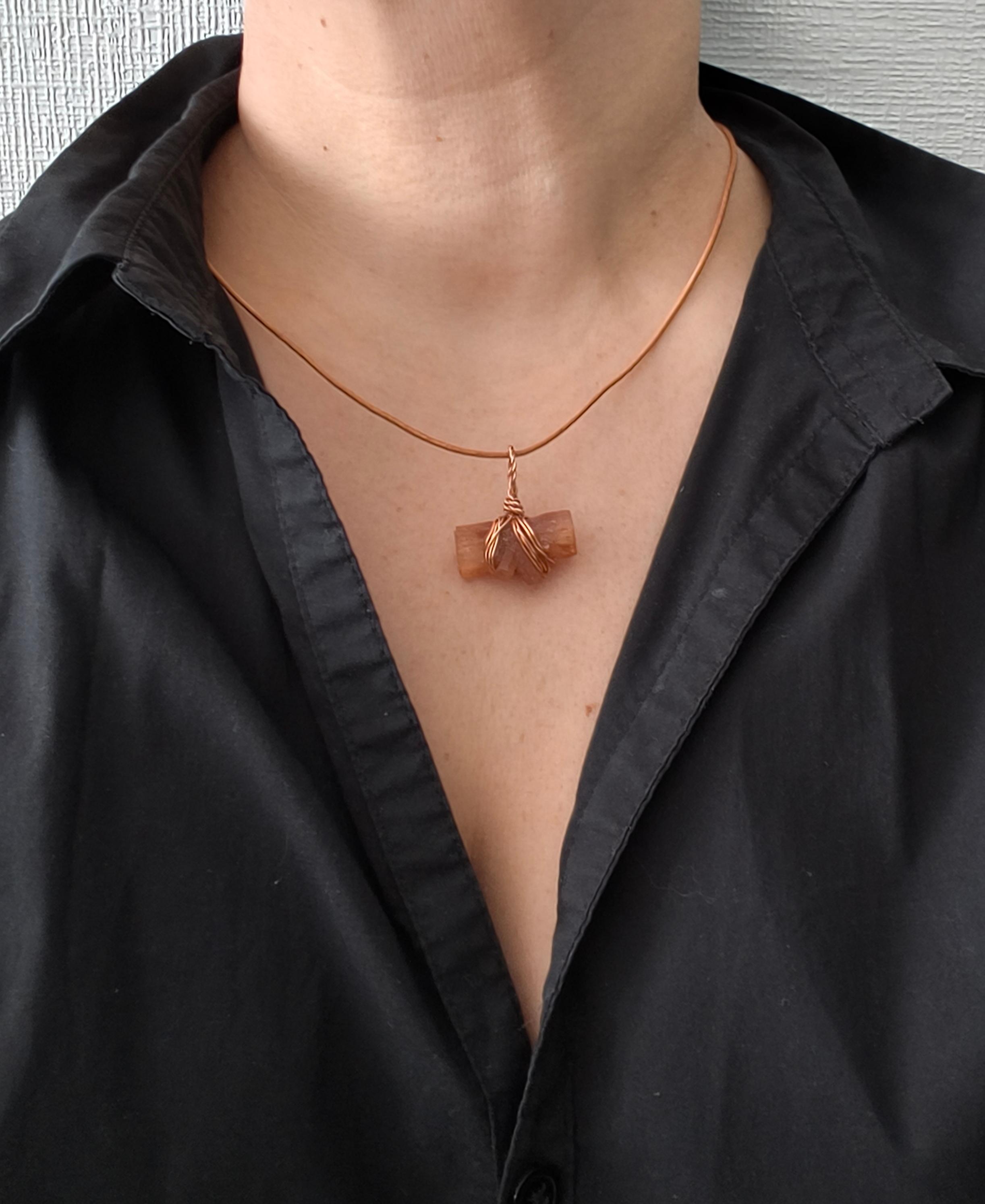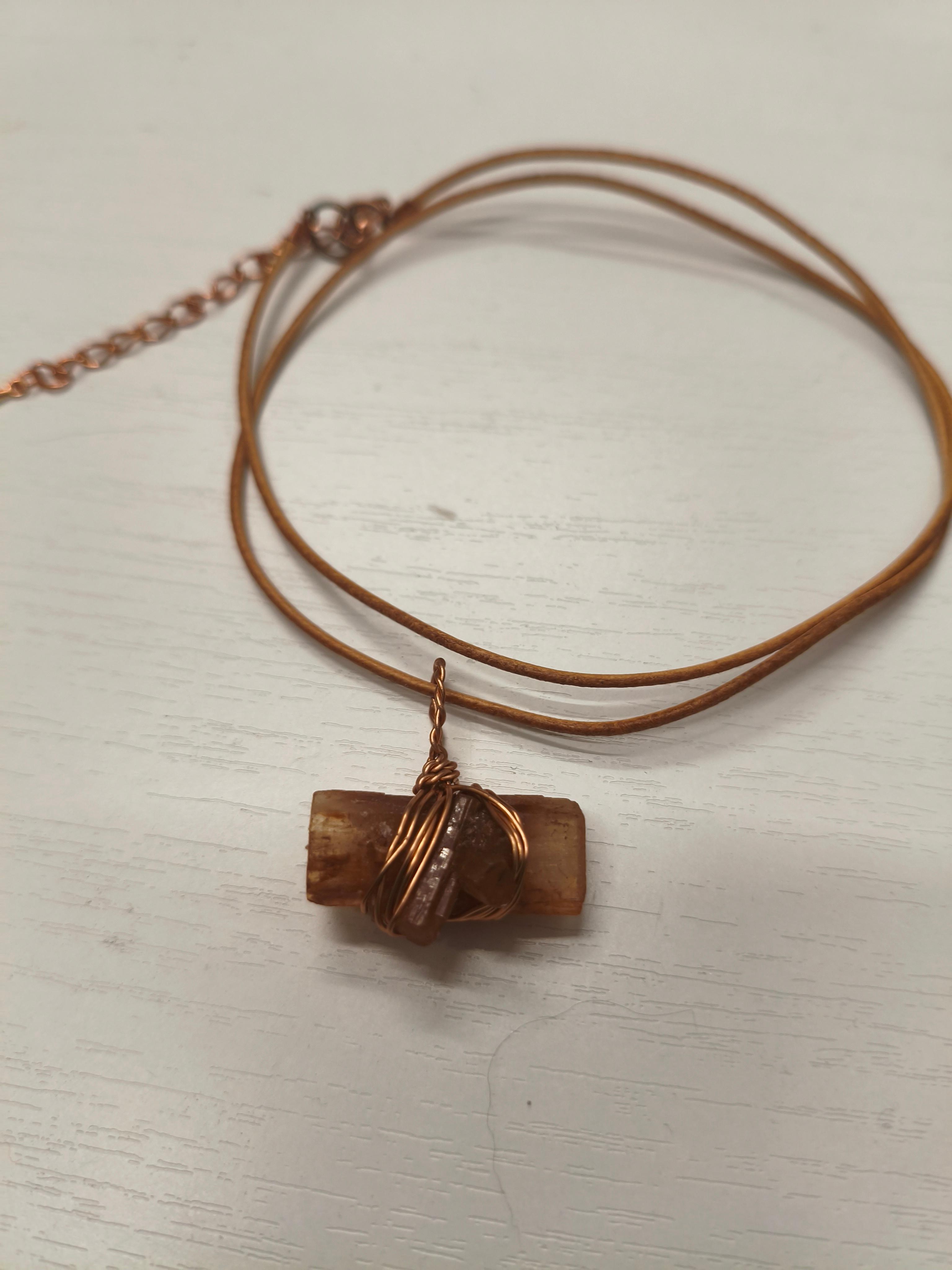 Колье «Арагон» ✅Колье: Арагонит 25*10 мм + алюминиевая проволока (не темнеет) + кожа бежевая 1,5 мм/ фурнитура юв. Сплав цвет розовое золото. Длина подвески 25 мм. Длина шнура 52,5-58 см. Подвеска съемная. Подходит в комплект с серьгами «Рудракша» #значение 🔺Арагонит: способствует эмоциональному равновесию, укреплению семейных уз и снятию стресса.