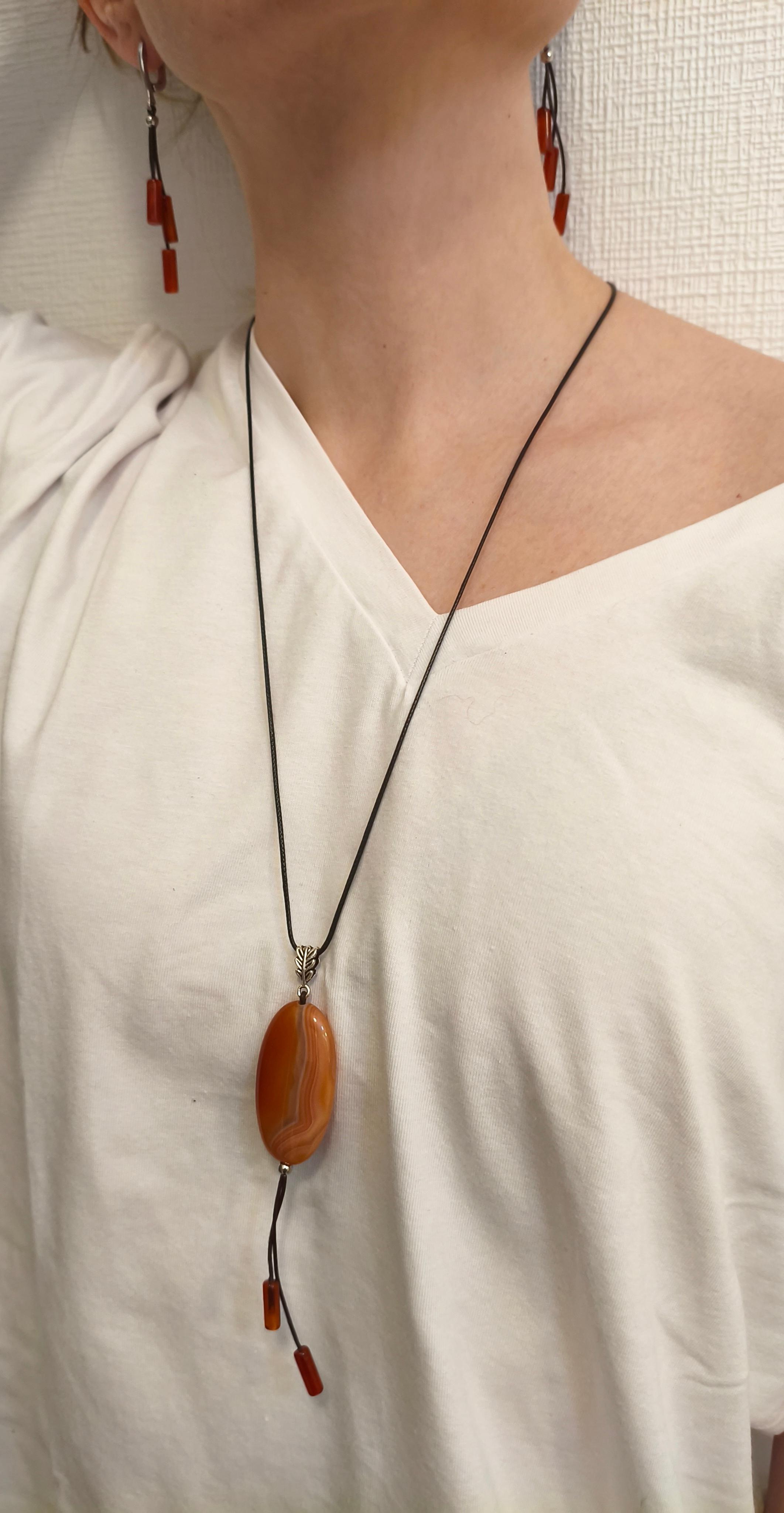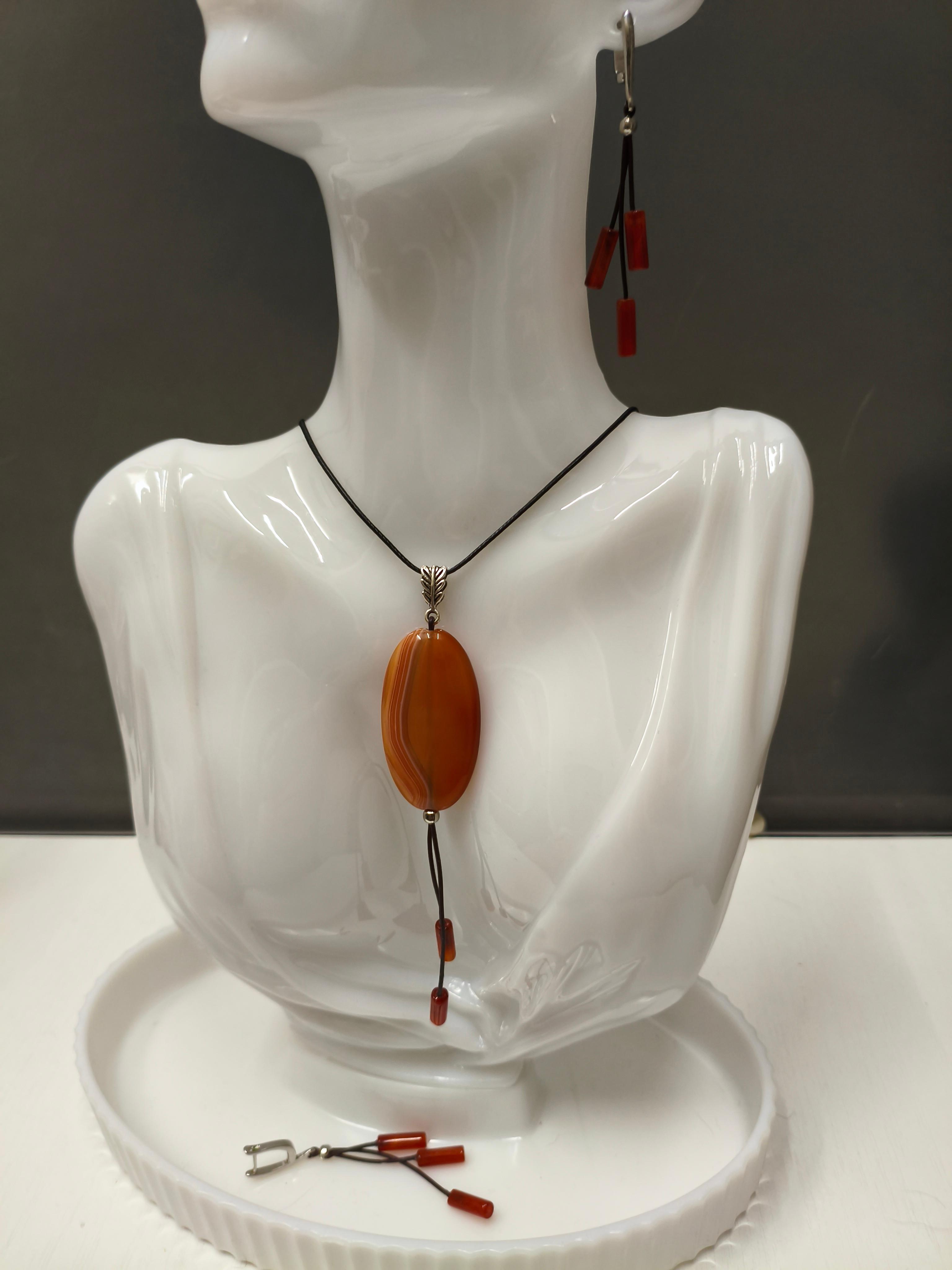 Сердоликовый агат 42*25*9 мм + Сердолик 12*4 мм + кожа 1 мм/фурнитура гипоаллергенное родиевое покрытие цвет античное серебро + вощеный шнур. Длина подвески 12,5 см (подвеска съемная), длина шнура 65-70 см. Подходит в комплект с серьгами "Барбарис" ⭕️Сердолик: защита и очищение, заземление и устойчивость, энергия и жизненная сила, творчество, духовный рост. ⭕️Сердоликовый агат: как сердолик + укрепление намерений, баланс чакр, эмоциональная стабильность.