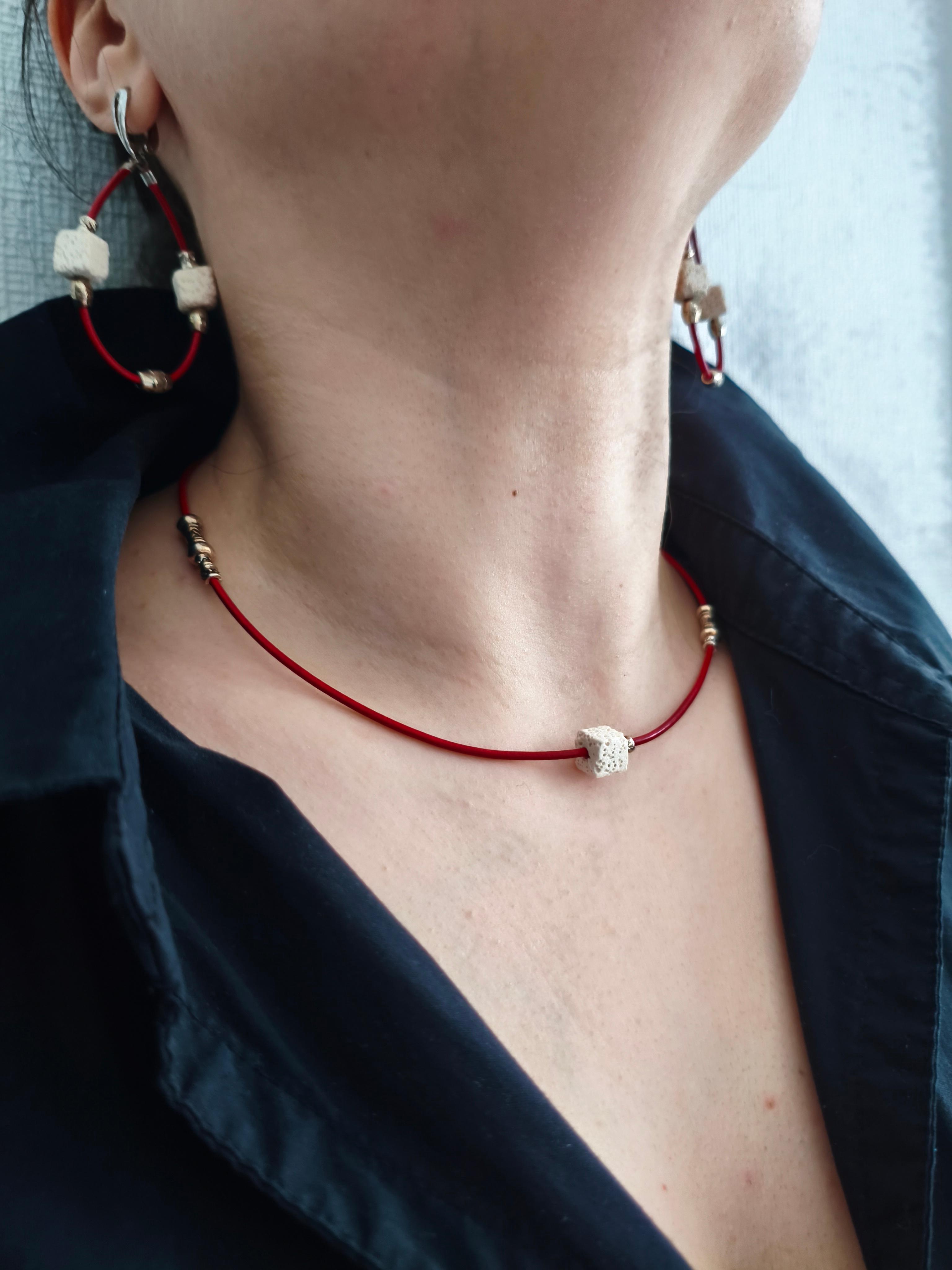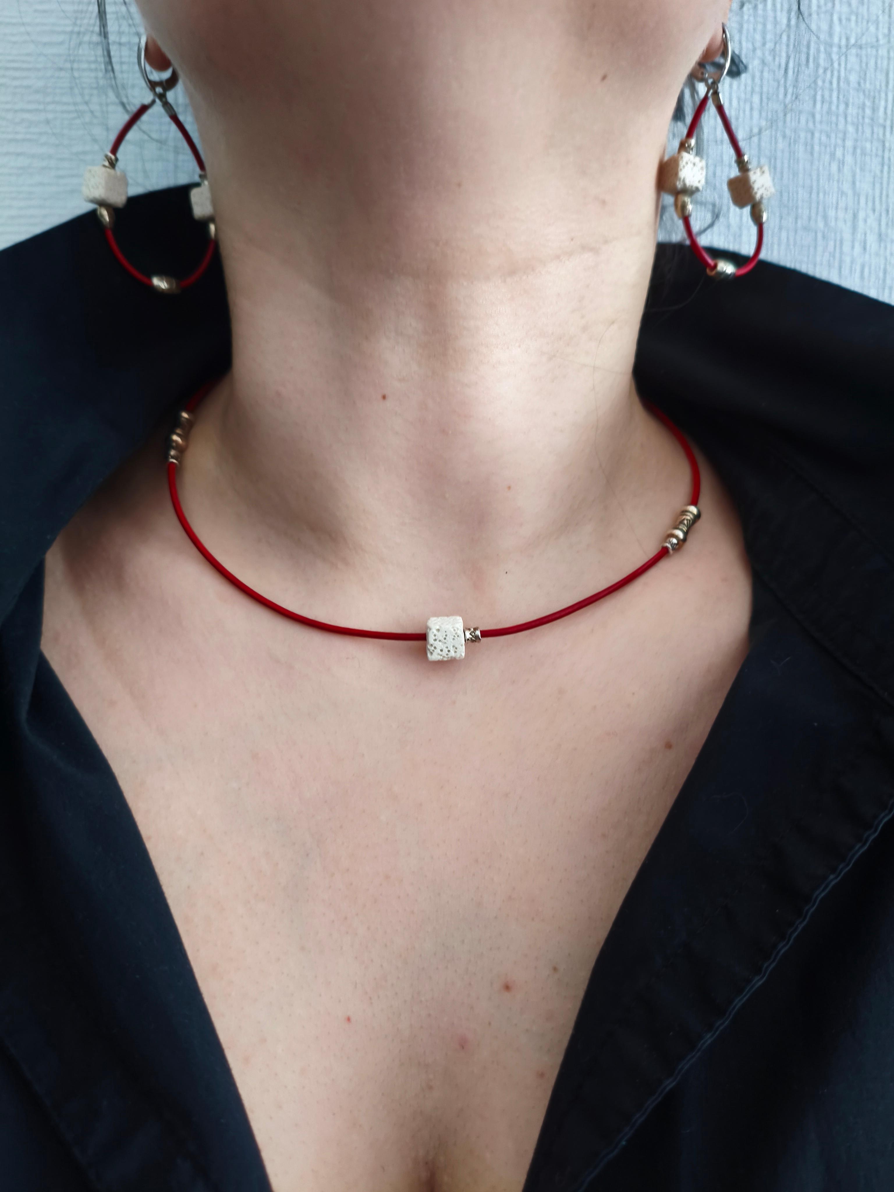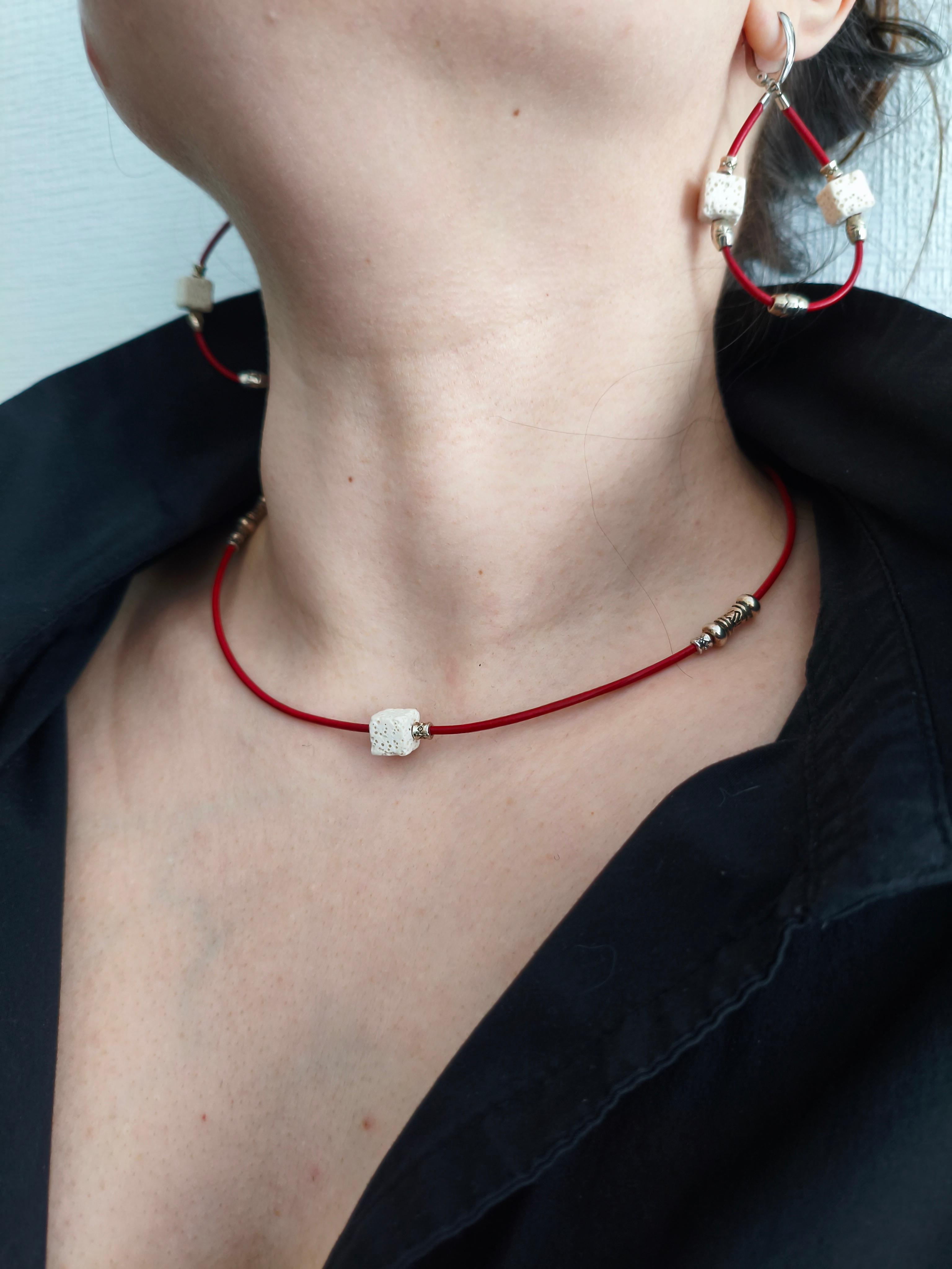 Серьги и колье «Белый куб» ✅Серьги: Вулканическая лава + рунические вставки + красная кожа/ фурнитура гипоаллергенное родиевое покрытие цвет античное серебро. Длина от швензы 50*35 мм. Стоимость: 1000 руб. ✅Колье / чокер: Вулканическая лава + рунические вставки + красная кожа /фурнитура юв. Сплав цвет античное серебро. Длина 44-49,5 см. Стоимость: 700 руб.