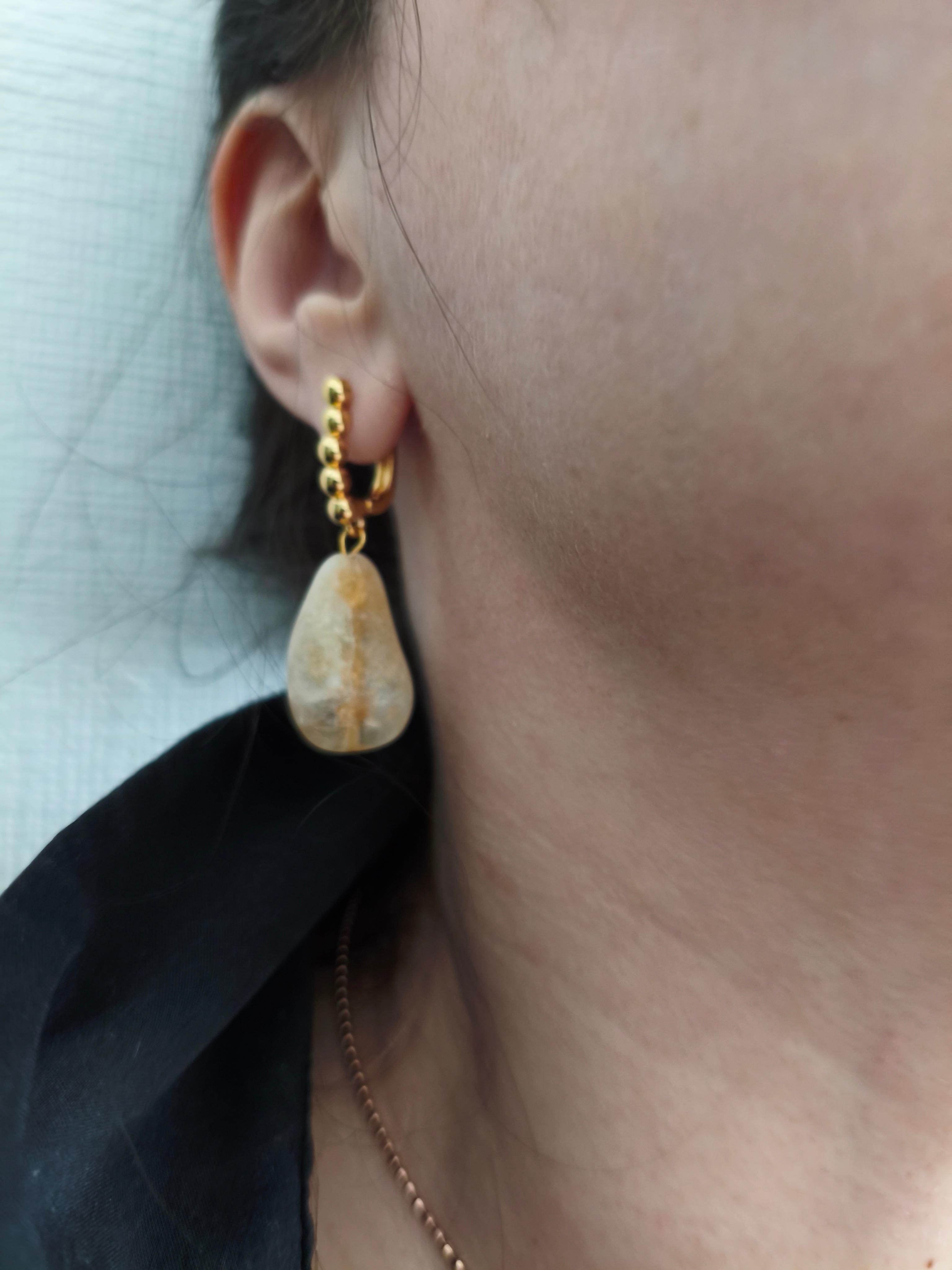 Цитрин неправильной формы 20*15 мм/23*15 мм/ фурнитура гипоаллергенное родиевое покрытие золото К18. Длина от швензы 25 мм. Подходит в комплект с колье/подвеской "Цитро" #значение Цитрин: изобилие и процветание, притягивает финансовое благополучие, усиливает уверенность и защищает от негатива.