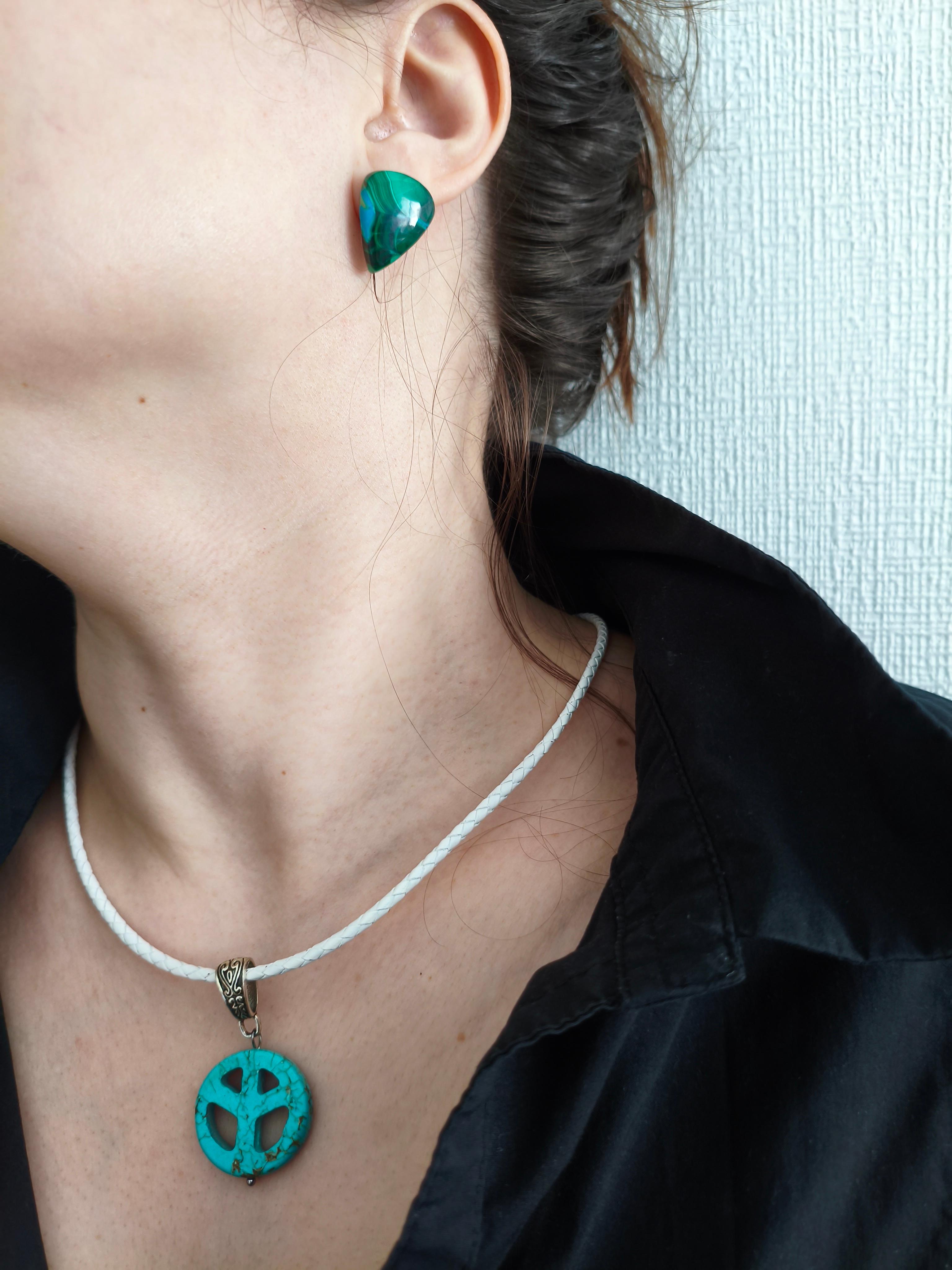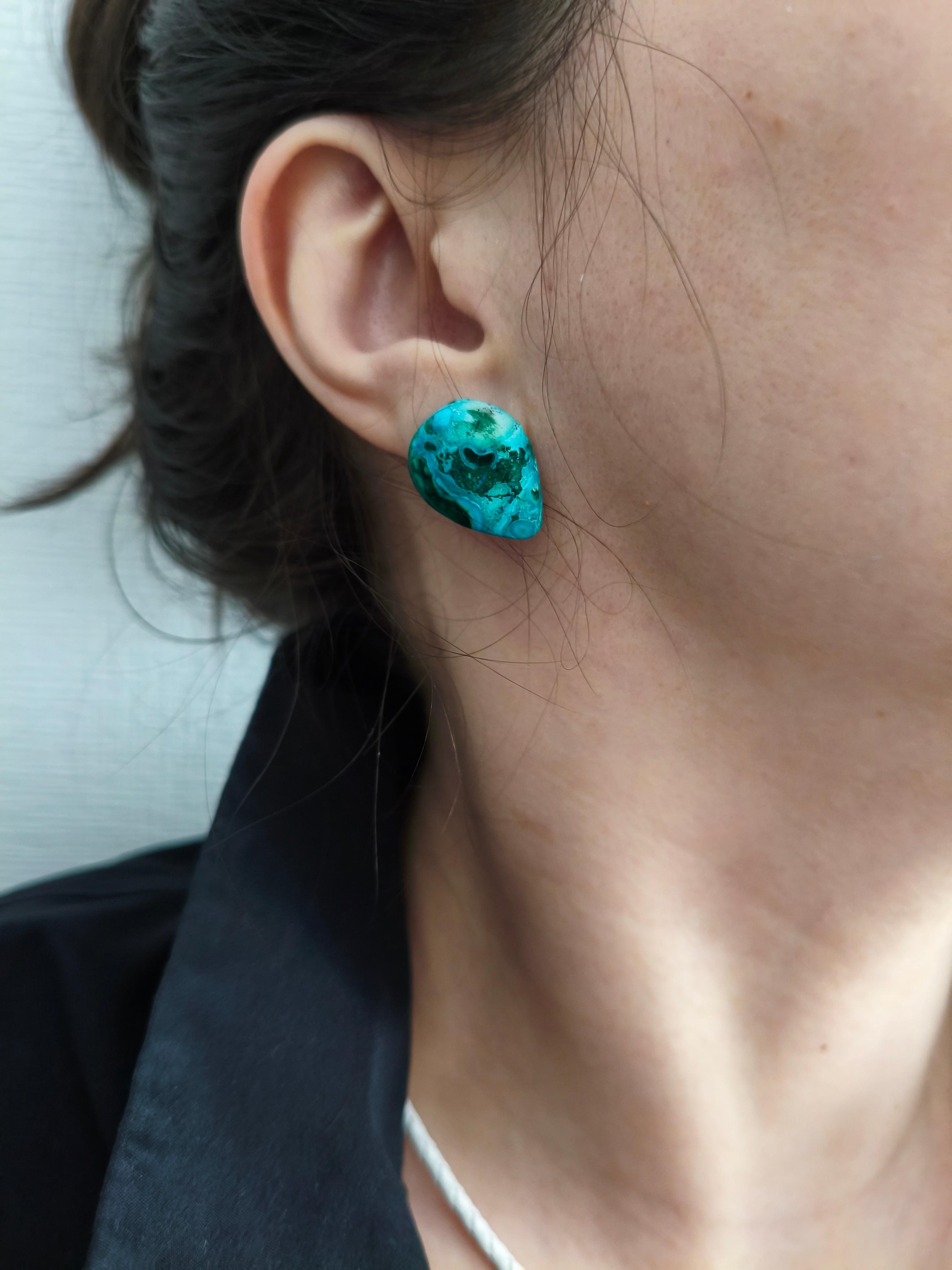 ✅Серьги "Хриза": хризоколла 21*16*5 мм/21*16*6 мм/нерж. сталь/пусеты. Не темнеют, можно купаться. Подходят в комплект с кольцом "Хриза" #значение 🔺Хризоколла: камень гармонии, мудрости и общения, помогающий обрести внутреннее спокойствие и улучшить взаимопонимание с окружающими.
