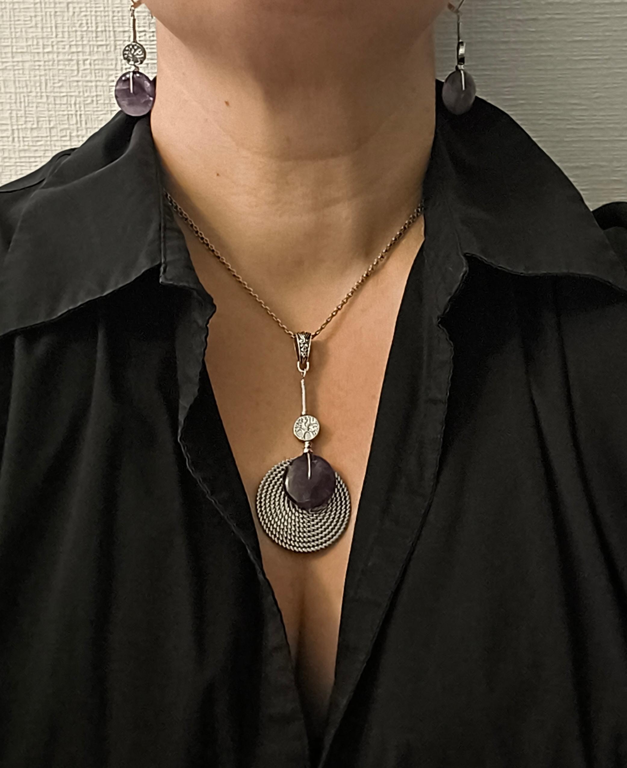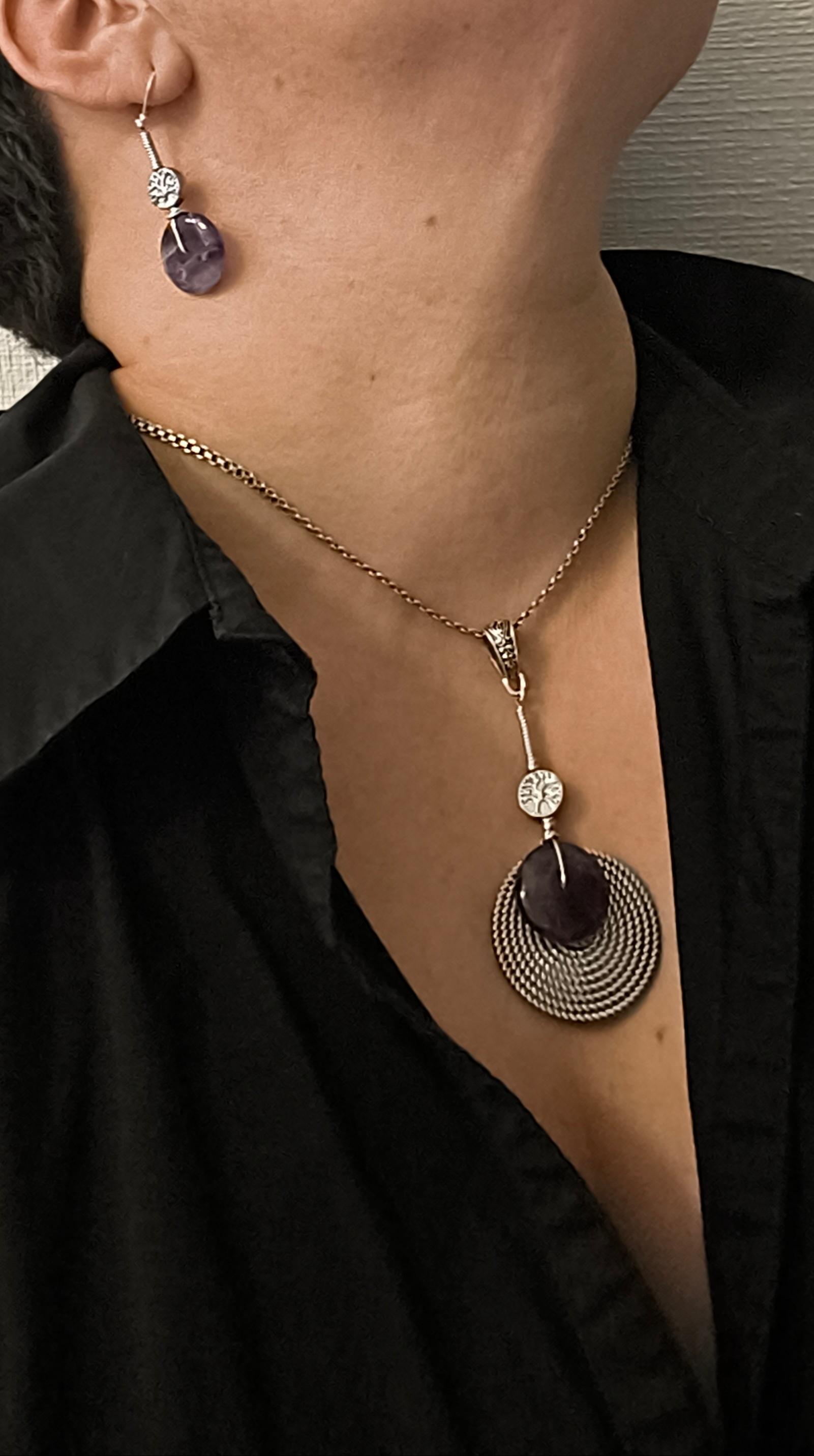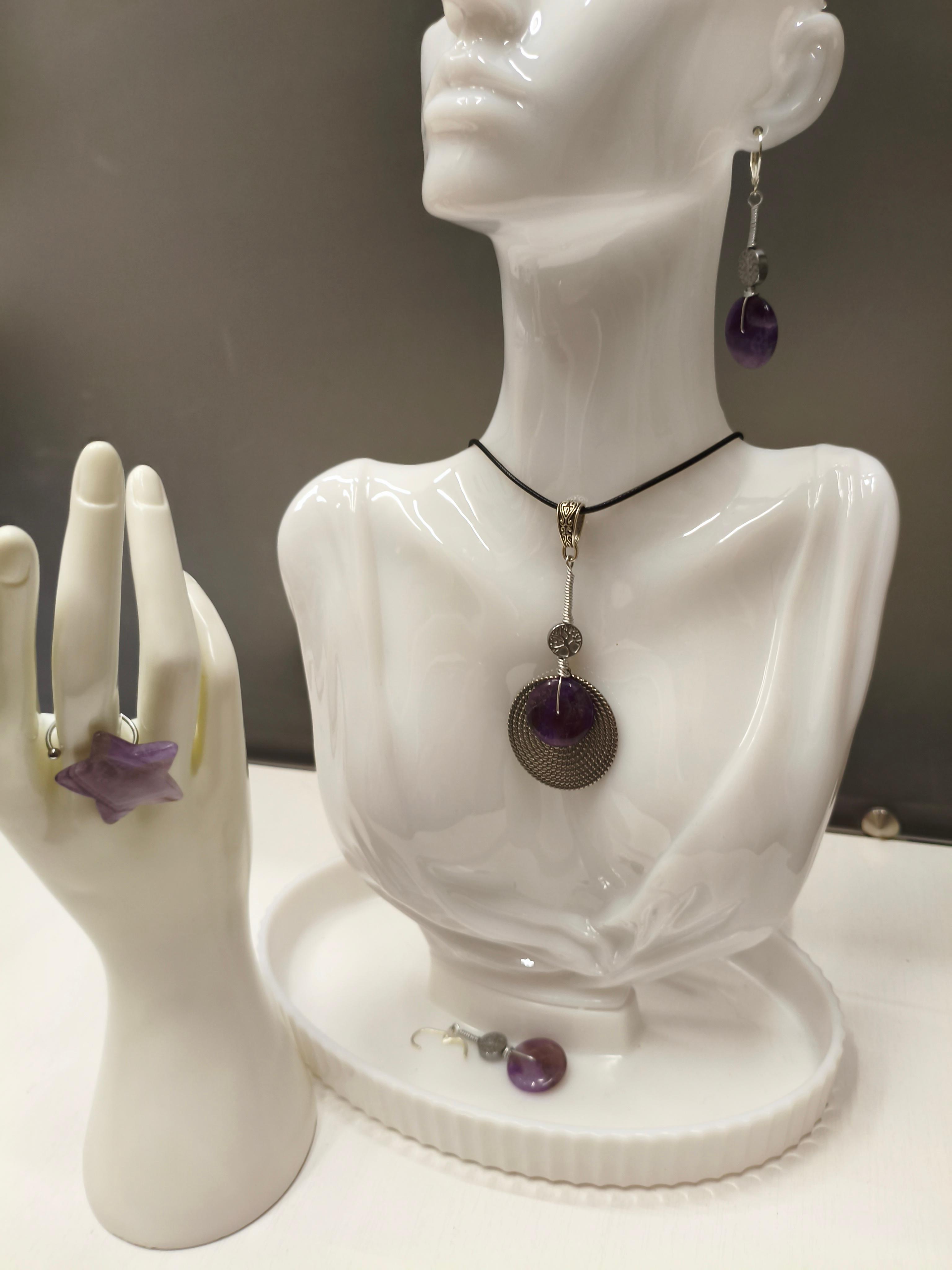 ✅Серьги «Иггдрасиль» Натуральный аметист ф 12 мм + гематит с гравировкой «Иггдрасиль» /фурнитура швензы серебро 925 (английский замок)/обмотка алюминий – не окисляется. Длина от швензы 45 мм. Стоимость: 1200 руб. ✅Колье «Иггдрасиль» Натуральный аметист ф 12 мм + гематит с гравировкой «Иггдрасиль» /фурнитура подвеска ф35 мм нержавеющая сталь/обмотка алюминий – не окисляются. В продаже с черным шнуром. Длина подвески 80 мм/длина шнура 44-49 см. Стоимость: 800 руб. #значение 🔺Аметист: духовность, трезвость ума, защита от зависимостей, умиротворение, развитие интуиции. 🔺 Гематит с гравировкой Иггдрасиля объединяет заземляющую и защитную силу камня (стабильность, энергетический щит, связь с земной энергией) с мифологическим смыслом Мирового древа (взаимосвязь всех миров, цикличность жизни, рост и равновесие), создавая амулет для гармонизации внутреннего и внешнего мира, укрепления духовной связи и поддержания баланса между прошлым, настоящим и будущим.