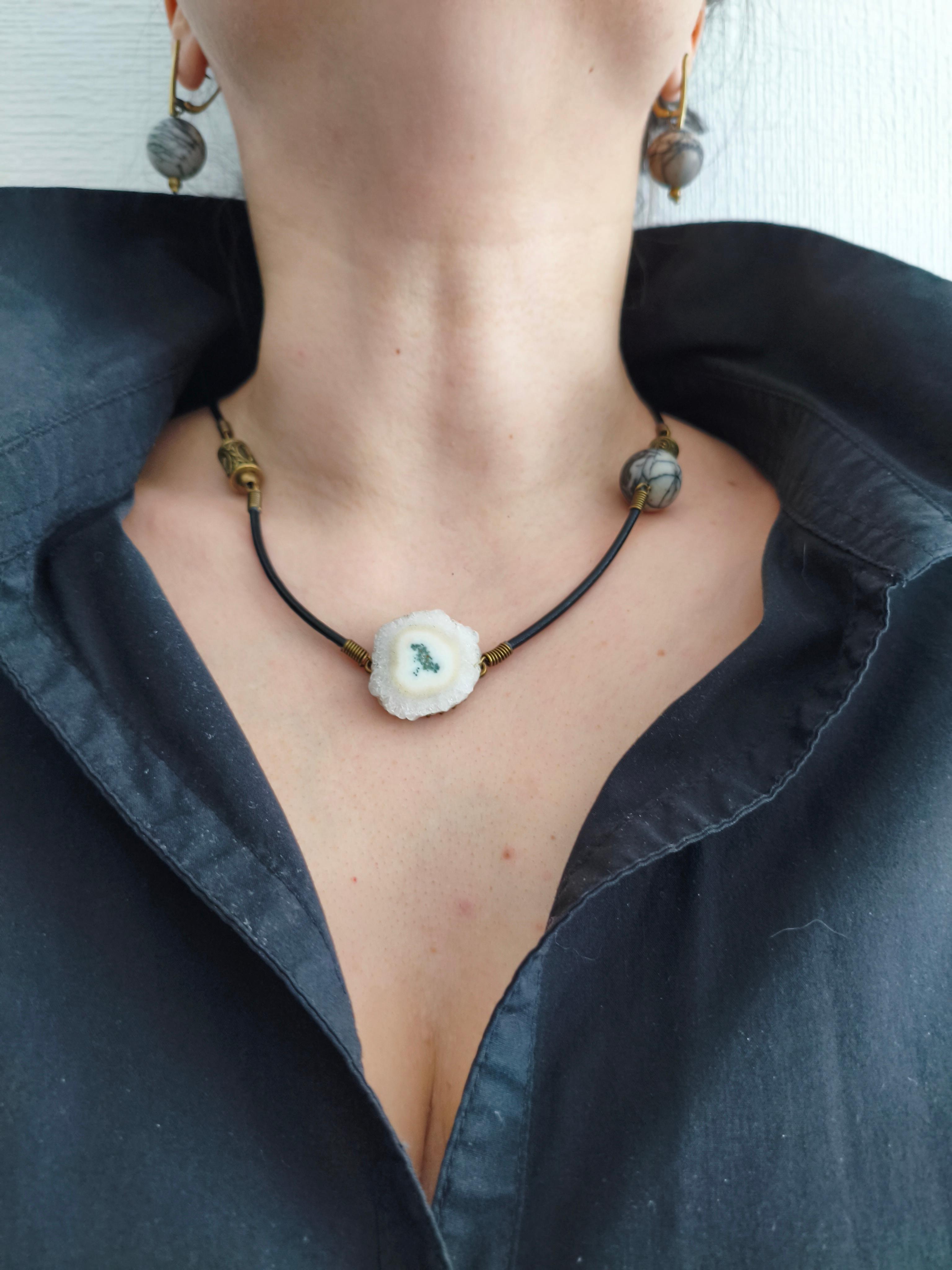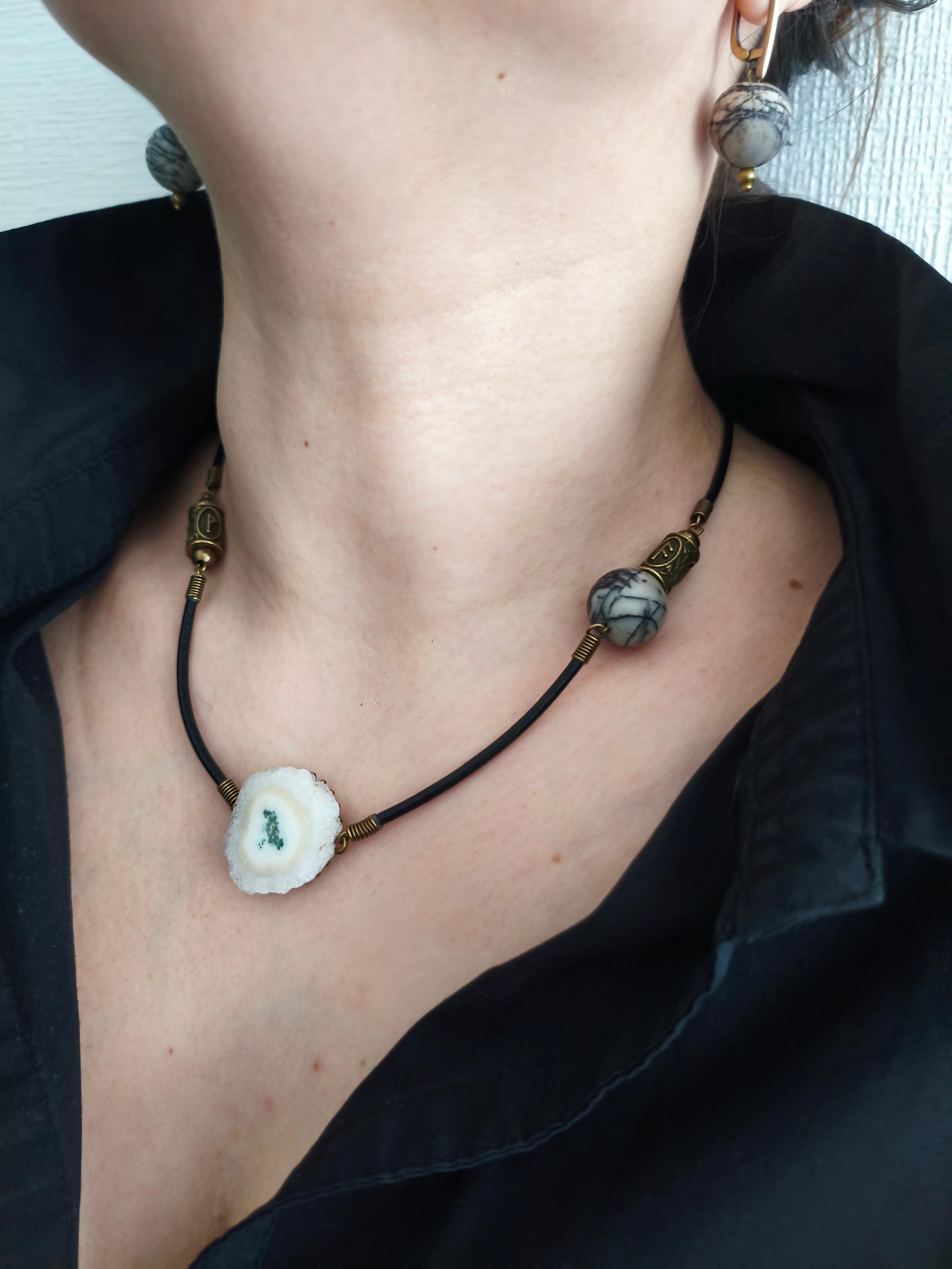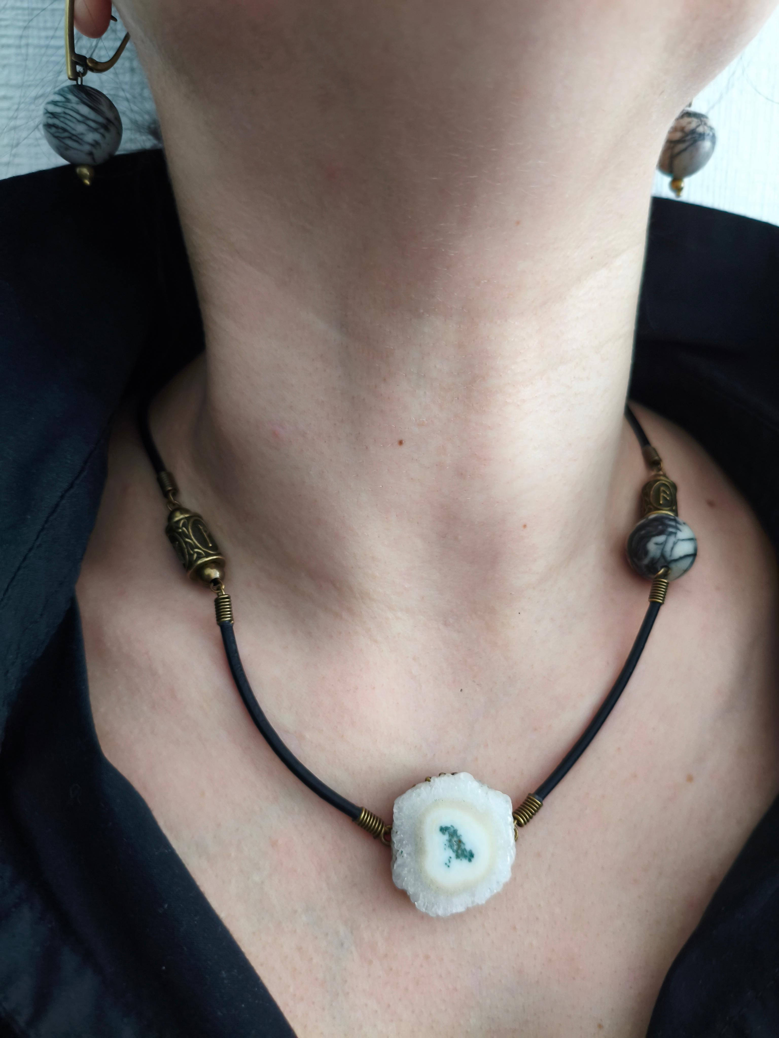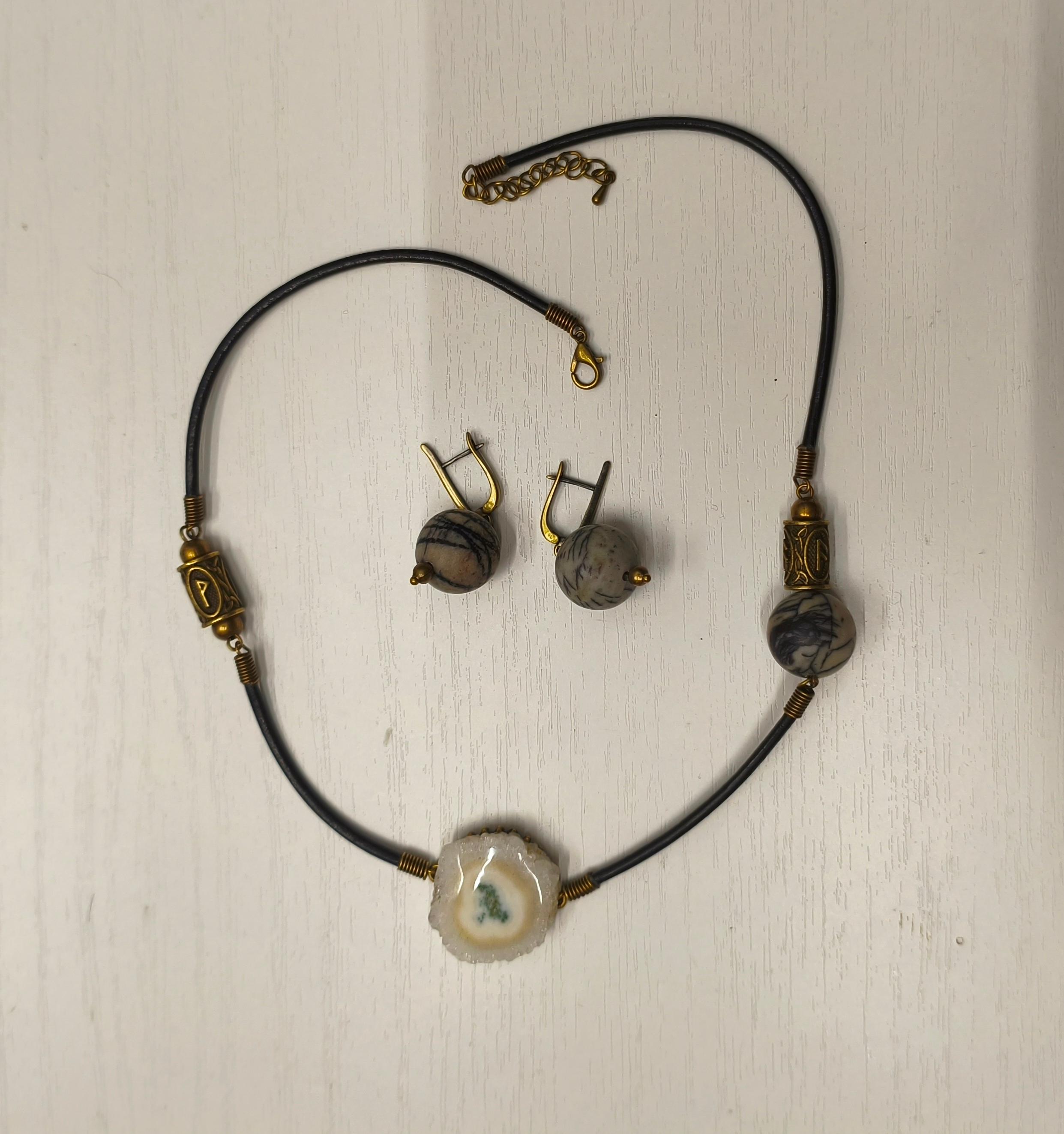Яшма пикассо ф 16 мм + кактусовый кварц 26,7*26,4*6,2 мм + руна Вуньо и Ансуз + кожа черная 2,5 мм/фурнитура юв. Сплав цвет бронза/замок карабин. Длина 47-52,5 см. Подвесные элементы все подвижные. Подходит в комплект с серьгами "Пикассо" #значение амулета 🔺Яшма: оберег от сглаза, энергия земли, стойкость, развитие дар убеждения, помощь в достижении целей. 🔺Кактусовый кварц: «камень мудрости», способствует внутреннему росту, уравновешенности и преобразованию негативной энергии в позитивную, а также усиливает экстрасенсорную чувствительность и помогает в духовном развитии. ⭕️Синергия яшма + кварц кактус + руна Вуньо + руна ансуз: заключается в гармоничном усилении личностного роста и коммуникации: ✔️Кактусовый кварц настраивает на внутреннюю мудрость и трансформацию энергии; ✔️Яшма Пикассо стабилизирует эмоциональное поле и раскрывает творческий потенциал; ✔️Руна Вуньо притягивает радость, удовлетворение и успешное завершение намерений; ✔️Руна Ансуз усиливает ясность мысли, красноречие и связь с высшими знаниями. 👉В совокупности они создают мощный резонанс для осознанного самовыражения, душевного равновесия и воплощения замыслов через сбалансированное взаимодействие интуиции, творчества и словесной силы.
