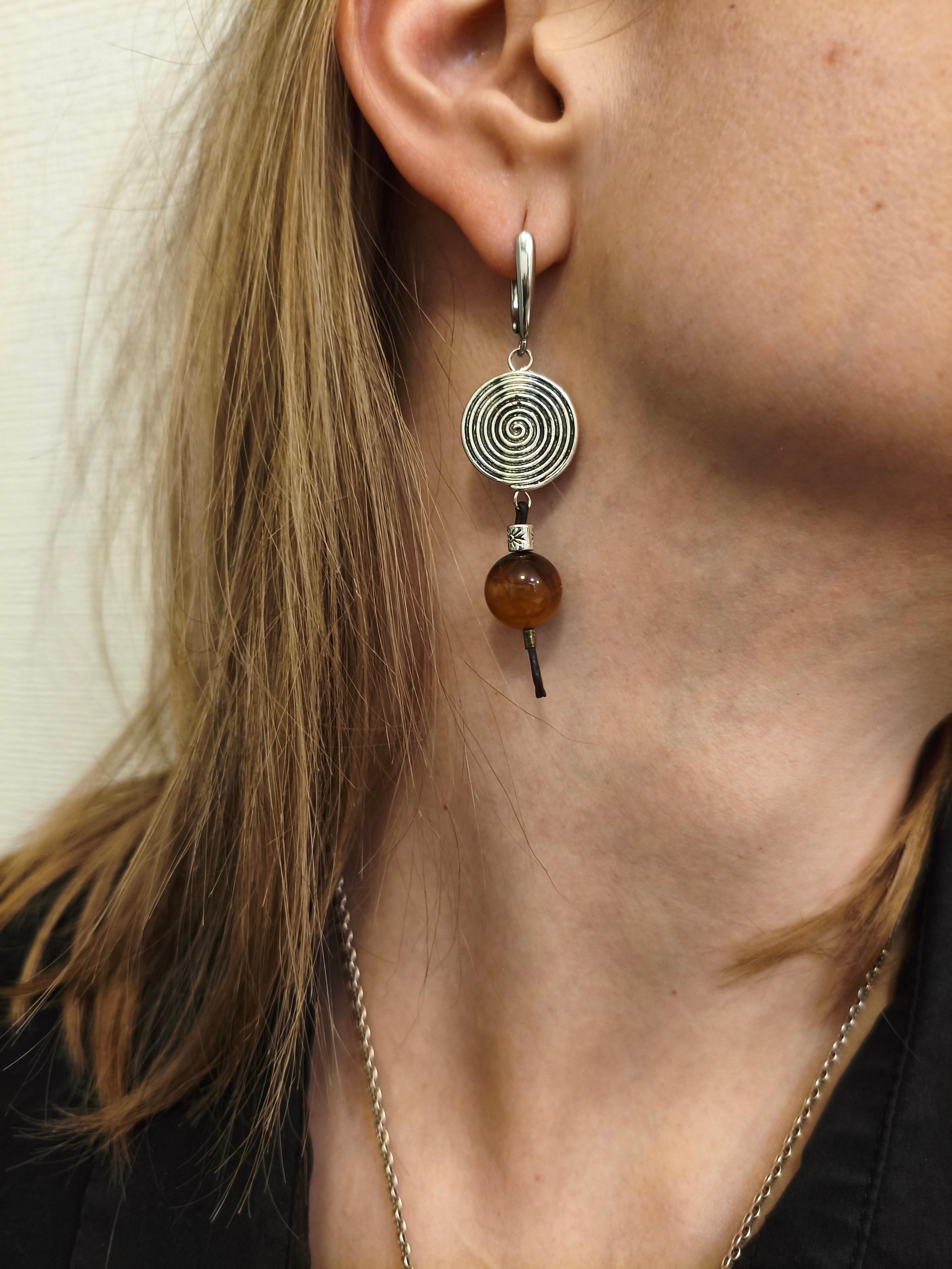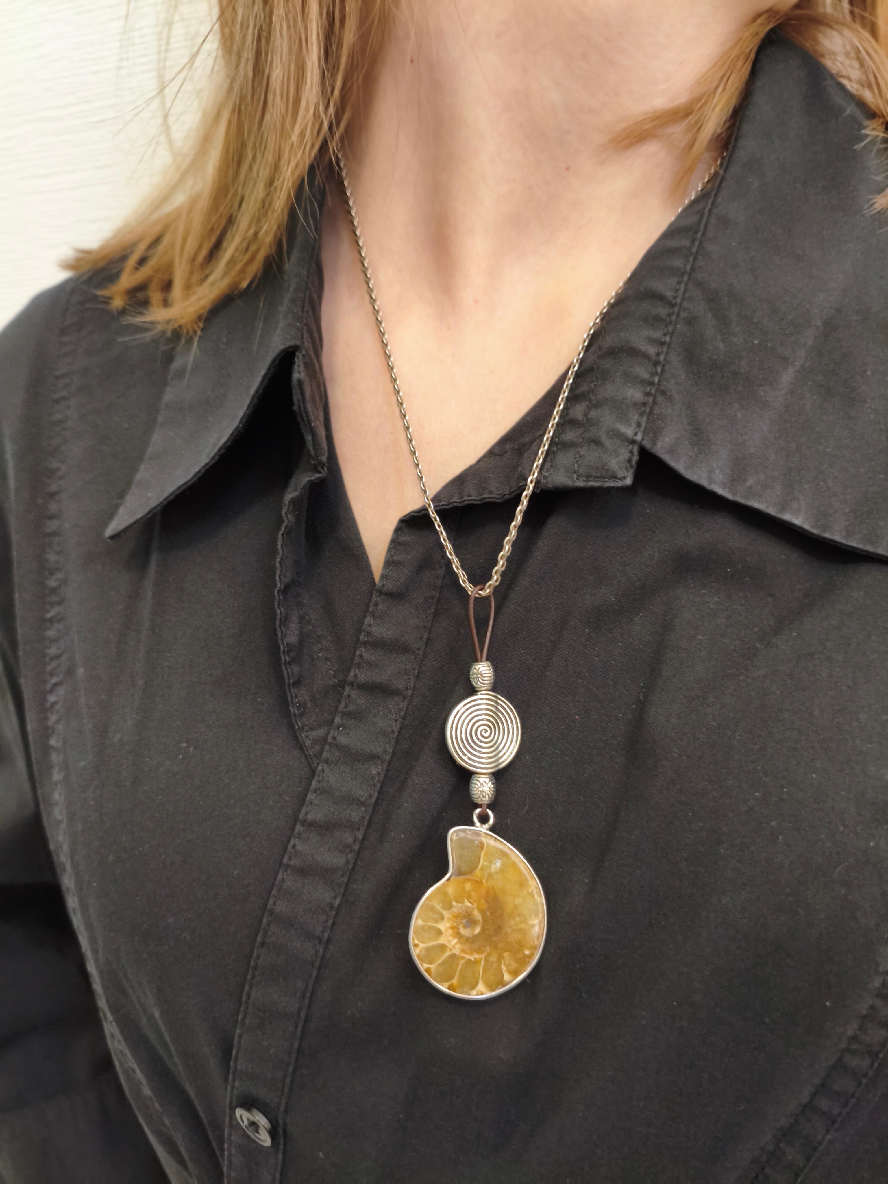 Серьги: камень симбирцит/фурнитура цвет серебро (нерж. сталь) + кожа 1 мм цвет коричневый. Длина от швензы 50 мм/швенза гипоаллергенное родиевое покрытие Подвеска: аммонит/фурнитура цвет серебро (нерж. сталь) + кожа 1 мм цвет коричневый. Подвеска 85 мм. В подарок черный вощеный шнур длиной с регулировкой 44-49 см