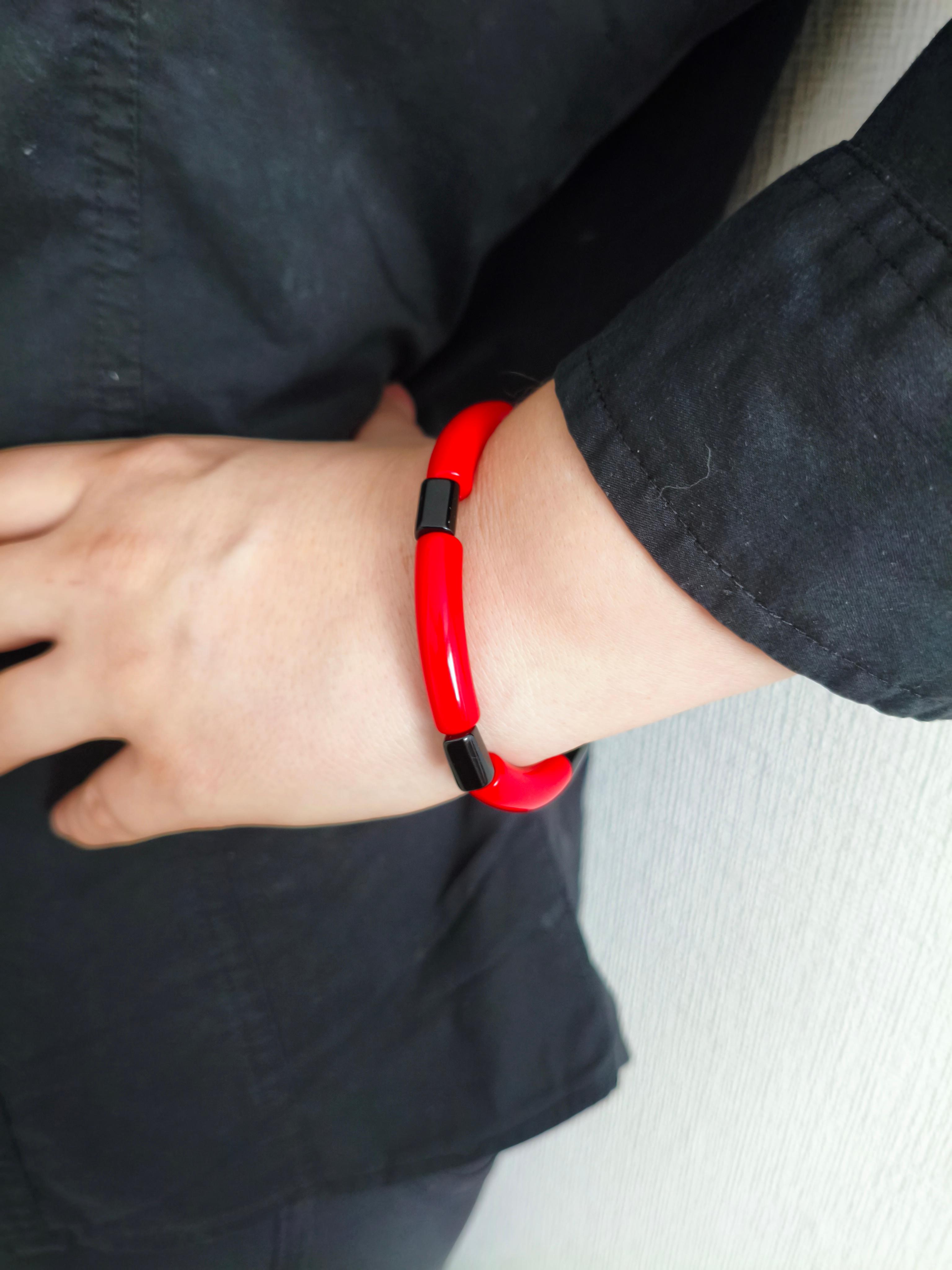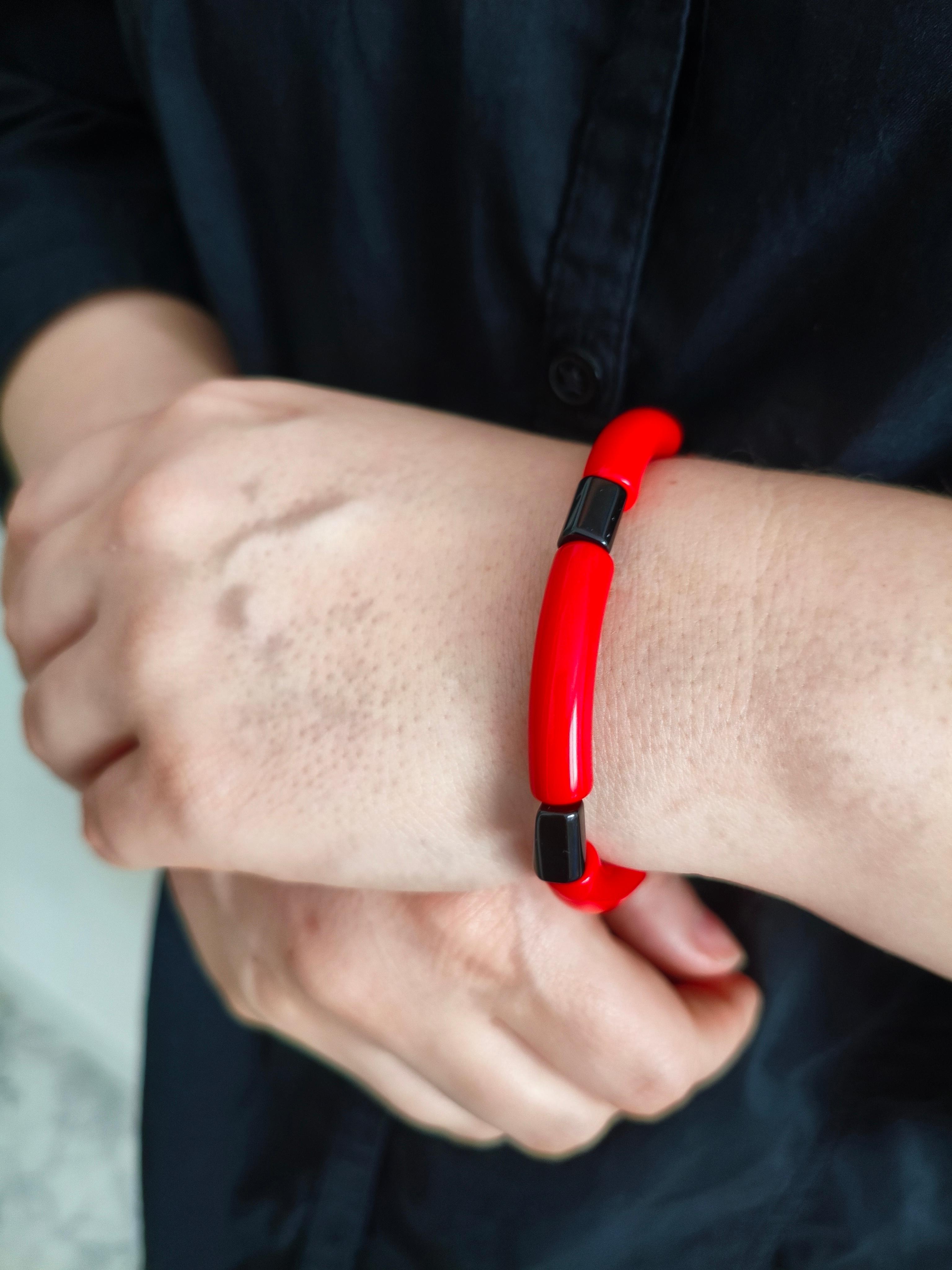 Черный обсидиан + красный акрил + стекло/резинка/держит форму ф 60 мм. Можно купаться. #значение Черный обсидиан: защита и заземление, поглощает негативную энергию и помогает преодолеть иллюзии