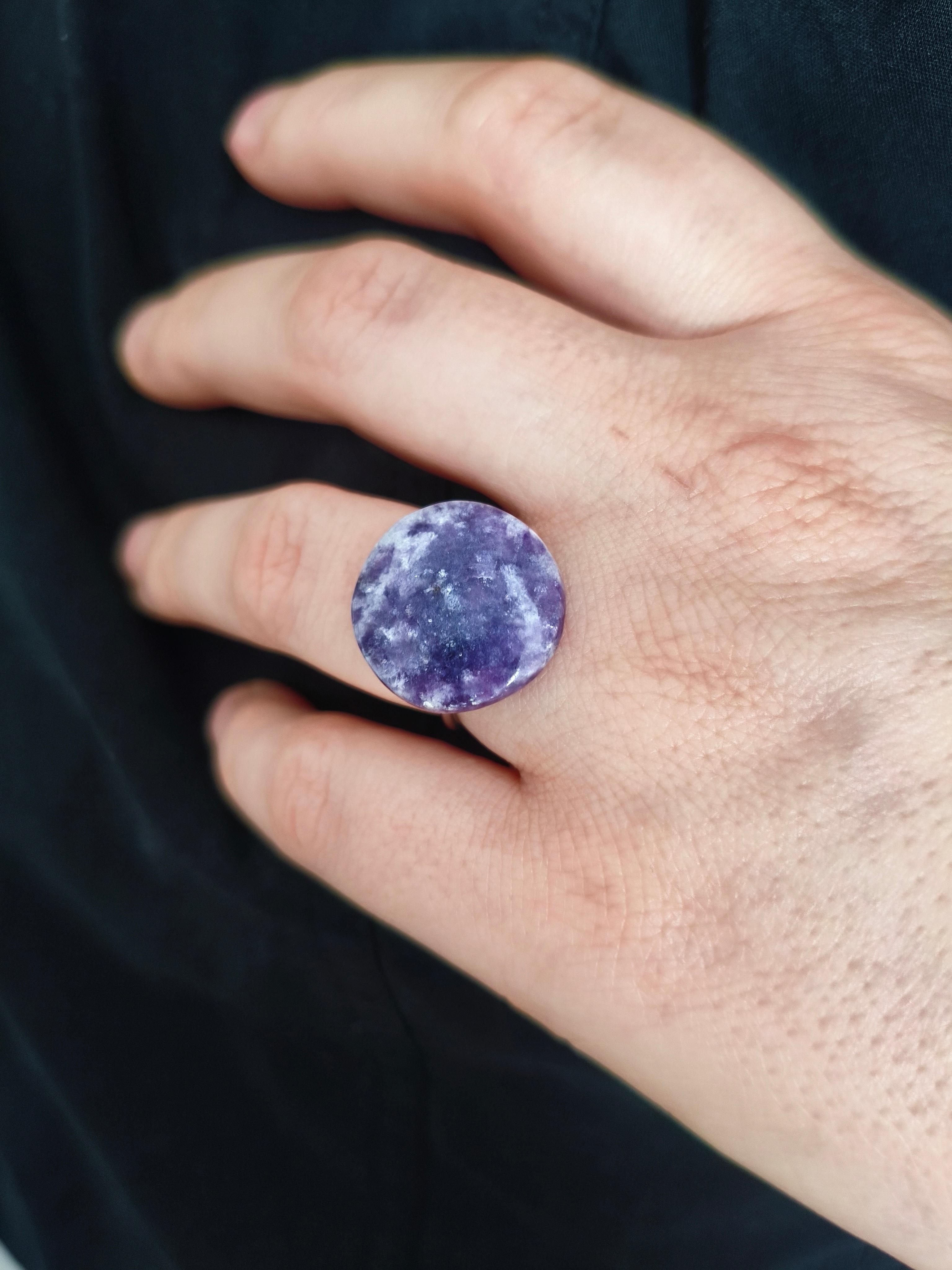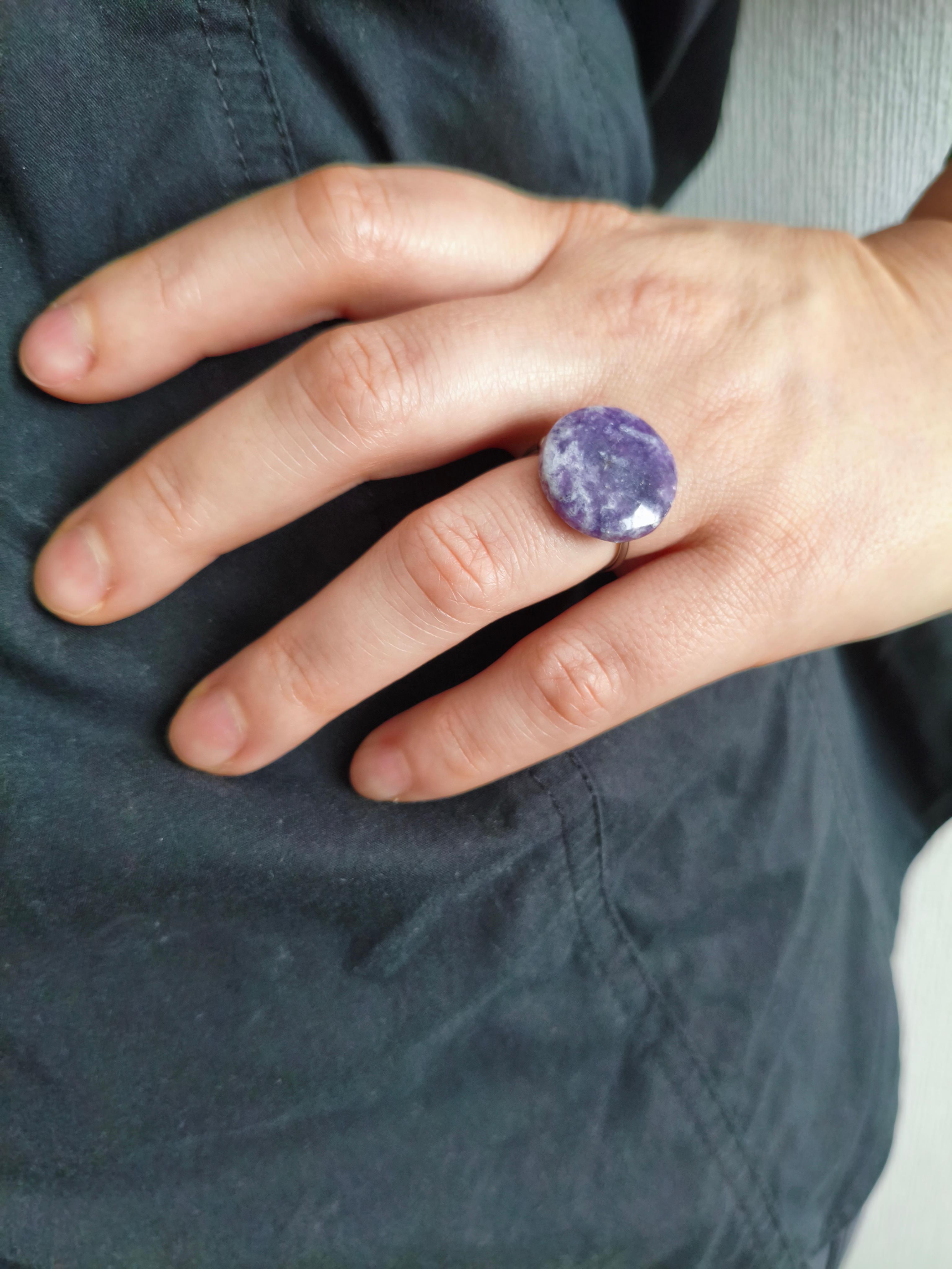 Кольцо «Леп» ✅Лепидолит ф 20 мм / безразмерное/нерж. сталь не окисляется (не боится воды). Подходит в комплект к серьгам и колье/подвеске "Леп" #значение 🔺Лепидолит: камень «перехода» или камень «мира», способствует эмоциональному равновесию, внутреннему спокойствию и усилению интуиции.