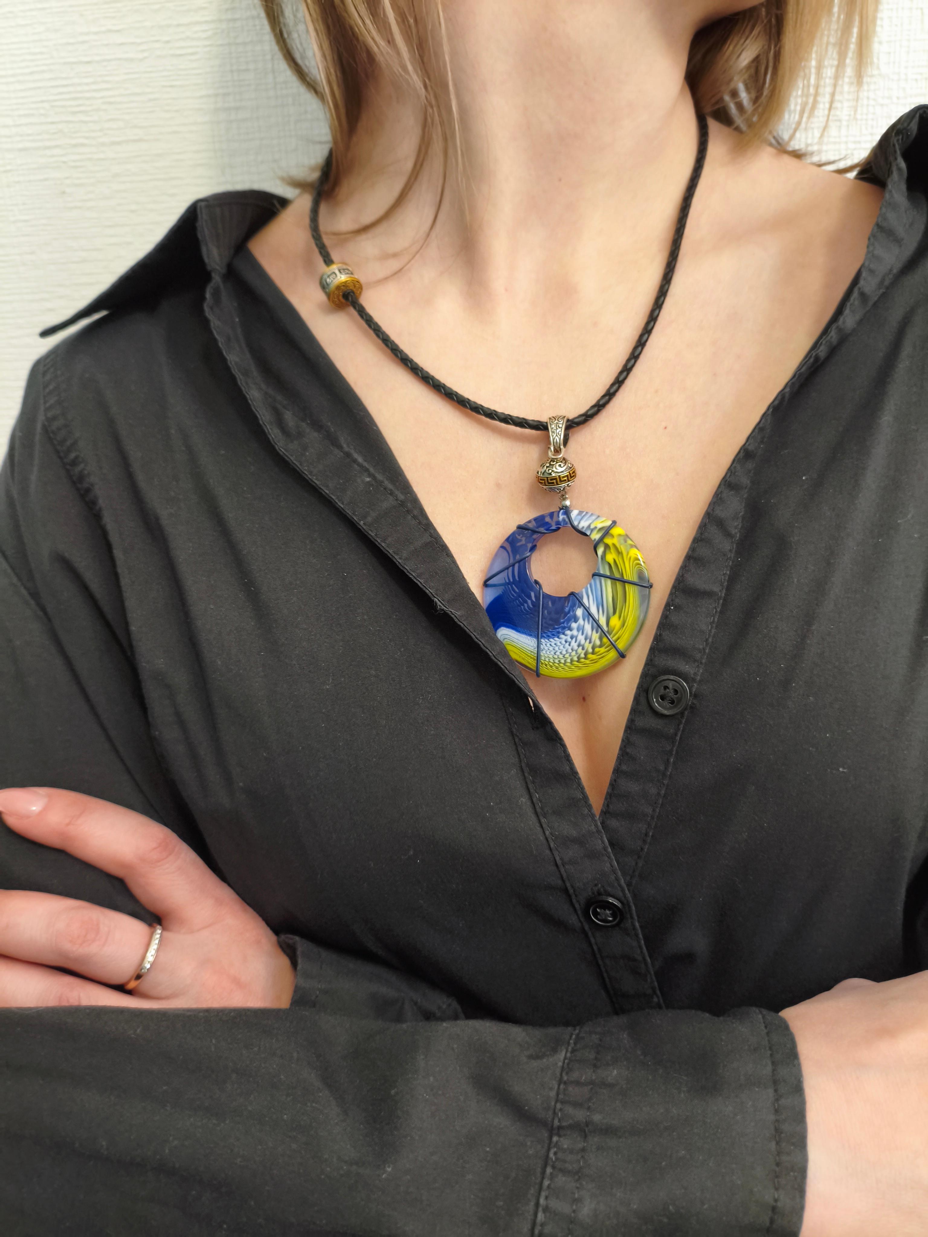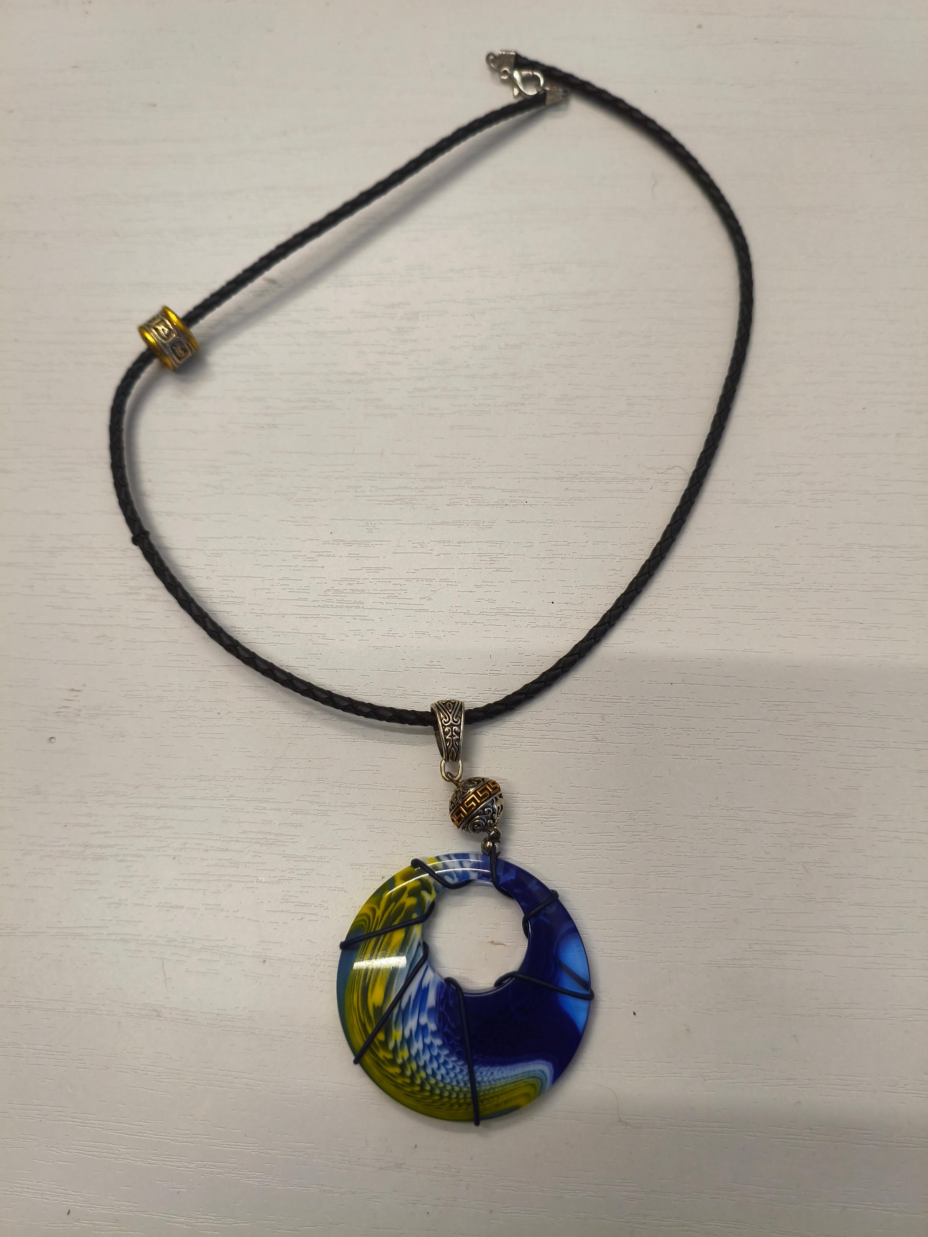 Пластик ф 50 мм + кожа/ фурнитура ювелирный сплав цвет античное серебро/золото. Длина шнура 49 см.