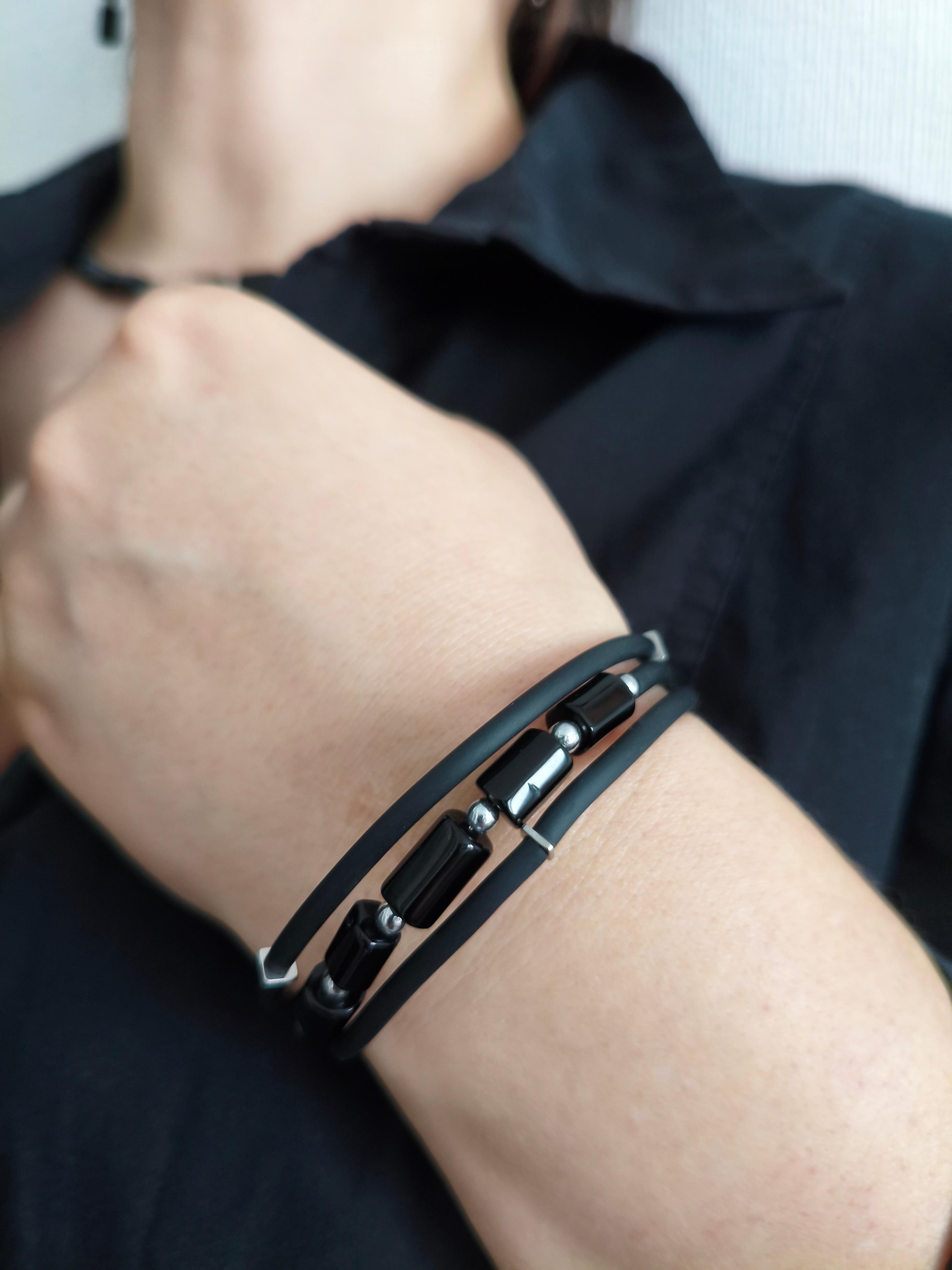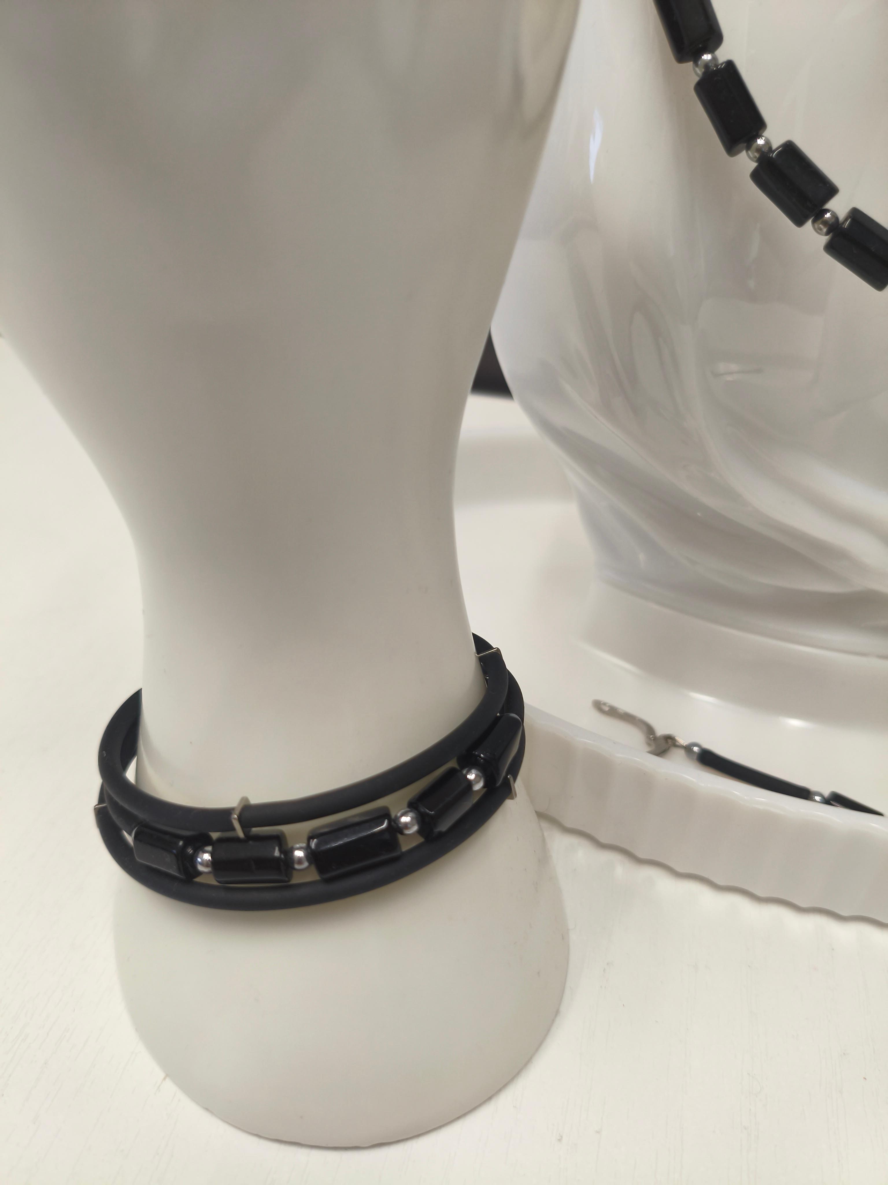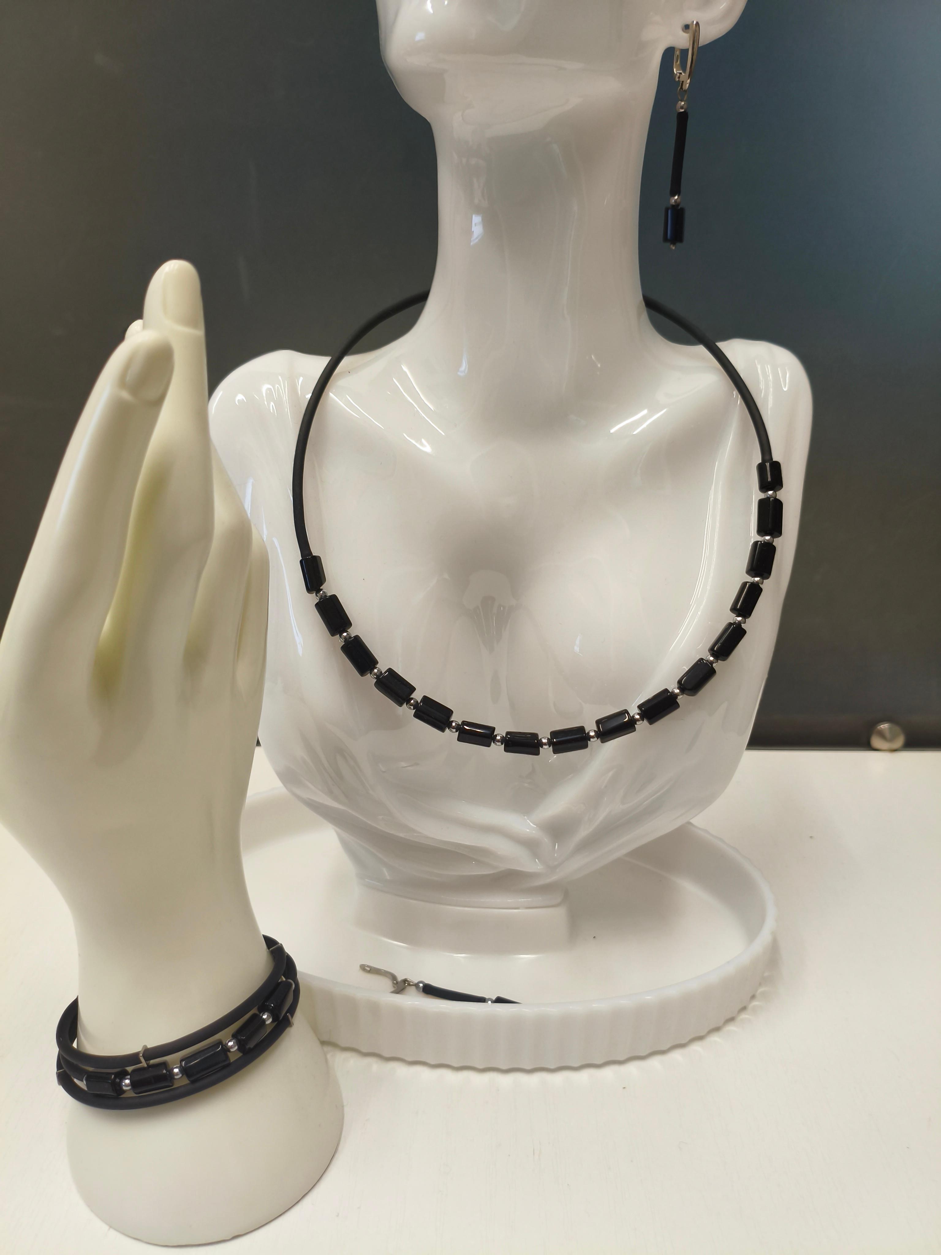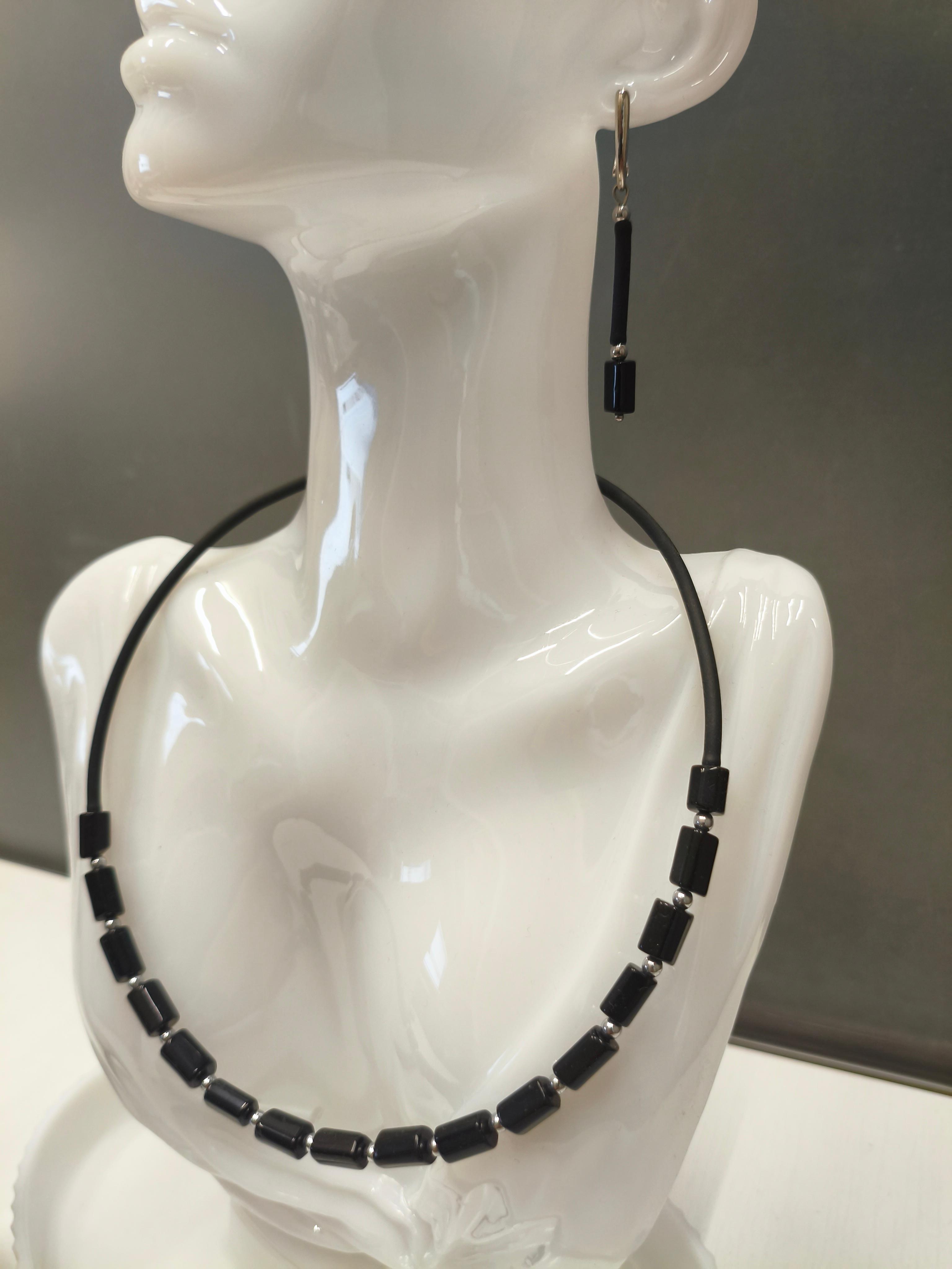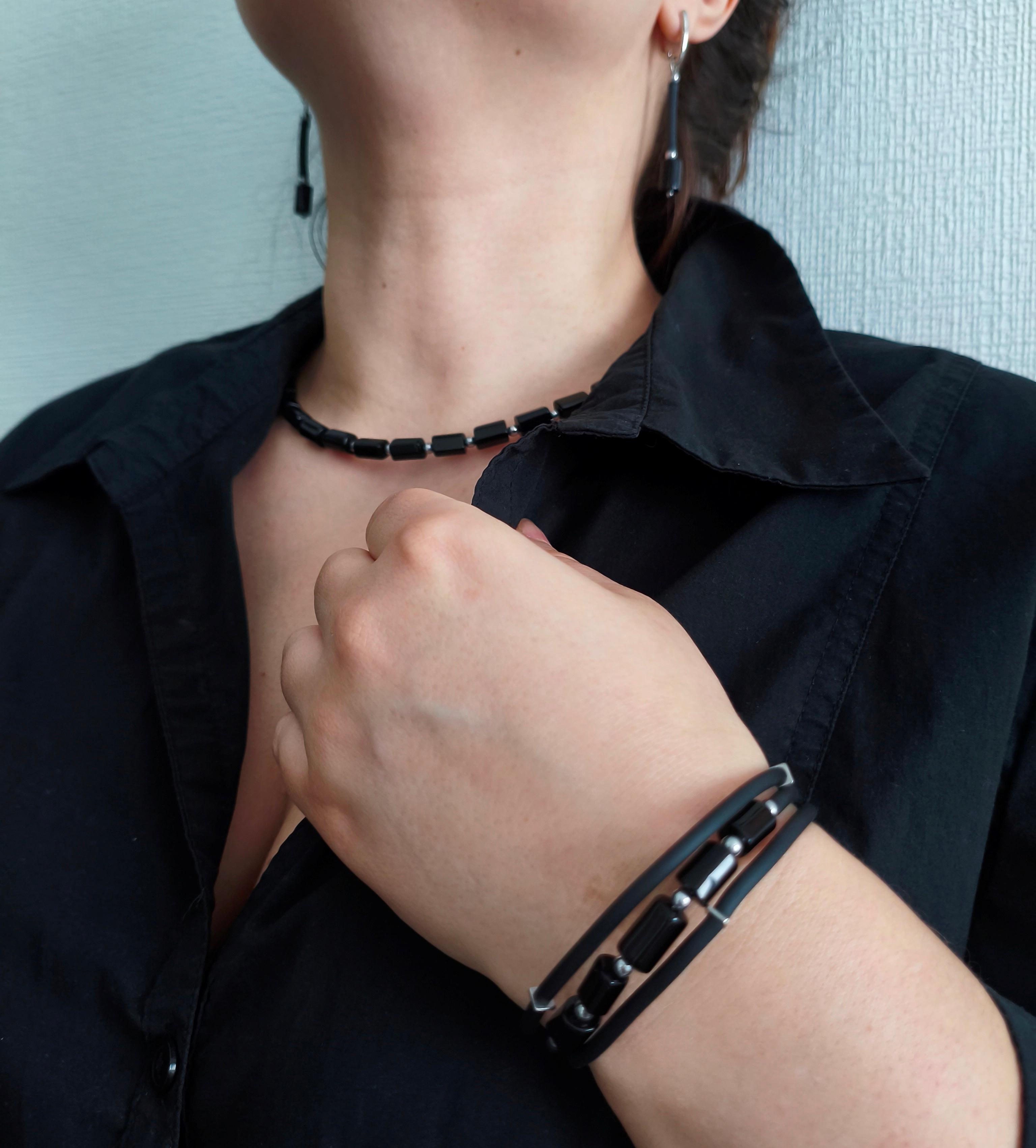 Серьги, чокер и браслет «Обси» ✅Серьги: Черный обсидиан 10*6 мм + гематит + черный каучук / фурнитура гипоаллергенное родиевое покрытие серебро. Длина от швензы 40 мм. Стоимость: 600 руб. ✅Чокер: Черный обсидиан 10*6 мм + гематит + черный каучук / серебро. Держит форму. Длина 47 см. Стоимость: 1000 руб. ✅Браслет: Черный обсидиан 10*6 мм + гематит + черный каучук /серебро 3 витка/ ф 60 мм / безразмерный Стоимость: 900 мм. #значение 🔺Черный обсидиан: защита и заземление, поглощает негативную энергию и помогает преодолеть иллюзии.