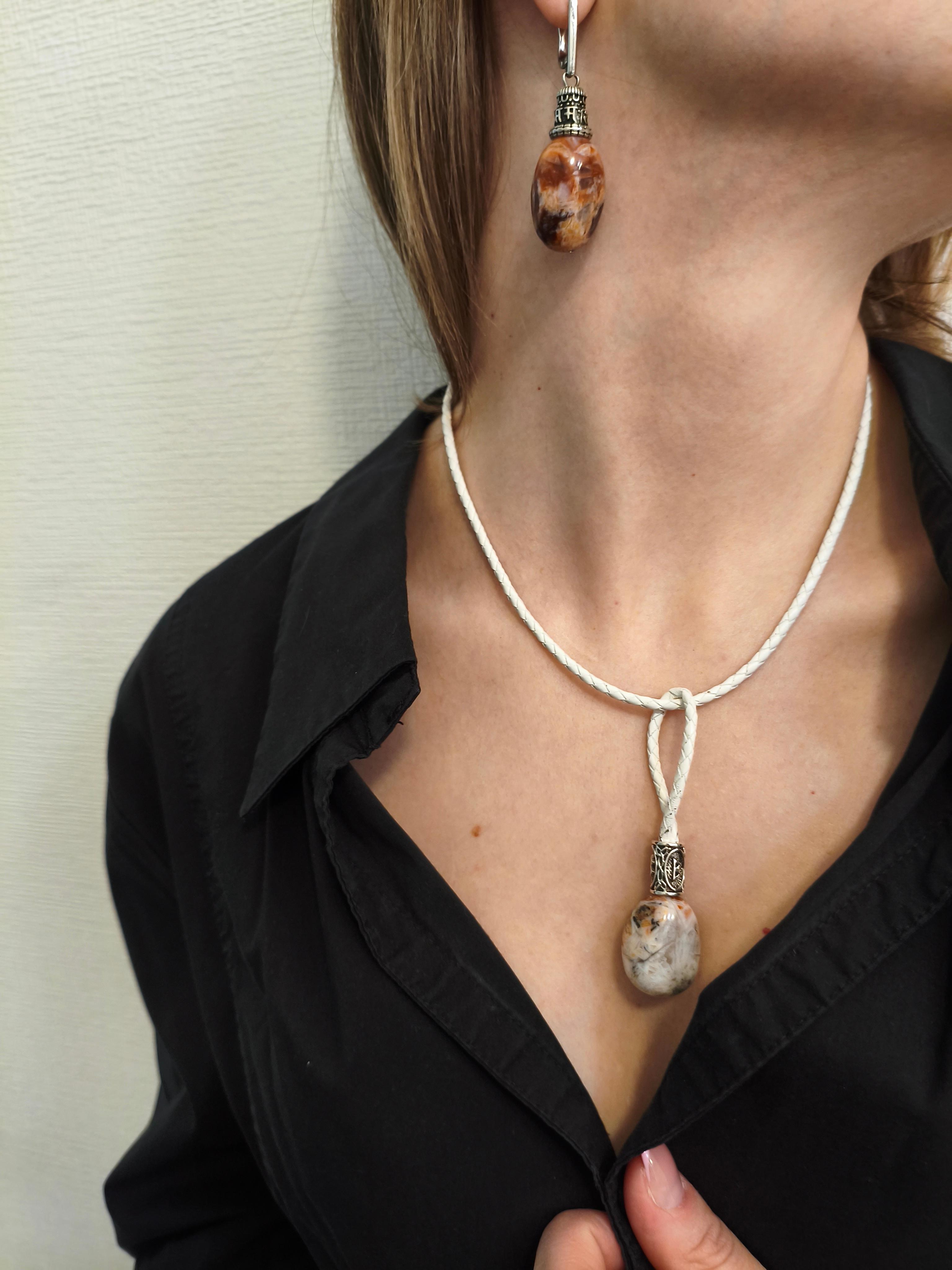 Натуральная яшма 25*20 мм + руна Беркана(ᛒ) + шнур белая кожа 4 мм витая/фурнитура цвет античное серебро. Длина подвески 70 мм, длина шнура 43-49 см. #значение Яшма + Беркана ✅Яшма (в общем значении): камень стабильности, защиты, связи с землёй; укрепляет здоровье, даёт опору. ✅Беркана (ᛒ): руна роста, материнства, плодородия; символизирует заботу, развитие, новые начинания. ⭕️Синтез: амулет для созидания, заботы о семье, роста проектов или отношений. Помогает «взрастить» задуманное, обрести стабильность, поддержать материнство или творческие замыслы.