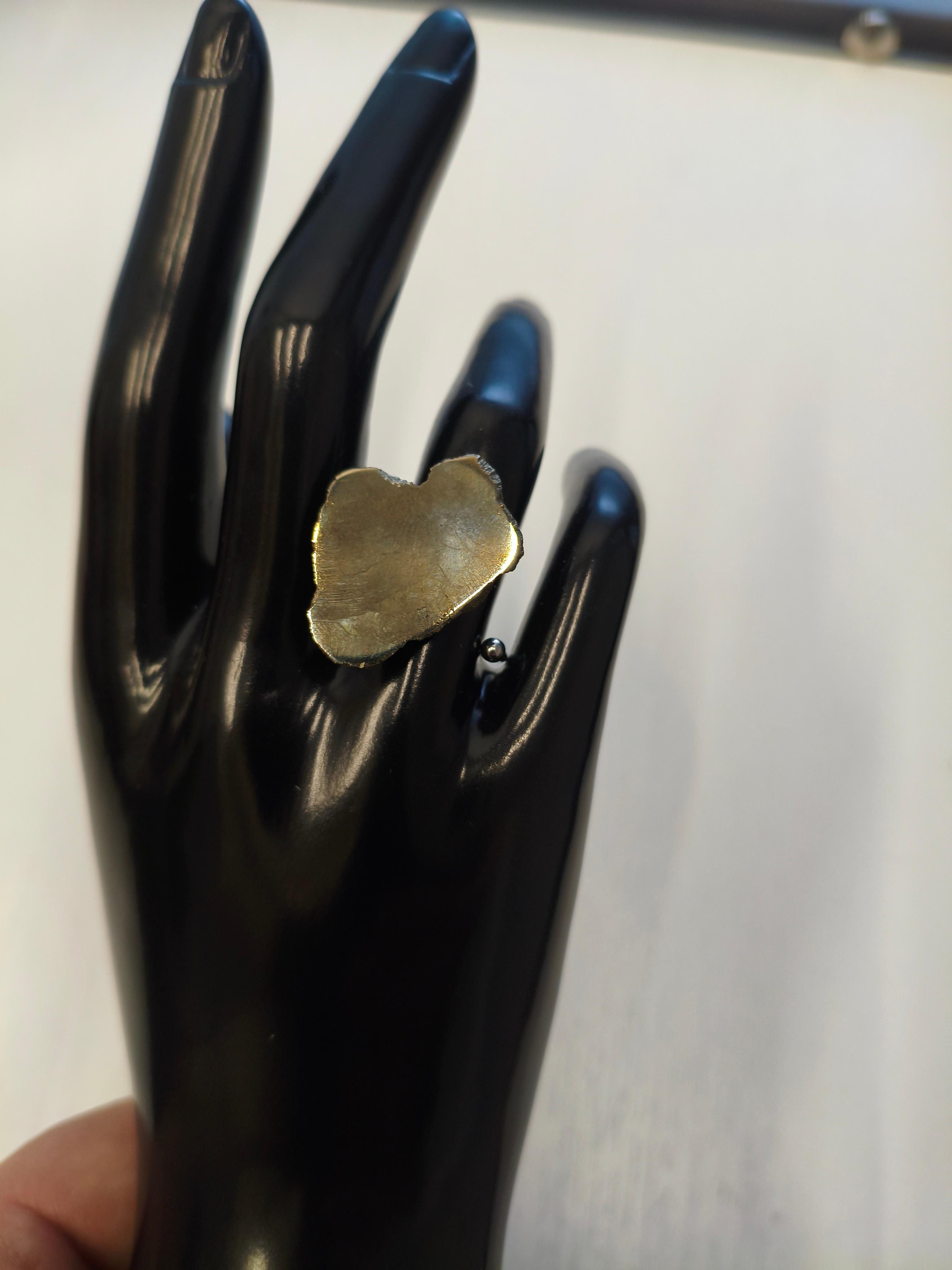 Кольцо «Пирит 1» Натуральный пирит 27,5*21,6*4,4 мм /безразмерное/ нержавеющая сталь цвет серебро #значение ✅Пирит: мужская энергия, храбрость, решительность, привлечение богатства, защита в конфликтах.