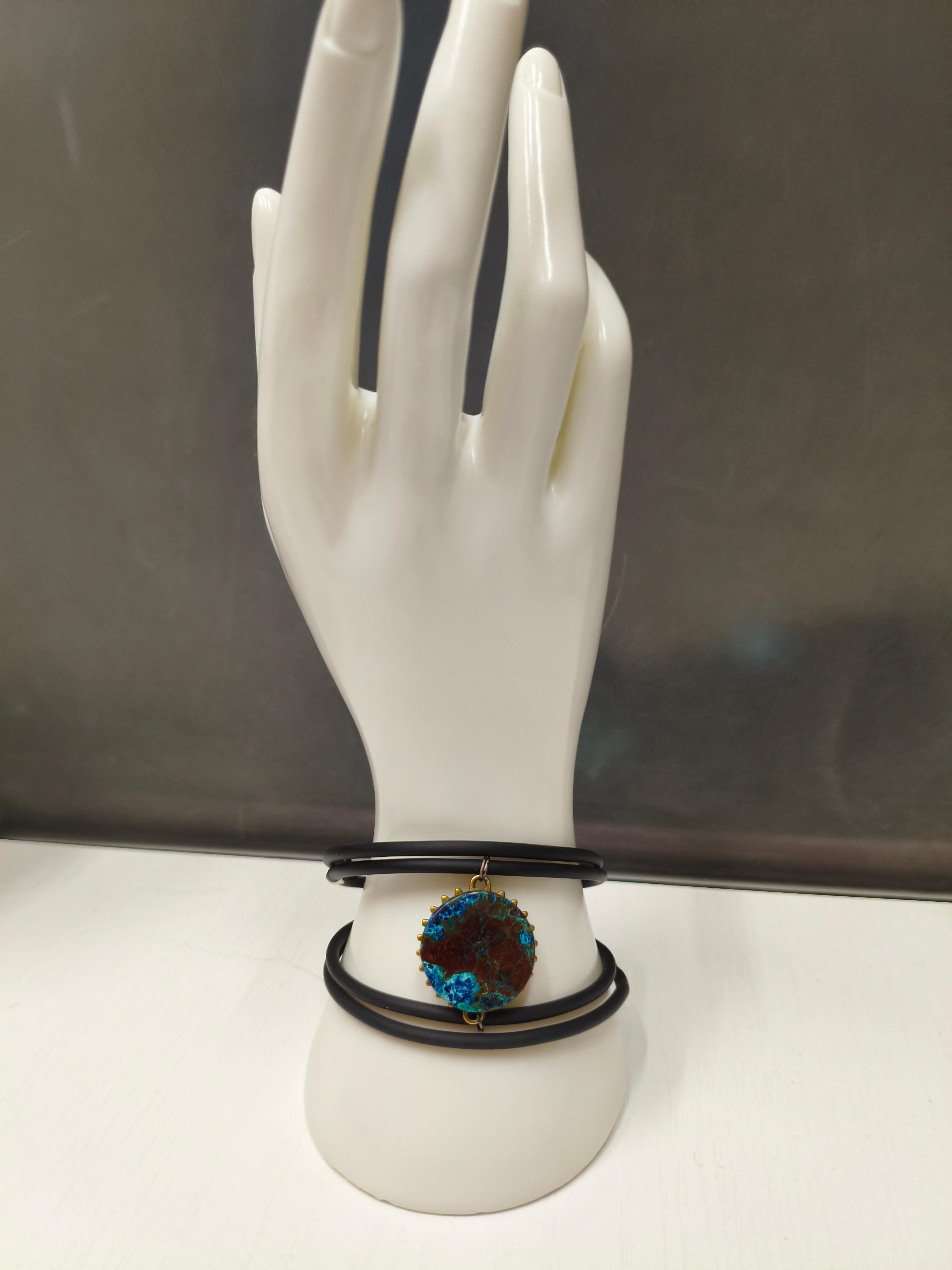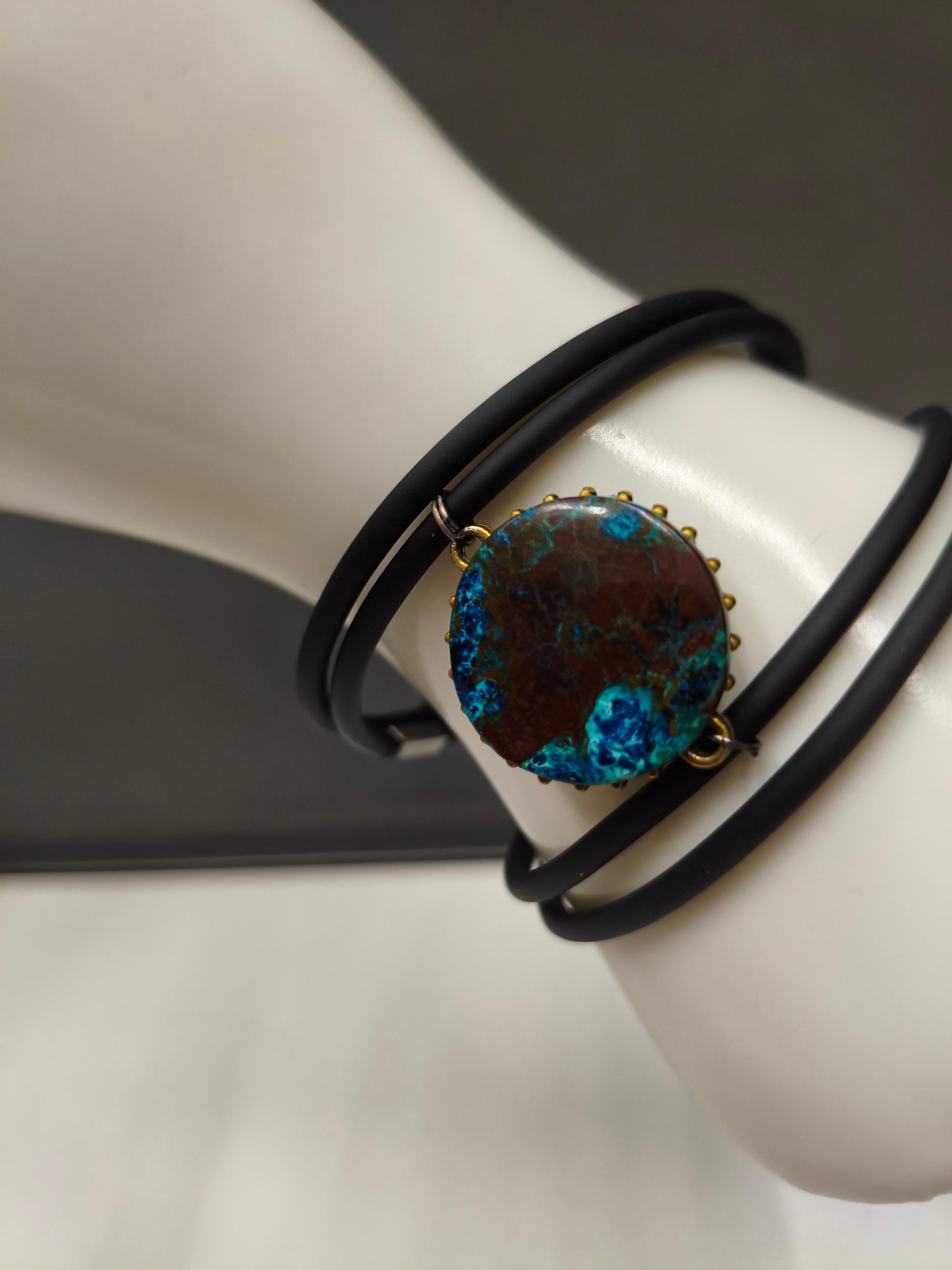 Браслет «Планета» Натуральный шаттукит ф 22 мм +черный каучук + вставки брусок из нерж. стали. 4 витка ф 60 мм с памятью. #значение ✅Шаттукит: духовный камень, который повышает энергетическую вибрацию, усиливает силу мысли, защищает от чужого вмешательства.