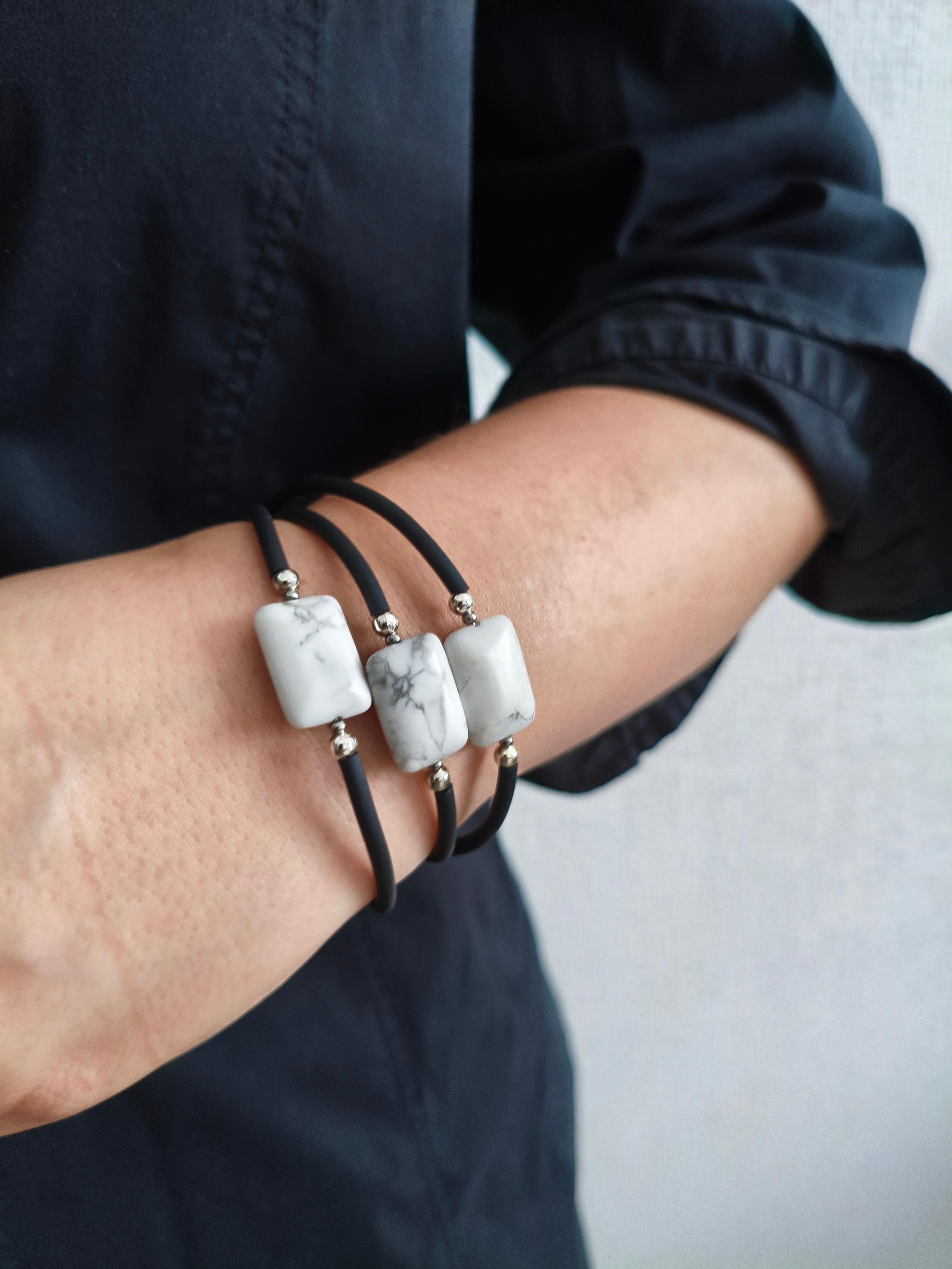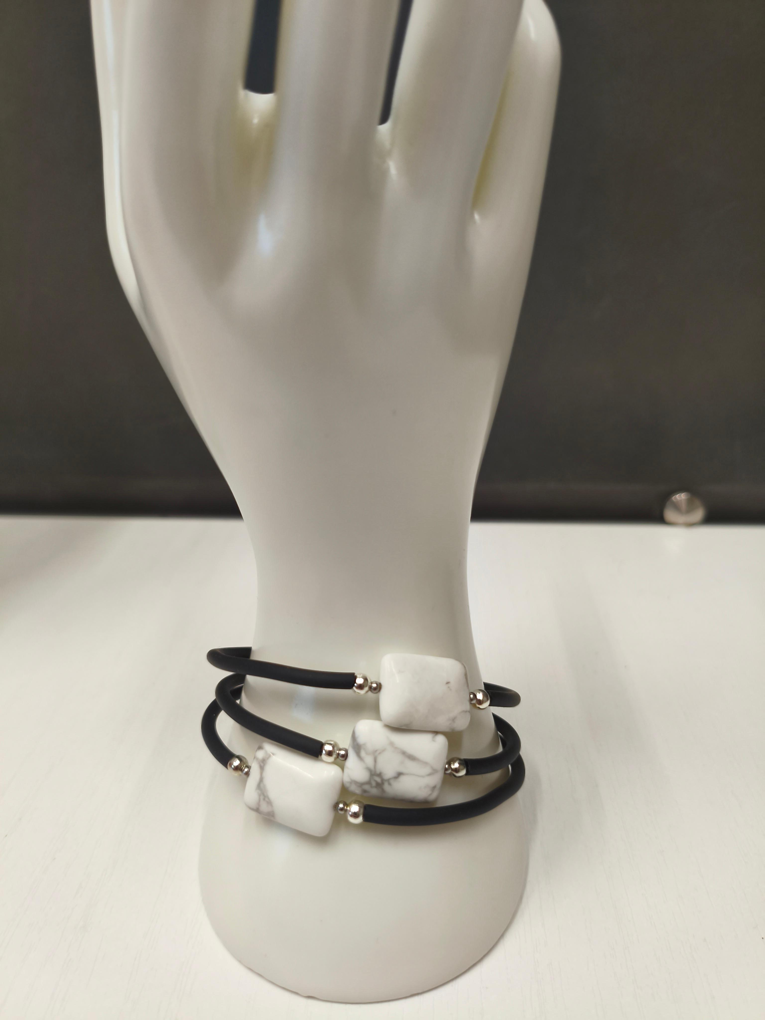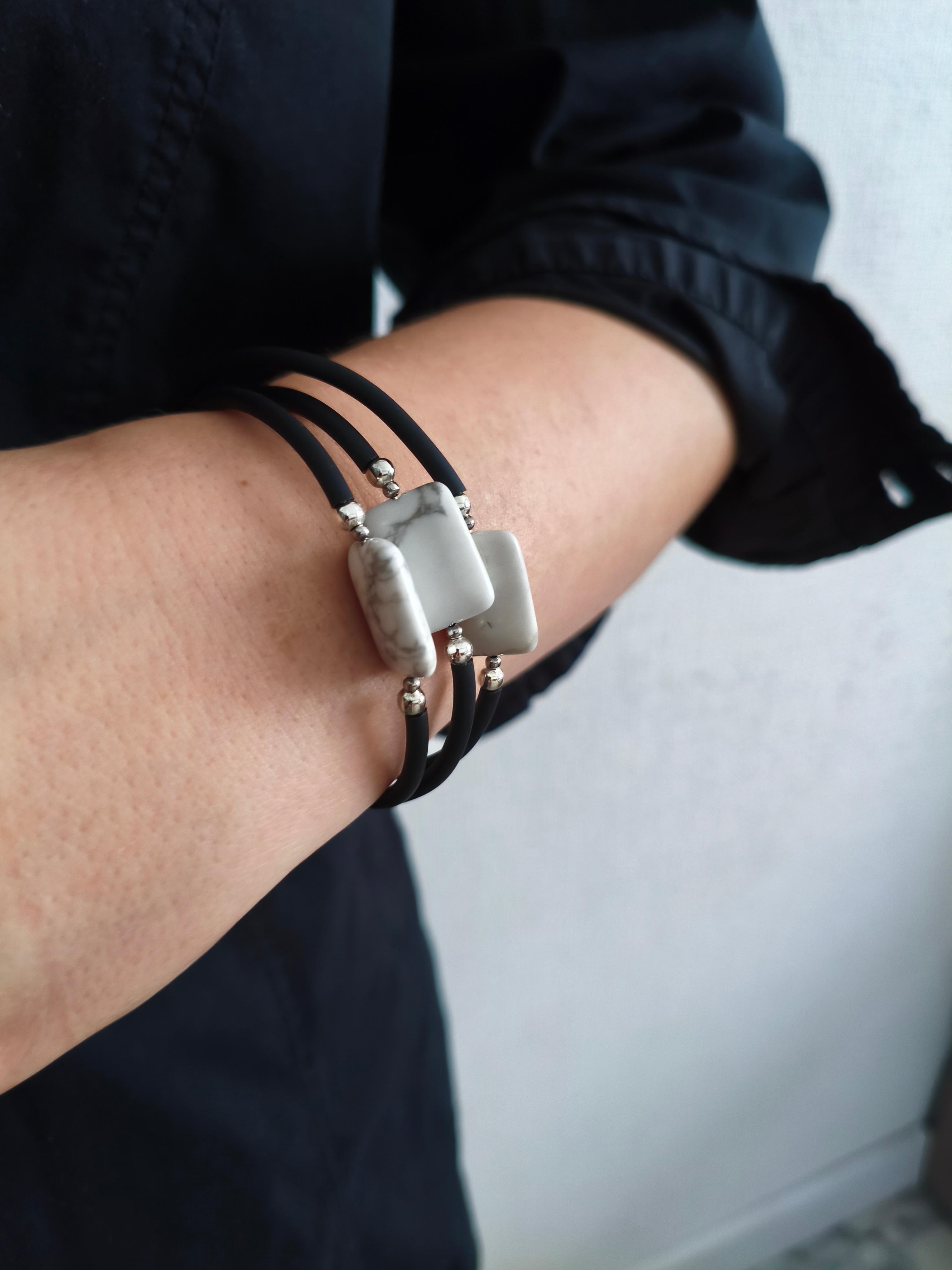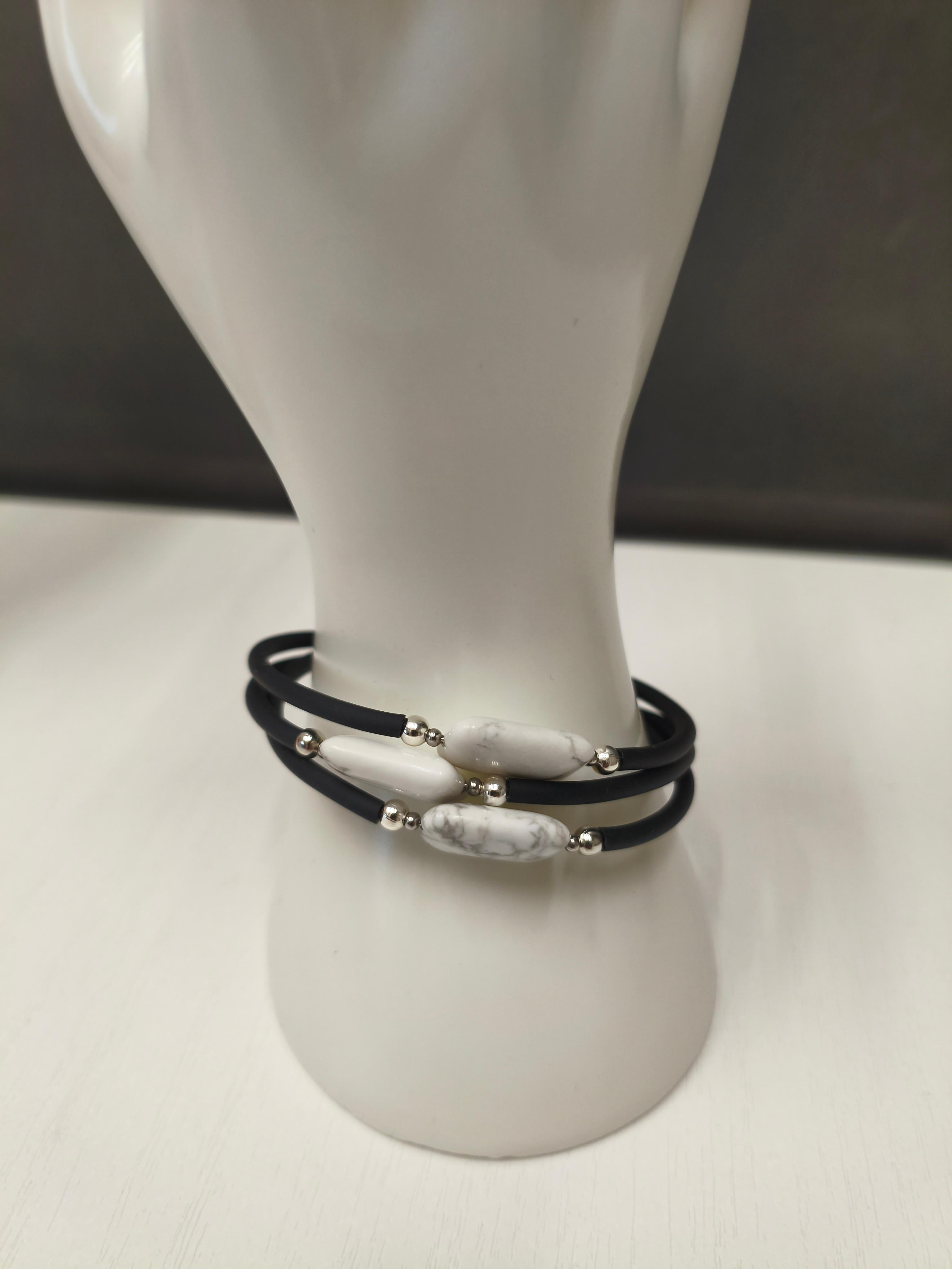Браслет с памятью Говлит + каучук черный /фурнитура цвет серебро. ф 60 мм 3 витка. Подходит в комплект с подвеской "Говлит капля" #значение 🔺Говлит: камень спокойствия и мудрости, помогает обрести внутренний баланс, развить интуицию и углубить духовные практики.