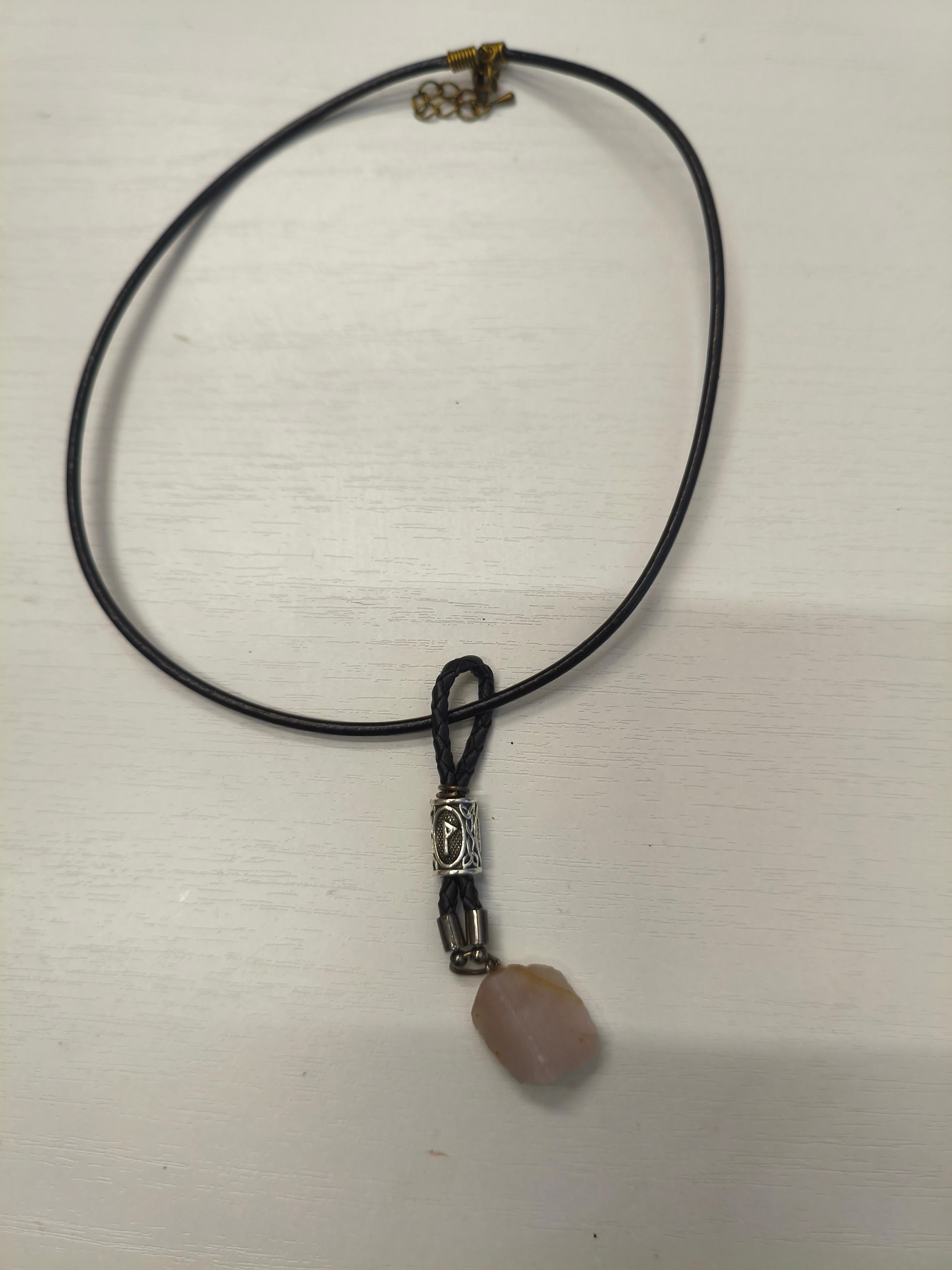 Натуральный необработанный розовый кварц 20*15 мм + руна Вуньо + черная кожа 4 мм витая ( чокер кожа 2,5 мм гладкая)/фурнитура цвет античное серебро/бронза. Длина подвески 75 мм, длина шнура 42-47,5 см. #значение амулета Розовый кварц + Вуньо ✅Розовый кварц: камень любви, нежности, исцеления эмоциональных ран; открывает сердце, притягивает тёплые отношения. ✅Вуньо (ᚹ): руна радости, удовлетворения, исполнения желаний; приносит лёгкость, счастье. ⭕️Синтез: амулет для привлечения любви, укрепления самооценки, радости в отношениях. Помогает исцелить сердечные травмы и настроиться на позитив.
