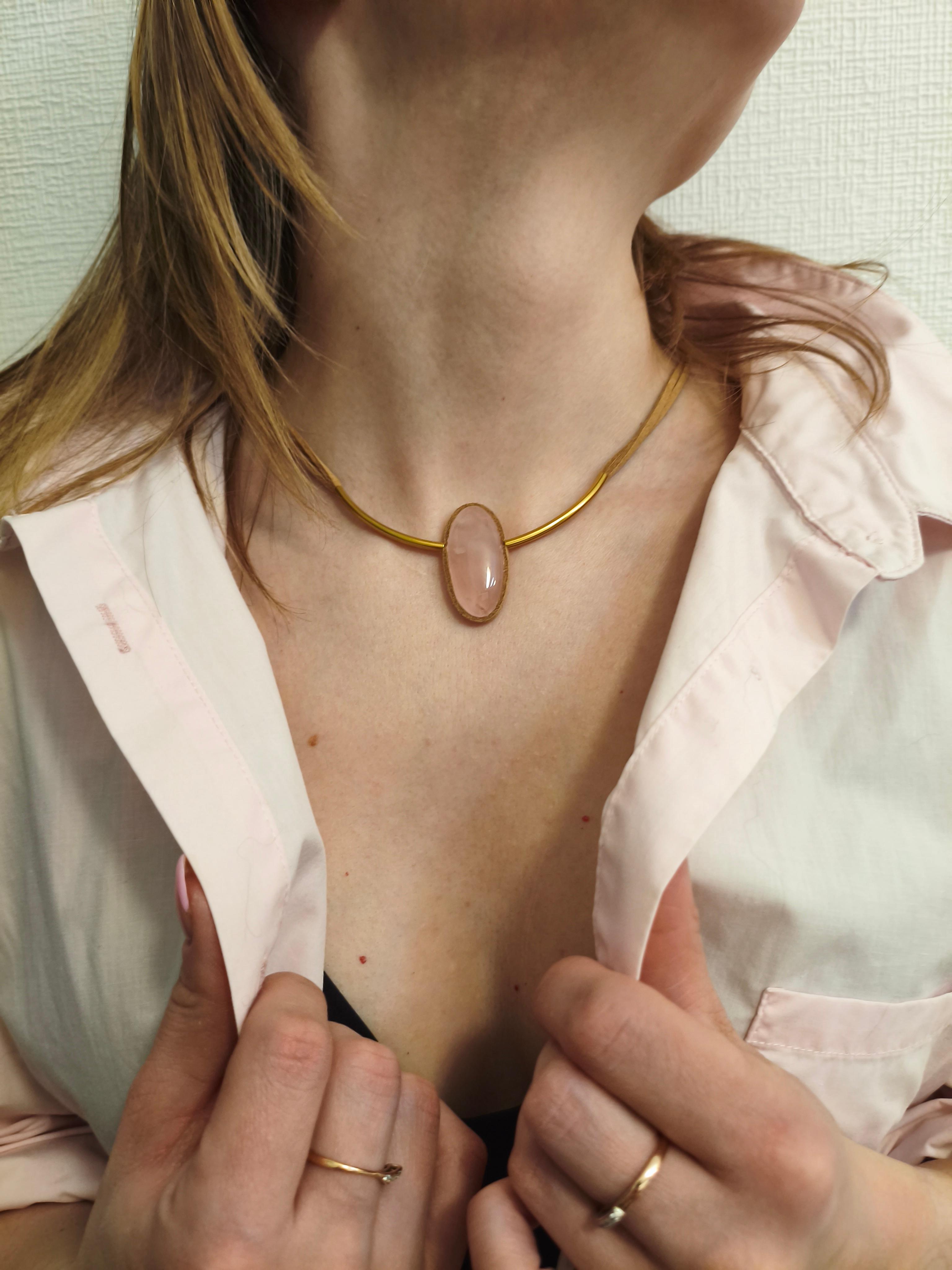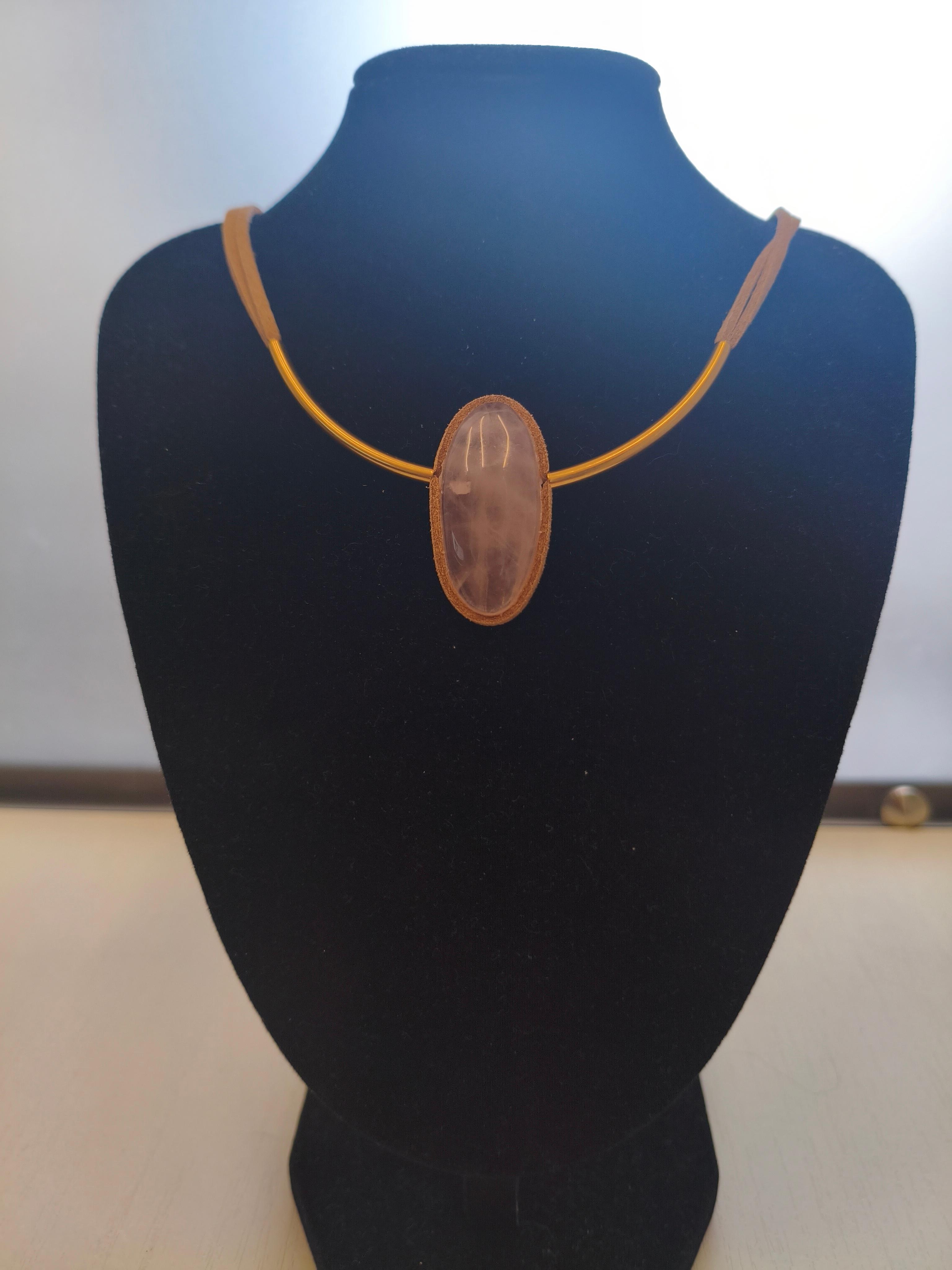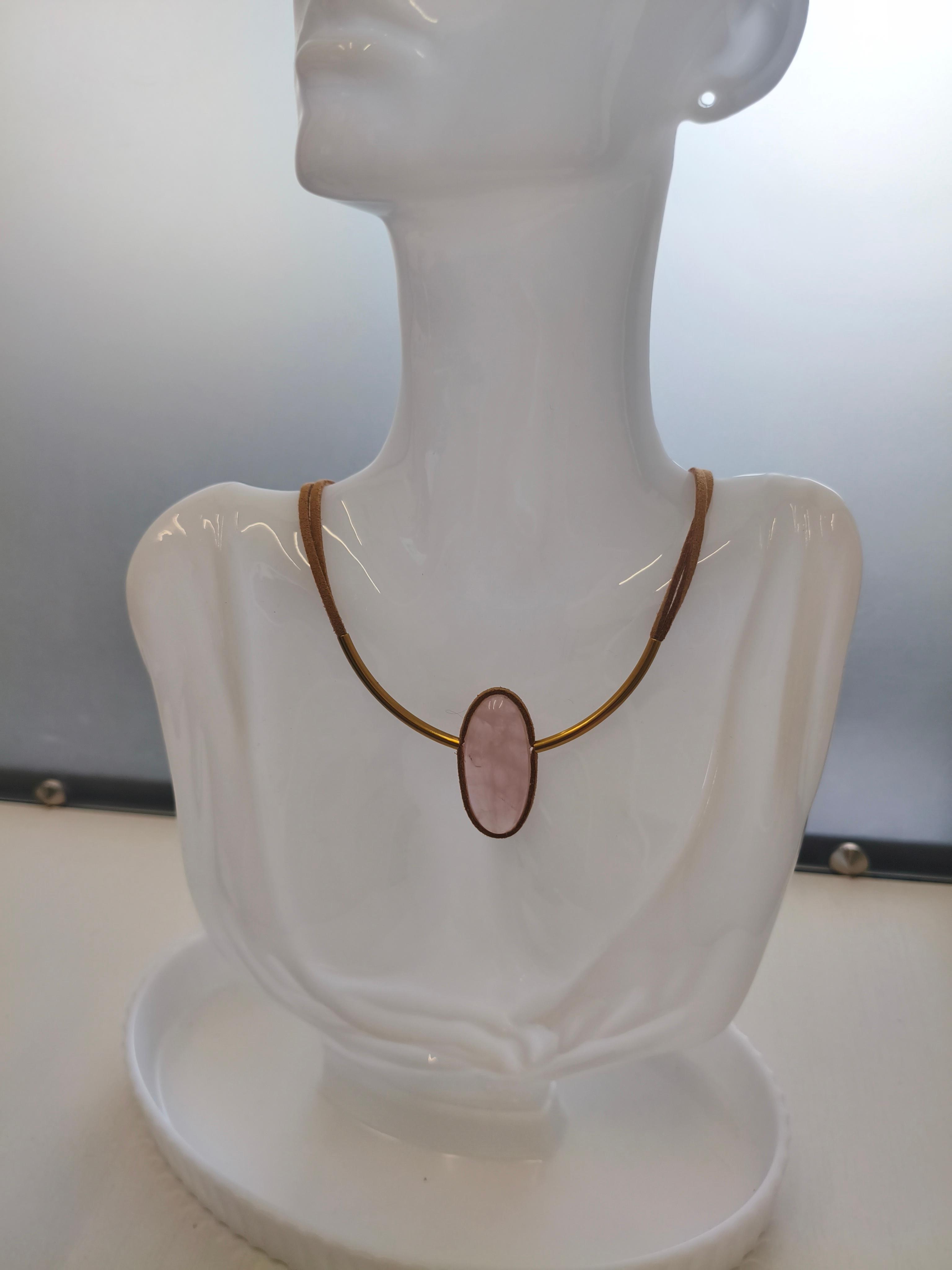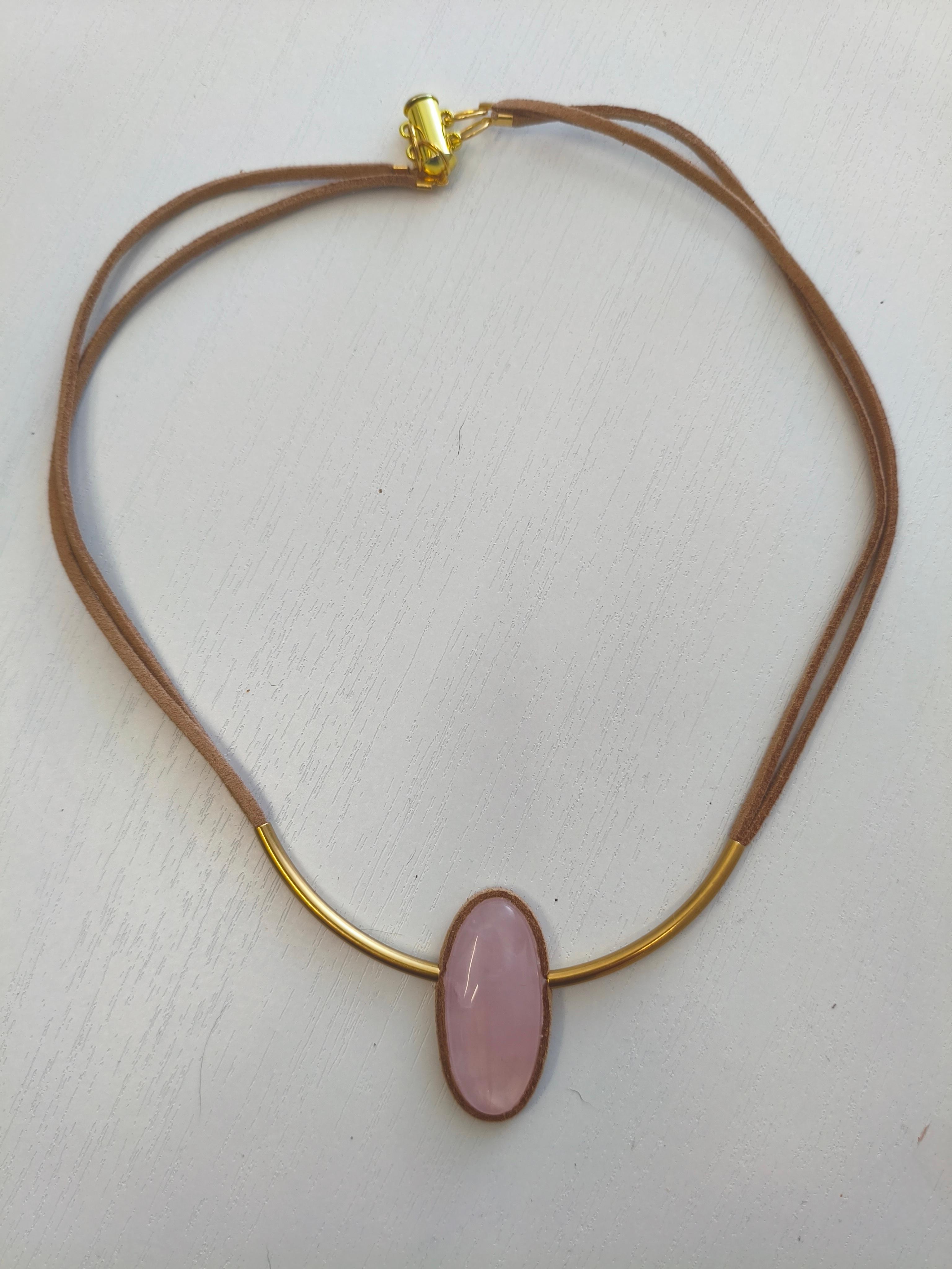 Розовый кварц 35,2*16*7,8 мм + бежевая замша /фурнитура латунь/золото – застежка магнитная. Длина 47 см. #значение ⭕️любовь, нежность, исцеление сердечных ран, привлечение партнёрства, умиротворение.