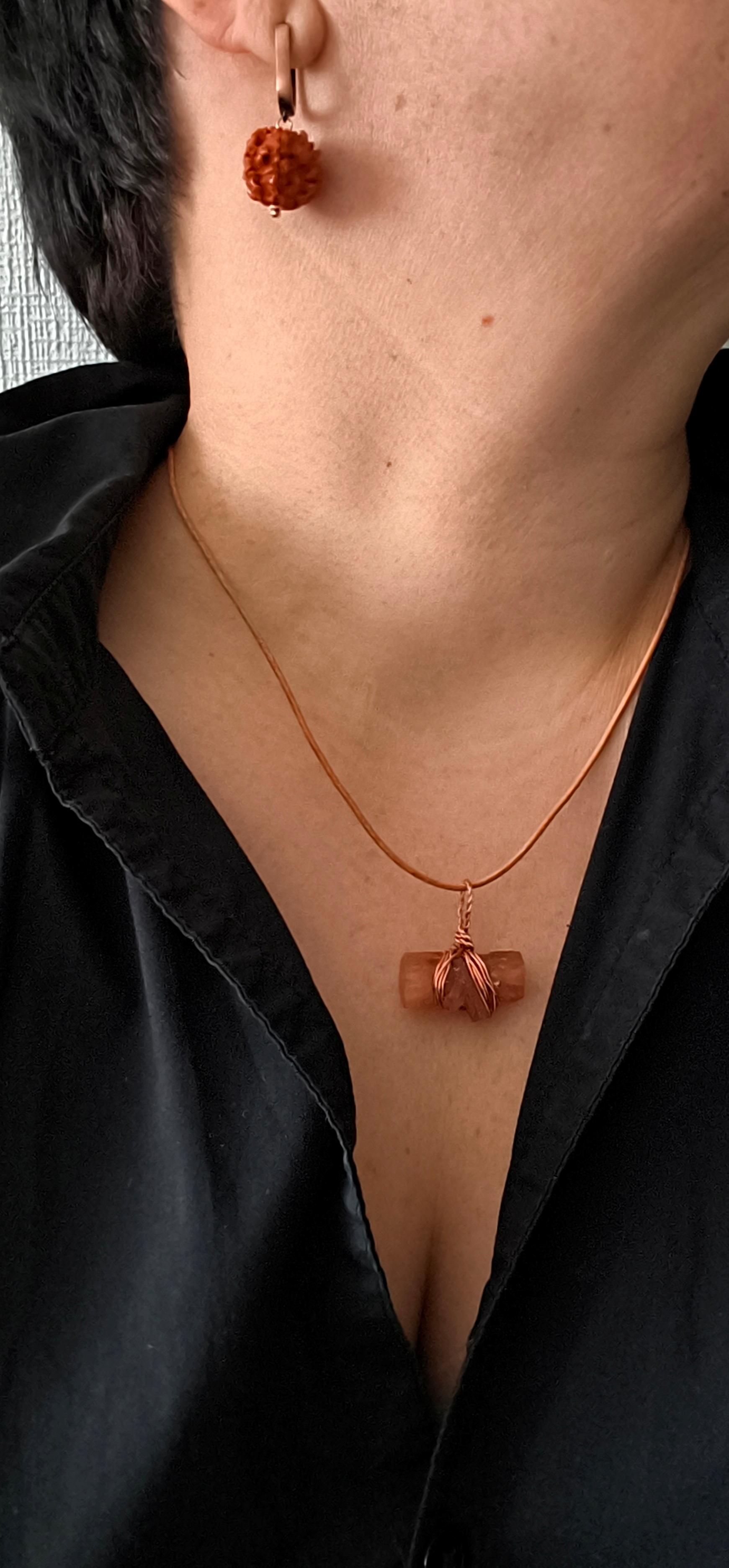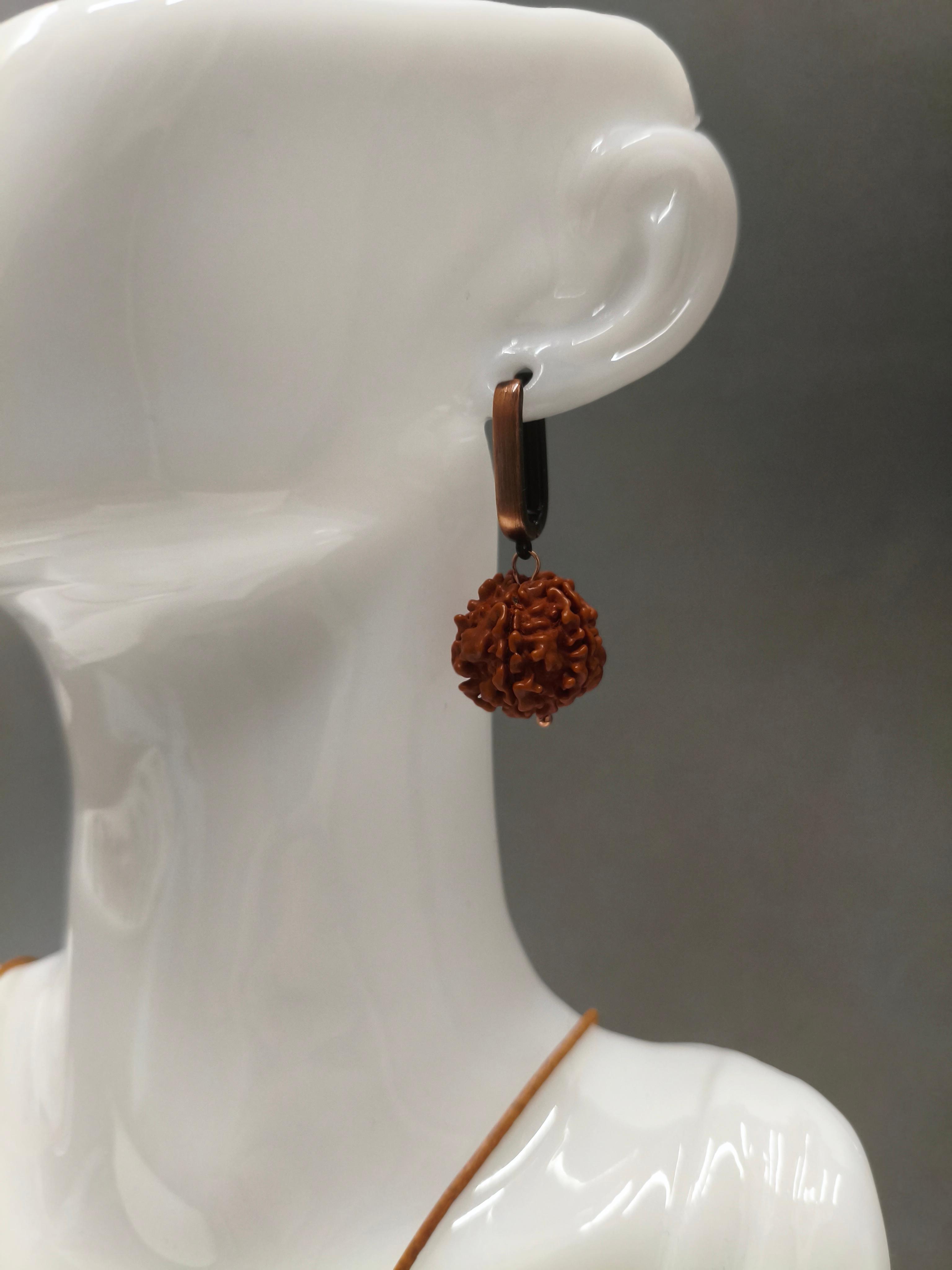 Серьги «Рудракша» ✅Серьги: Рудракша ф 16 мм / фурнитура гипоаллергенное родиевое покрытие цвет медь. Длина от швензы 20 мм. Подходит в комплект с колье «Арагон» #значение 🔺Рудракша (семя дерева лат. Elaeocarpus ganitrus, санскр. रूद्राक्ष — «глаза Рудры», иногда называют «слезой Рудры») — вид вечнозелёных широколиственных деревьев семейства элеокарповых. Произрастает по преимуществу на Индо-Гангской равнине и в предгорьях Гималаев. Зёрна, выросшие в Непале, называются «рудракша». Зёрна, выросшие в Индонезии, называются «индракша». Зёрна, выросшие в Индии, называются «бхадракша». Место произрастания рудракши никоим образом не влияет ни на какие её качества. Все они — и рудракша, и индракша, и бхадракша — одинаково ценны и могут быть использованы как в ритуале почитания Шивы, так и в ежедневном ношении. Краткое эзотерическое значение: защищает от негативных энергий, гармонизирует чакры, способствует духовному развитию и эмоциональному равновесию.