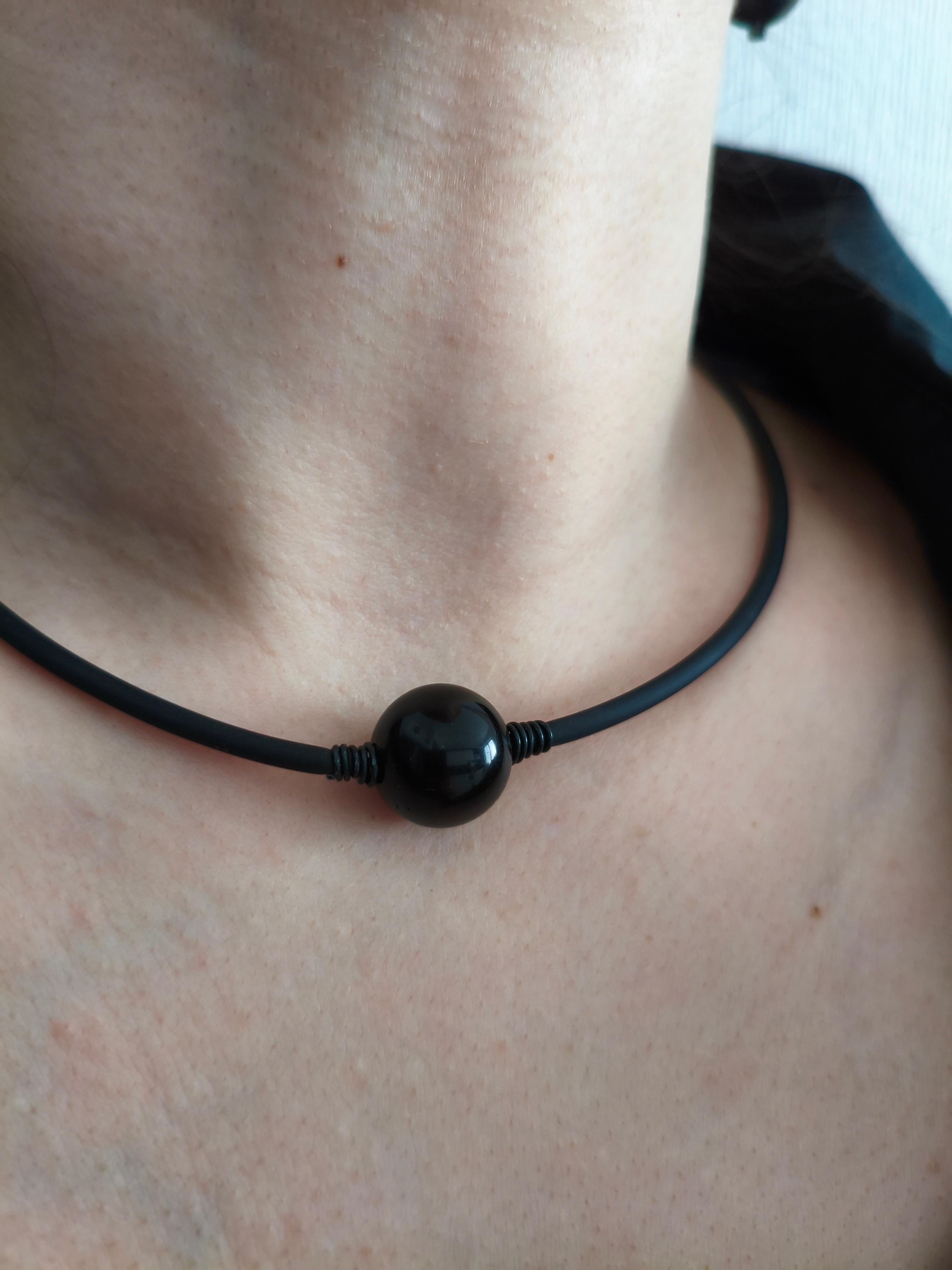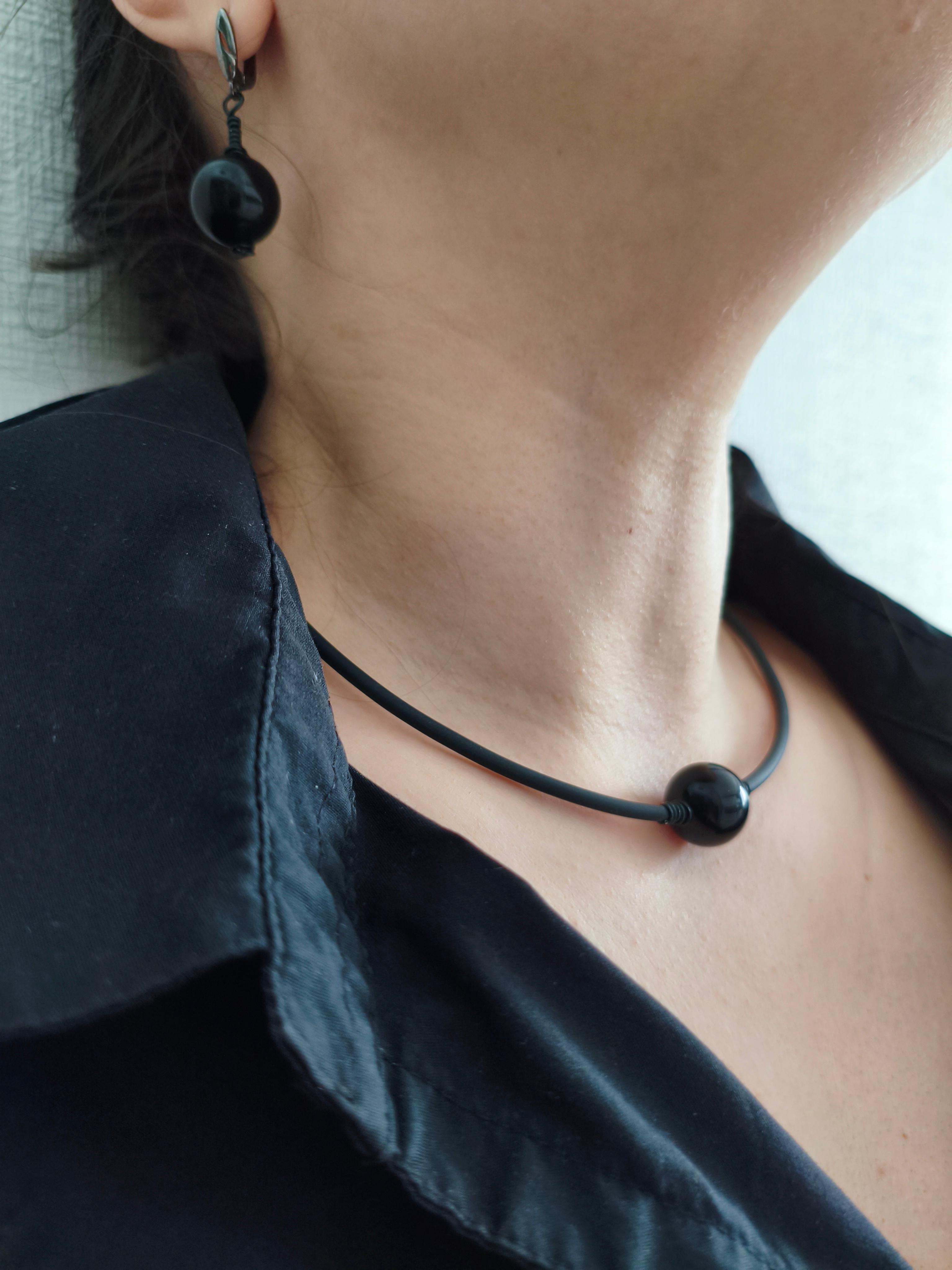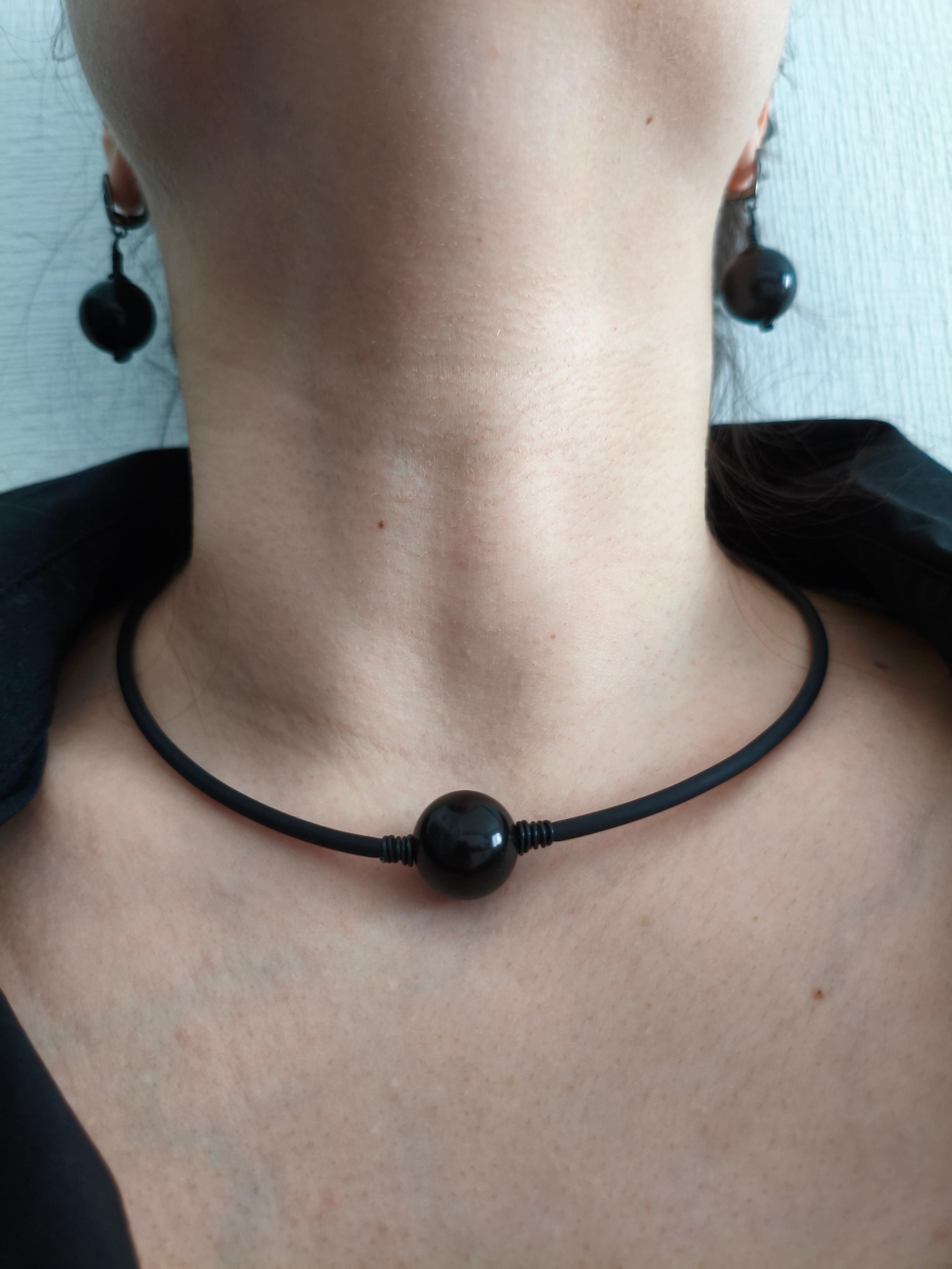 Серьги и колье/чокер «Шар-пружина» ✅Серьги: Черный обсидиан ф 16,4 мм + алюминий черный/ фурнитура гипоаллергенное родиевое покрытие черный. Длина от швензы 30 мм. Стоимость: 1300 руб. ‼️БРОНЬ‼️ ✅Колье/чокер: Черный обсидиан ф 16,4 мм + алюминий черный + каучук/черный. Чокер 45 см. Стоимость: 1100 руб. ‼️БРОНЬ‼️ #значение 🔺Черный обсидиан: защита и заземление, поглощает негативную энергию и помогает преодолеть иллюзии.