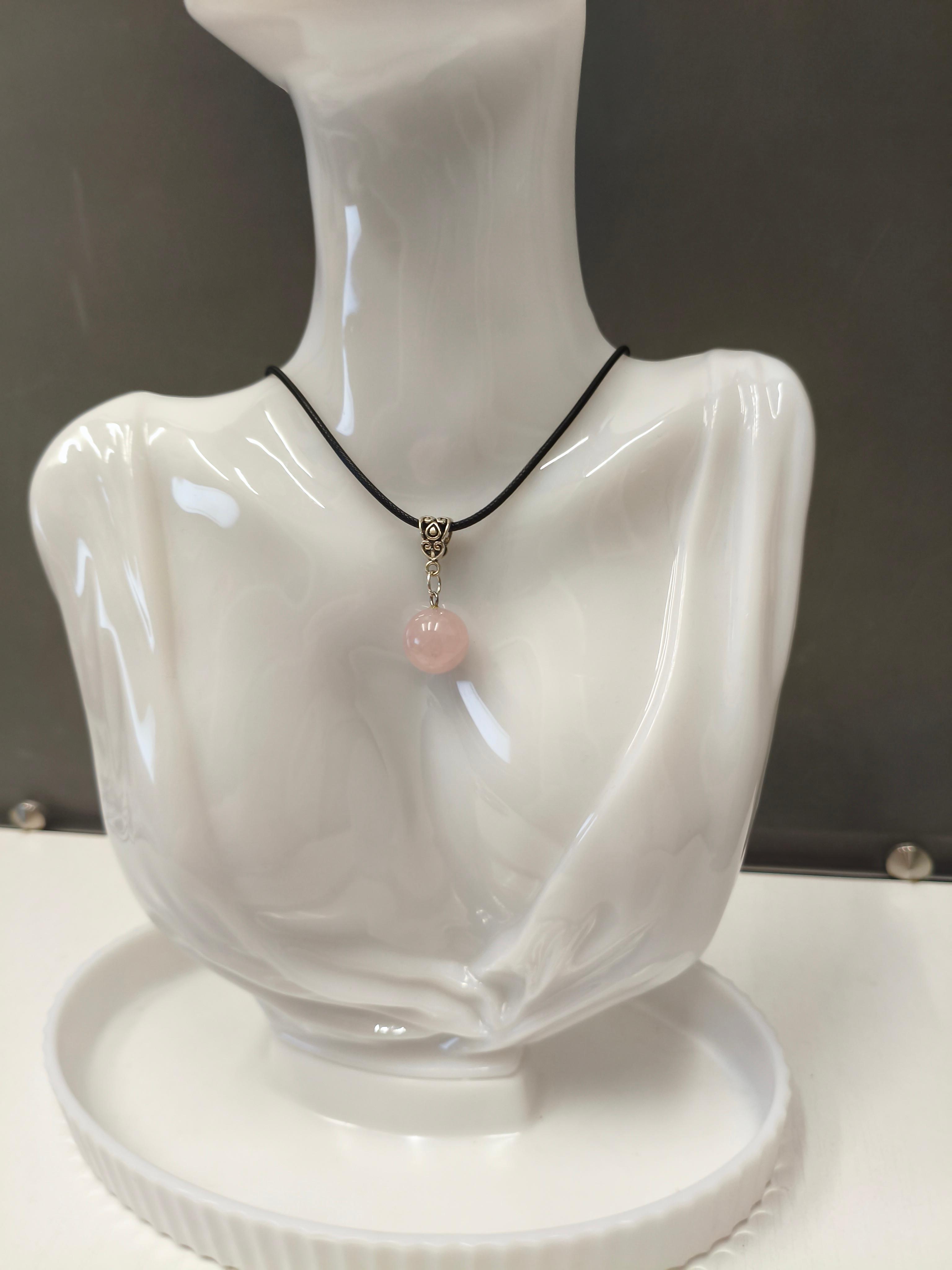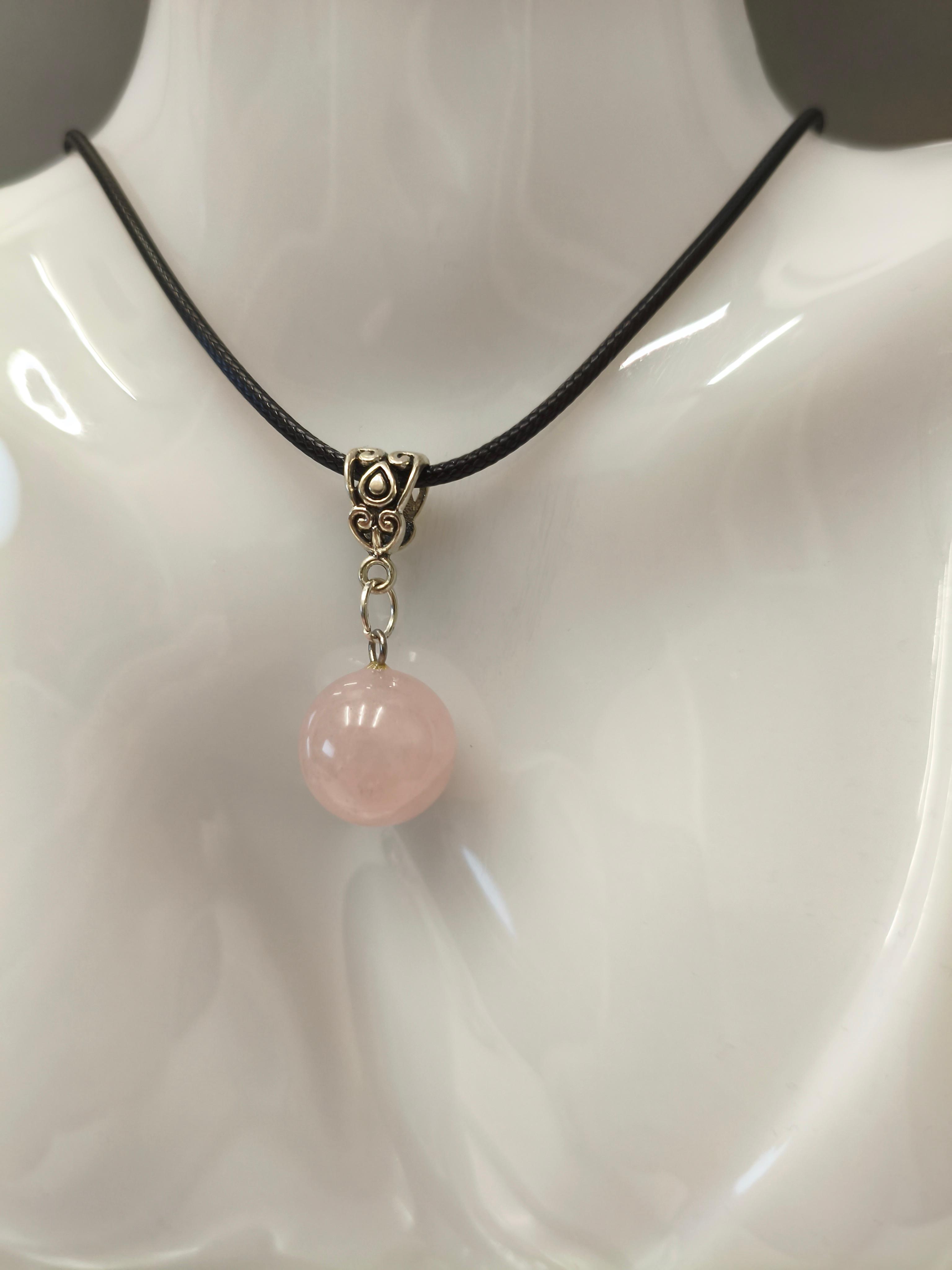 Колье / подвеска: Розовый кварц ф 14 мм + вощеный черный шнур /фурнитура юв. Сплав цвет серебро. Длина шнура 43,5-49 см / длина подвески 30 мм. Подвеска съемная. #значение ✅Розовый кварц: любовь, нежность, исцеление сердечных ран, привлечение партнёрства, умиротворение.