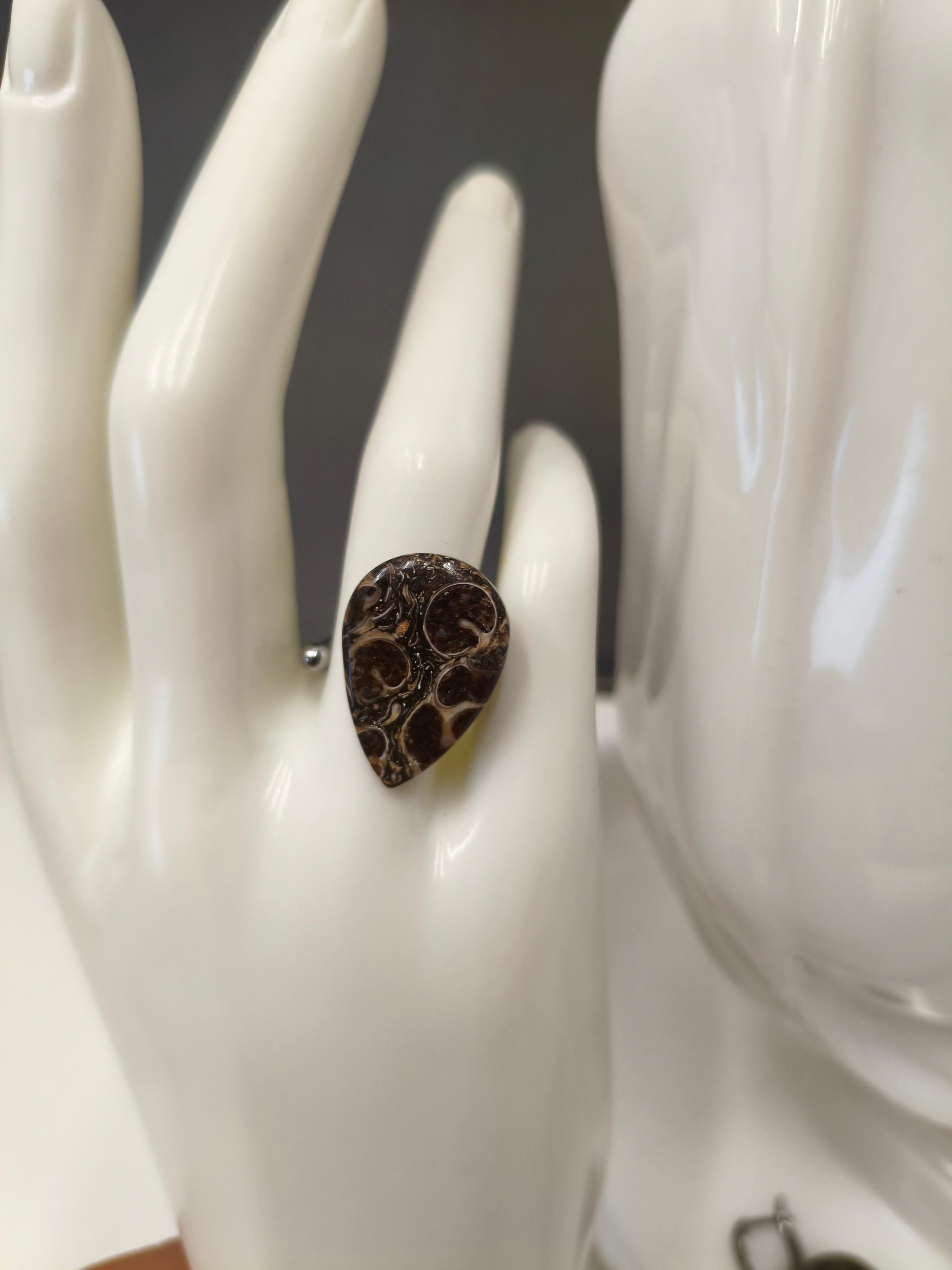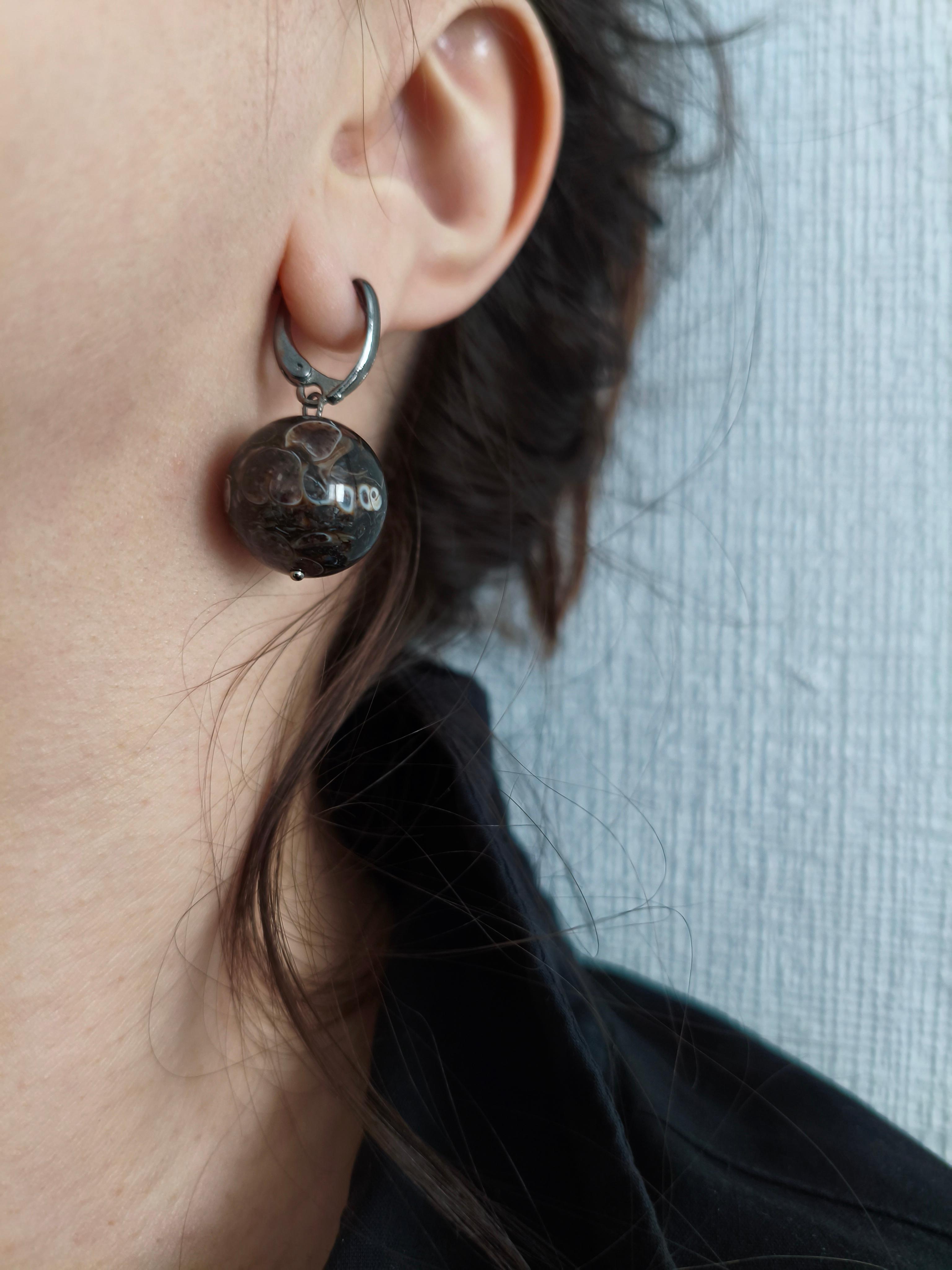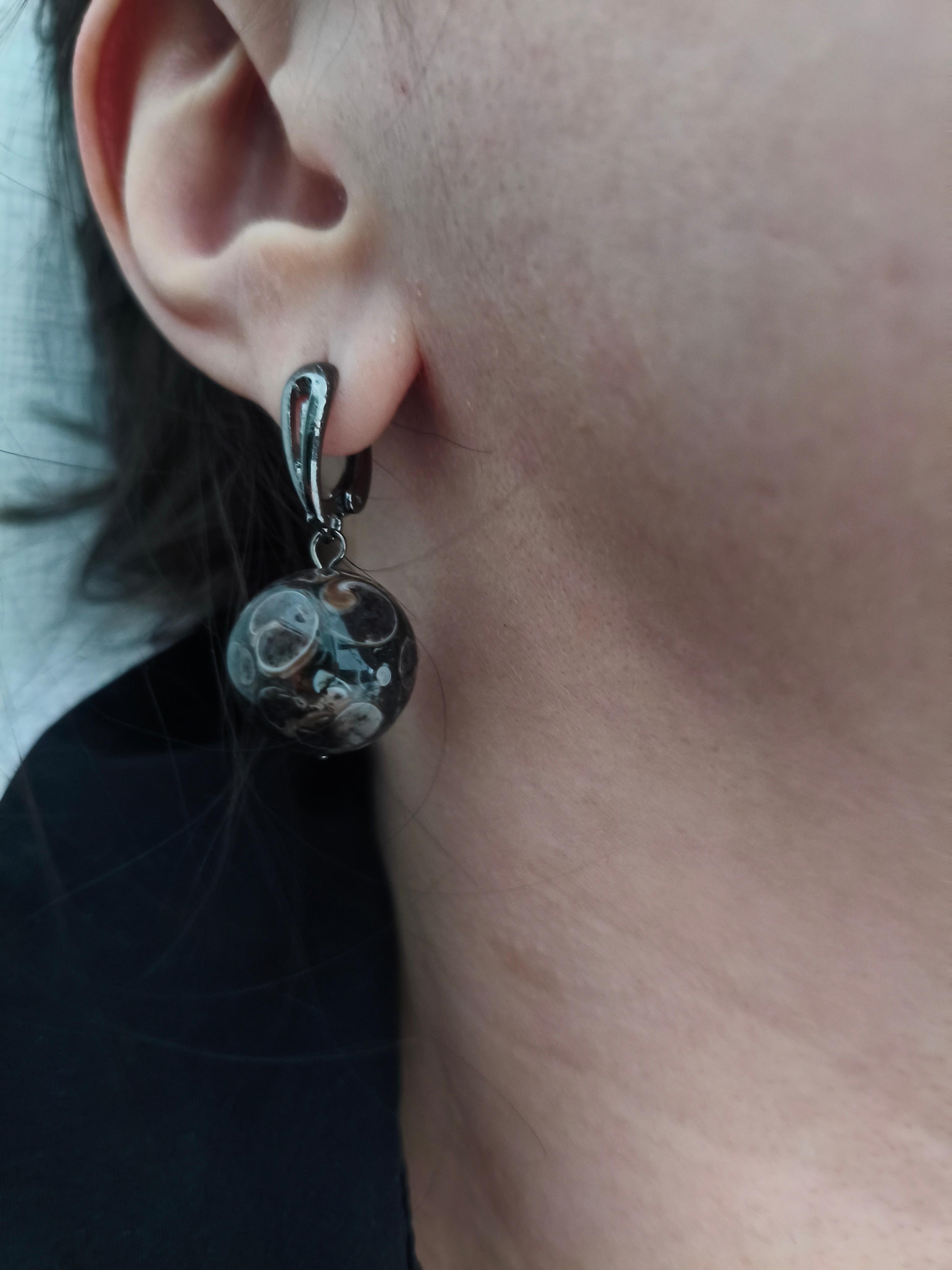 Серьги и кольцо «Тортилла» ✅Серьги: Турителла (Черепаховый агат) ф 16 мм/ фурнитура гипоаллергенное родиевое покрытие черный цвет. Длина от швензы 20 мм. ‼️БРОНЬ‼️ #значение 🔺Турителла (черепаховый агат): помогает обрести внутреннюю гармонию, защититься от негативных воздействий и усилить связь с энергией прошлого благодаря своим ископаемым включениям. Редкое ювелирно-поделочное ископаемое (пресноводные улитки рода Elimia tenera – эпоха эоцена) Грин-Ривер, штат Вайоминг (США).