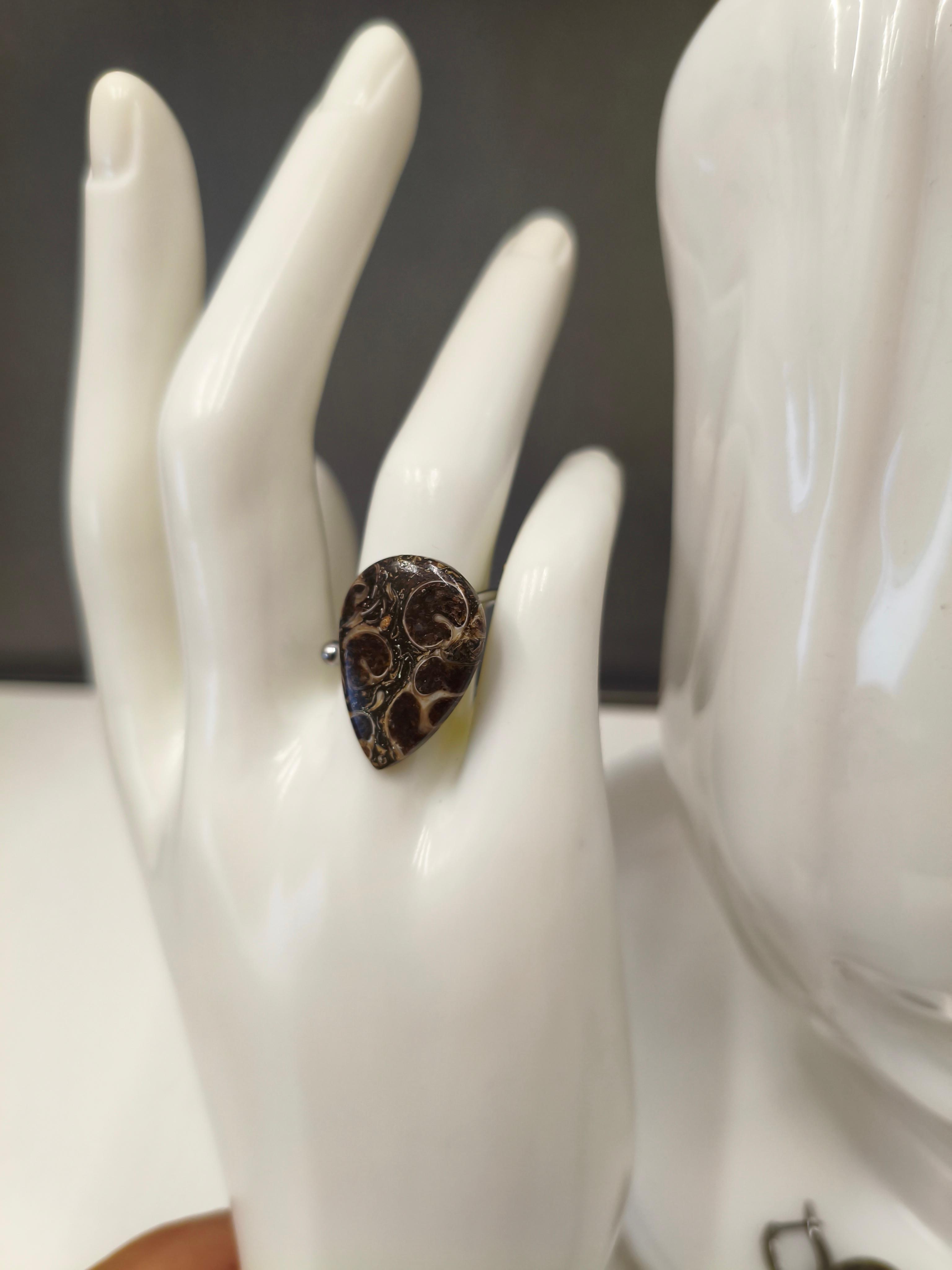 ✅Кольцо: Турителла (Черепаховый агат) 23*15*4 мм/безразмерное, нерж. сталь – не темнеет, можно купаться. Подходит в комплект с серьгами "Тортилла" #значение 🔺Турителла (черепаховый агат): помогает обрести внутреннюю гармонию, защититься от негативных воздействий и усилить связь с энергией прошлого благодаря своим ископаемым включениям. Редкое ювелирно-поделочное ископаемое (пресноводные улитки рода Elimia tenera – эпоха эоцена) Грин-Ривер, штат Вайоминг (США).