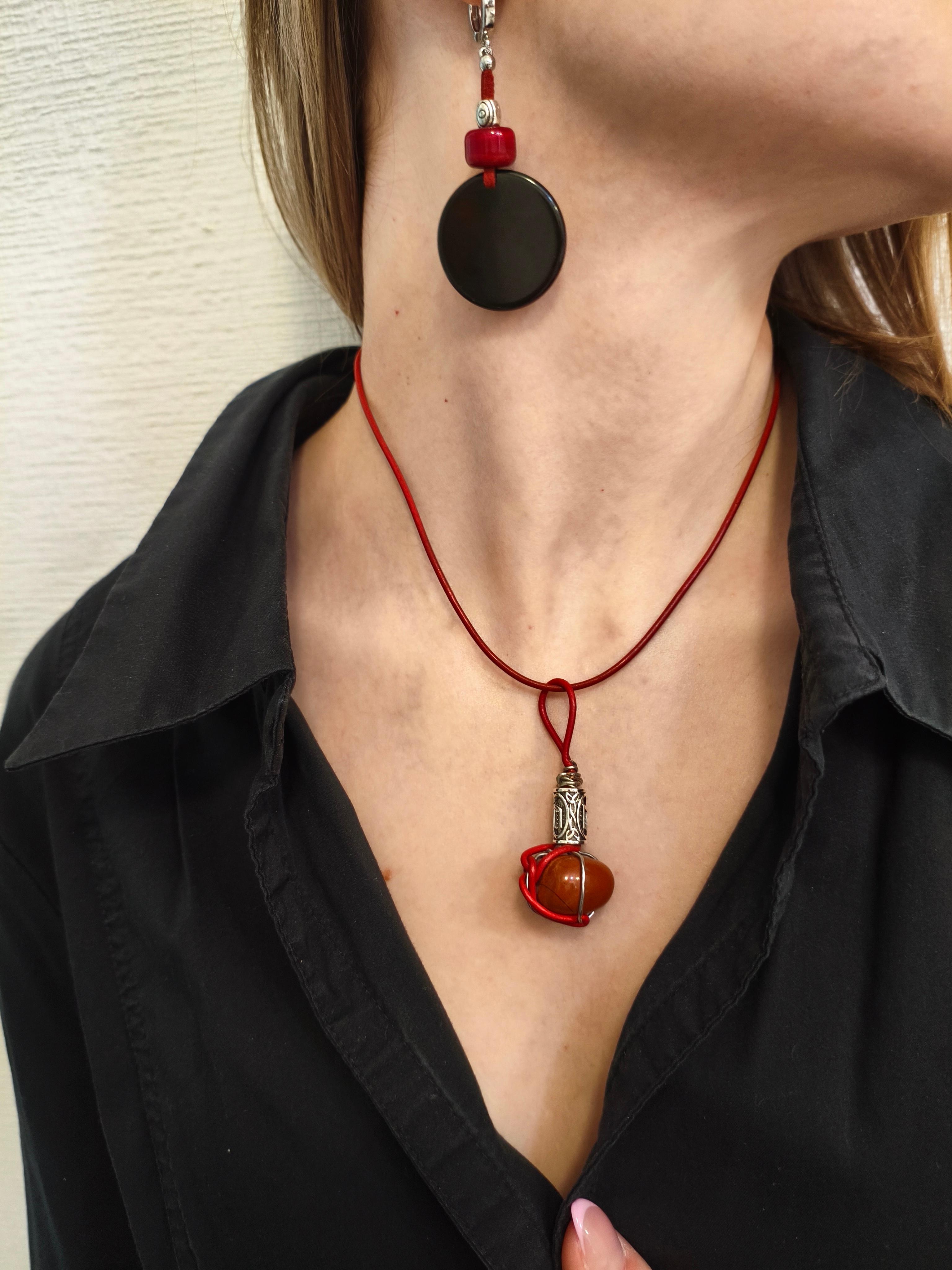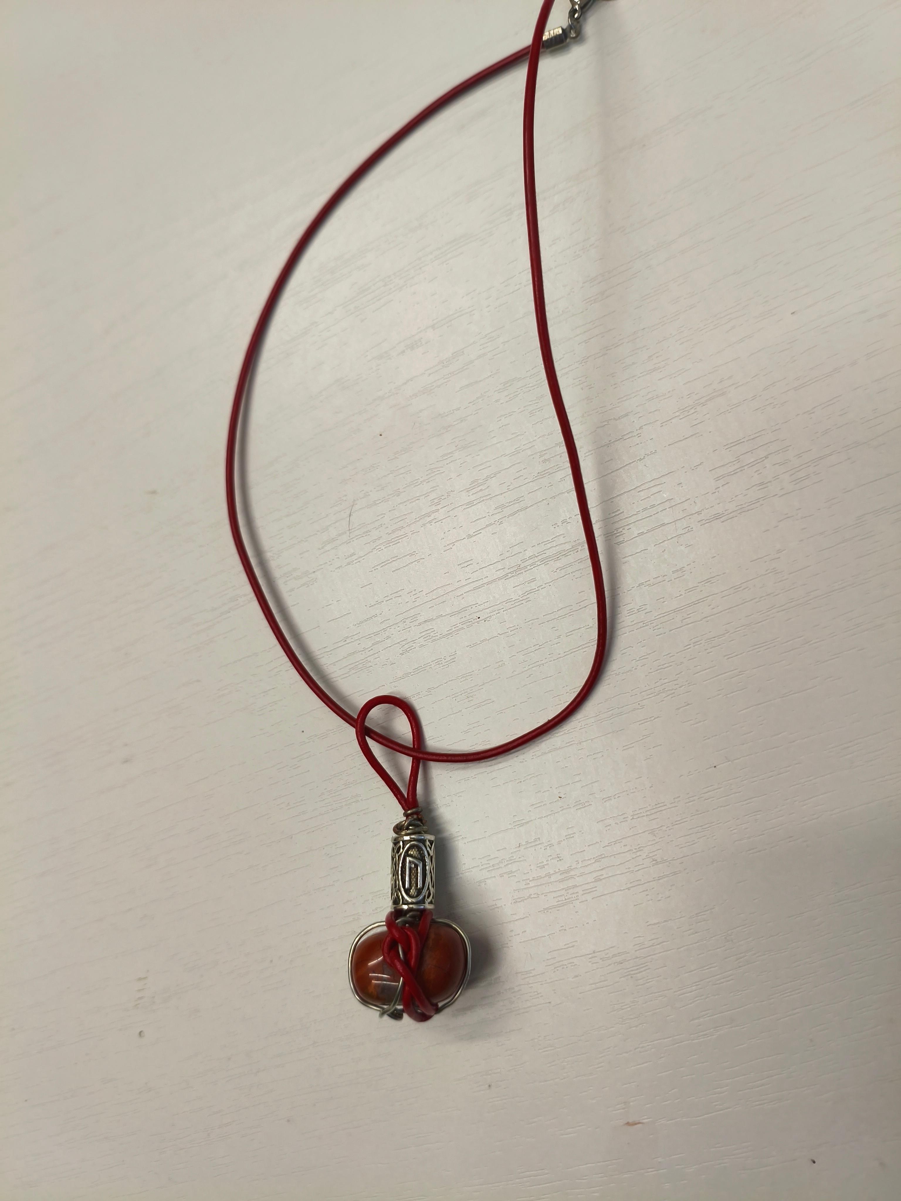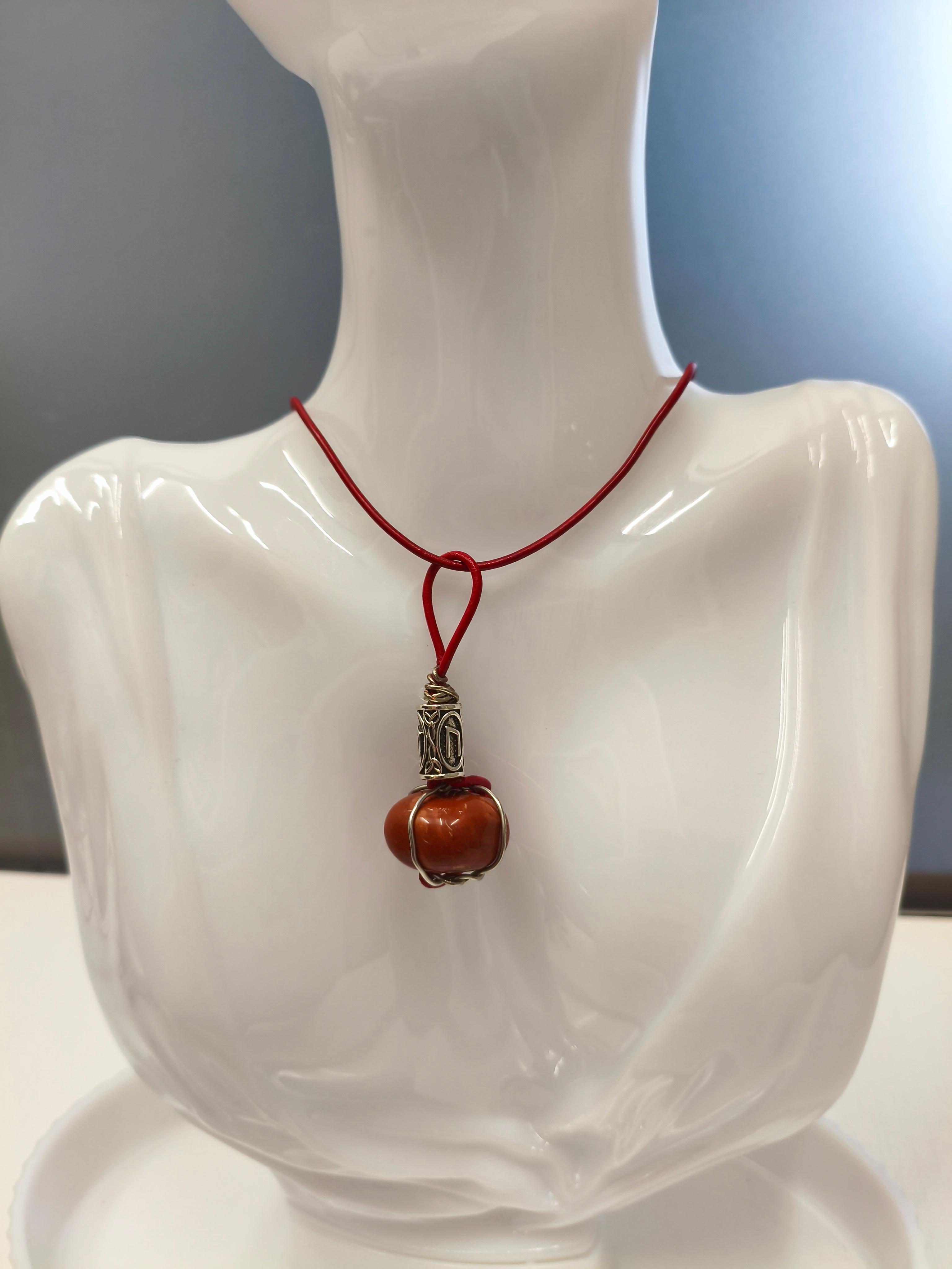 Амулет «Тыква» Красная яшма 20*20*13 мм в оплетке медной проволокой с покрытием юв. Сплавом цвет антчное серебро + руна Уруз (ᚢ) + шнур красная кожа 2 мм. Длина подвески 55 мм, длина шнура 40-45,5 см. 🔺Красная яшма: камень жизненной энергии, выносливости, заземления; укрепляет физическое тело, даёт стойкость. 🔺Уруз (ᚢ): руна силы, трансформации, начала нового; помогает преодолеть инерцию, запустить изменения. ⭕️Синтез: амулет для восстановления сил, старта проектов, преодоления апатии. Подходит для тех, кто нуждается в «толчке» к действию или восстановлении после истощения.
