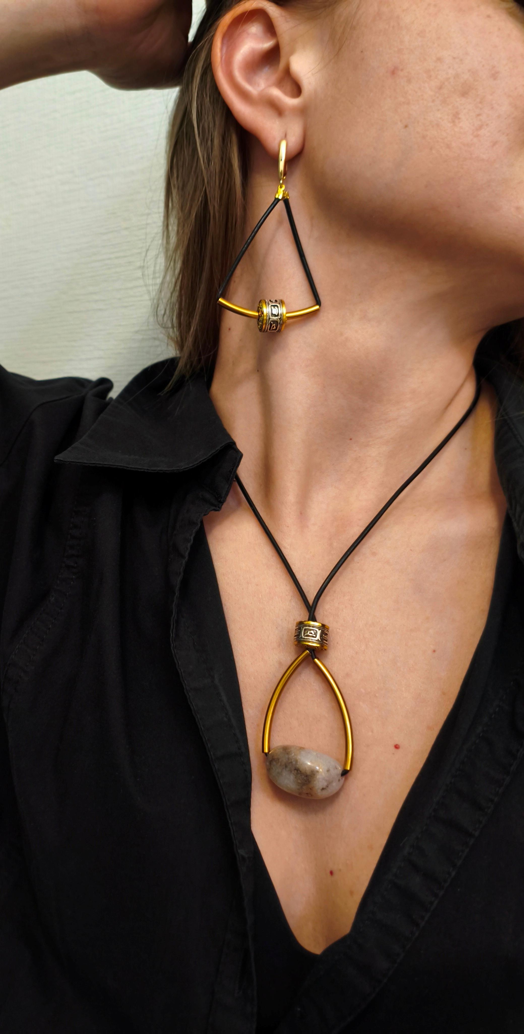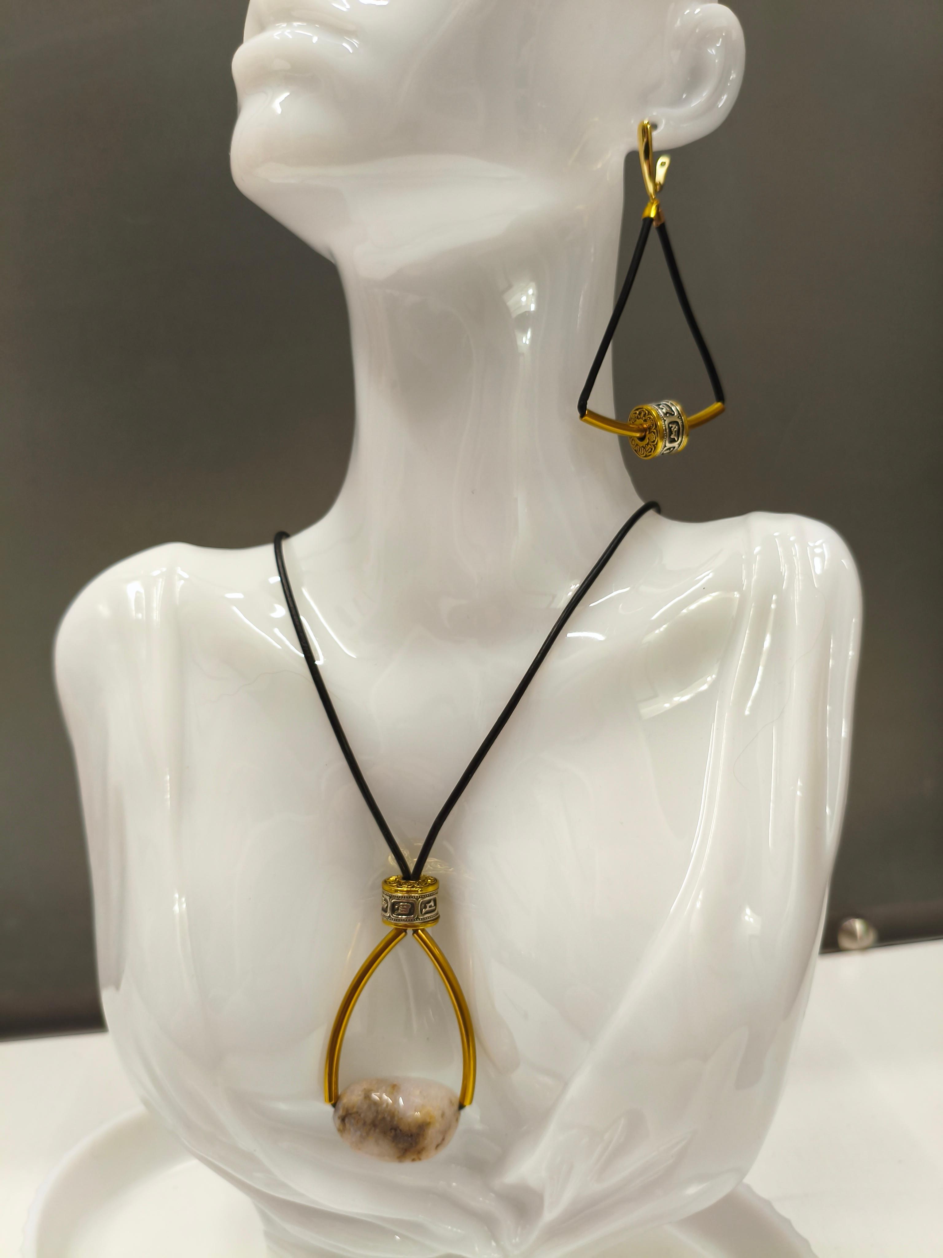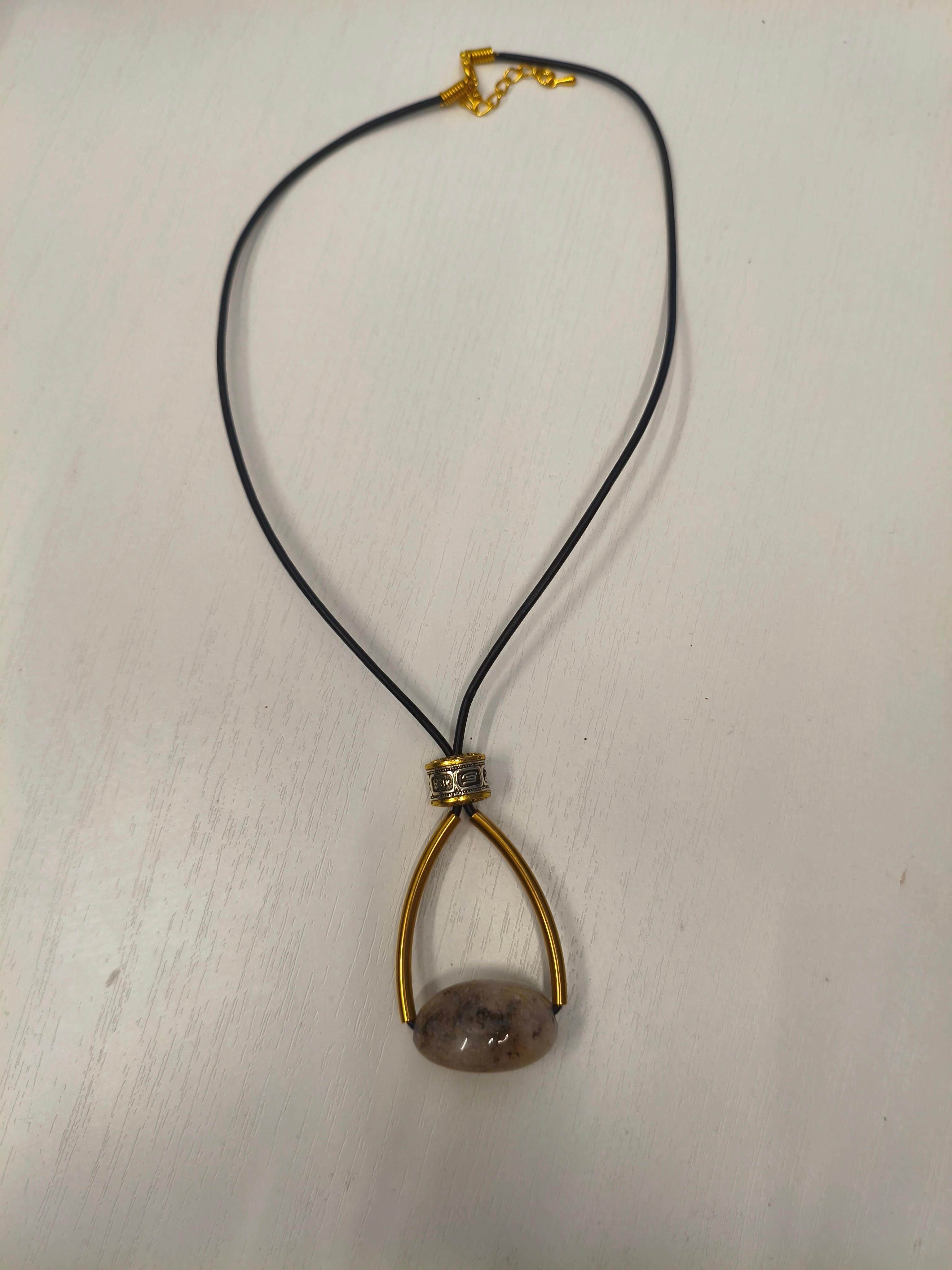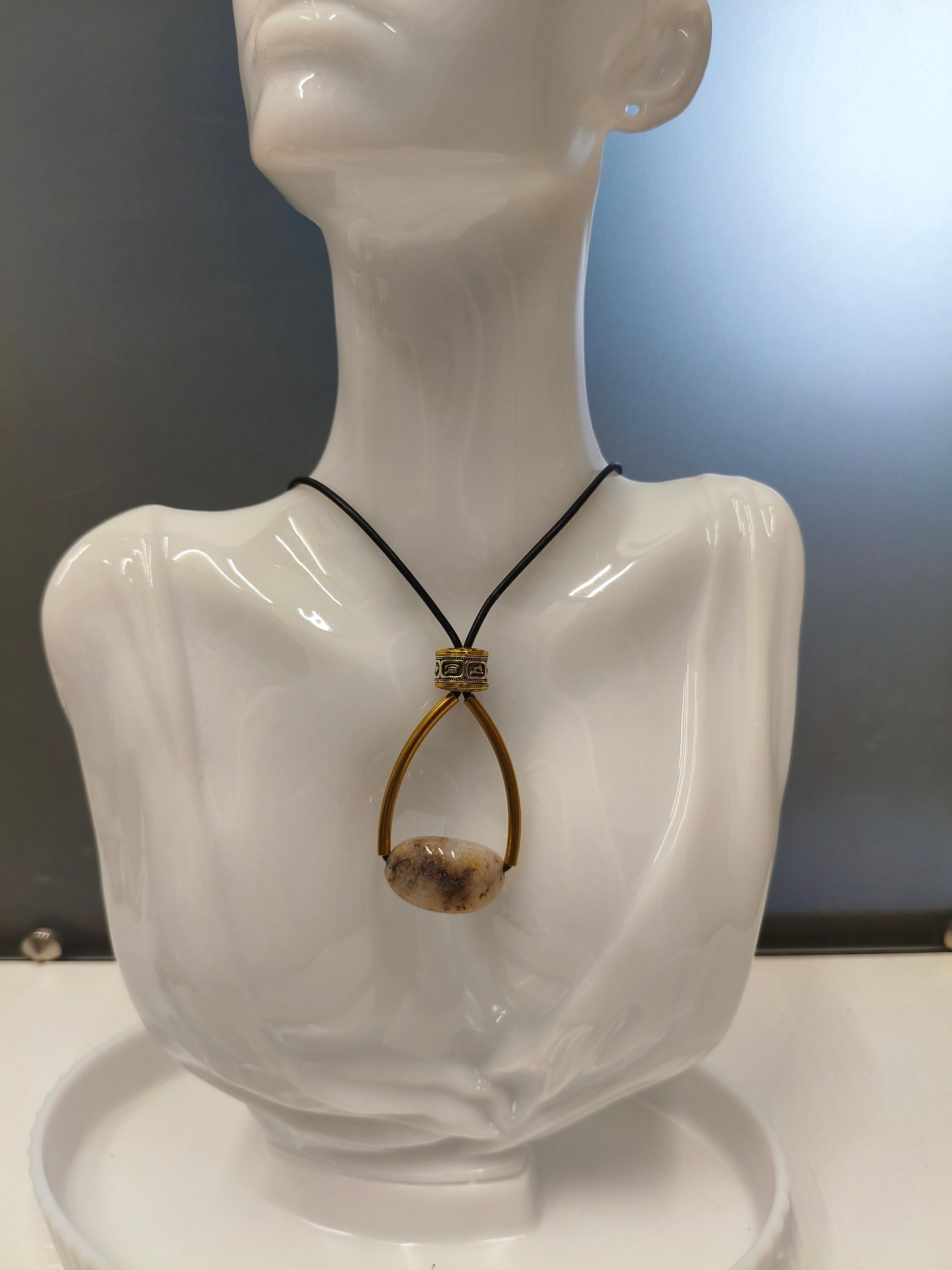 Натуральная яшма (размер подвески 60*30 мм) + латунь + черная кожа /фурнитура цвет золото. Длина 43-48 см. Подходит в комплект с серьгами "Весы"