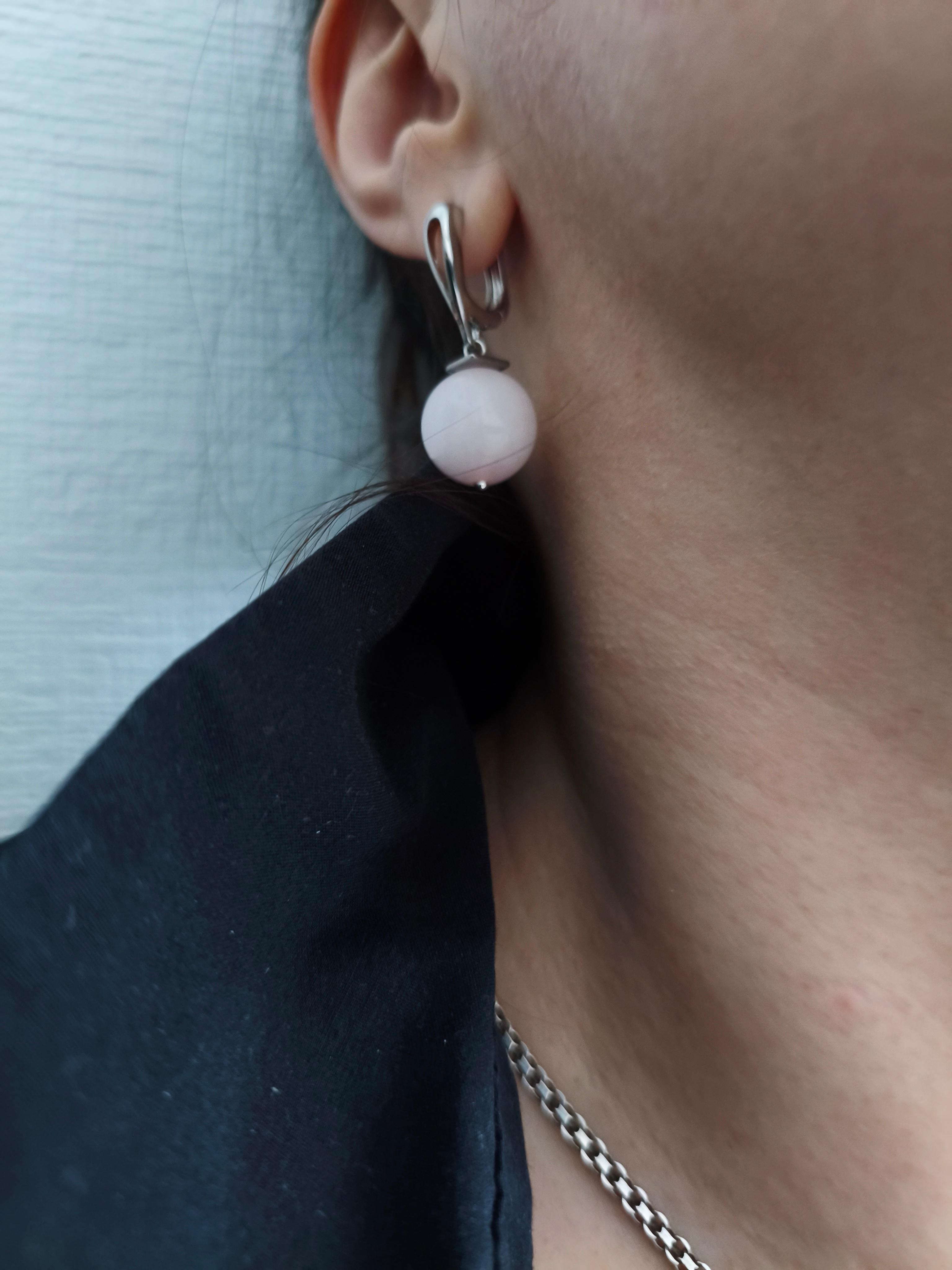 Розовый кварц ф 14 мм/ фурнитура гипоаллергенное родиевое покрытие цвет серебро. Длина от швензы 20 мм. Подходит в комплект с колье "Ягодка" и подвеской "Шарик розовый кварц" 🔺Розовый кварц: любовь, нежность, исцеление сердечных ран, привлечение партнёрства, умиротворение.