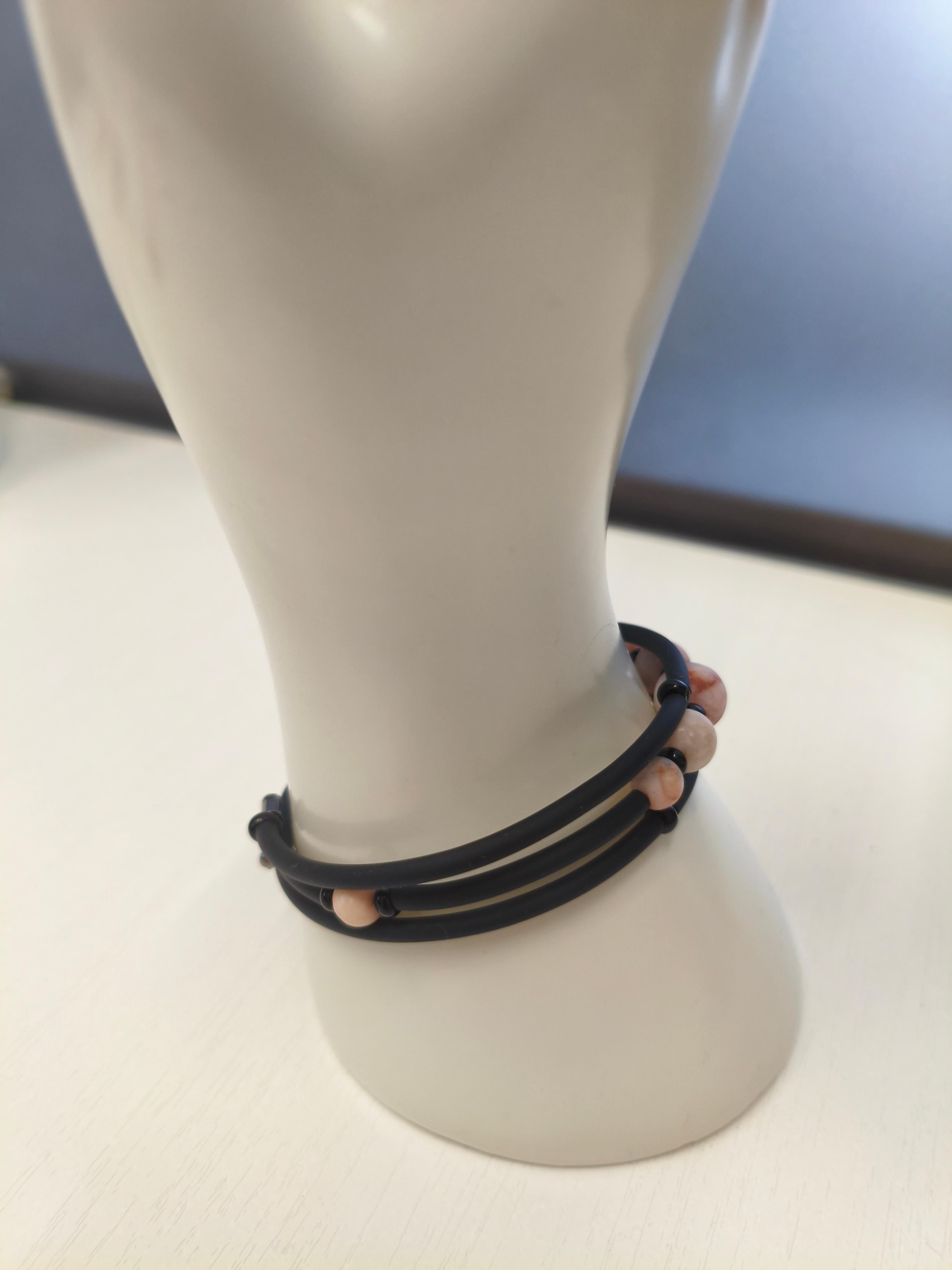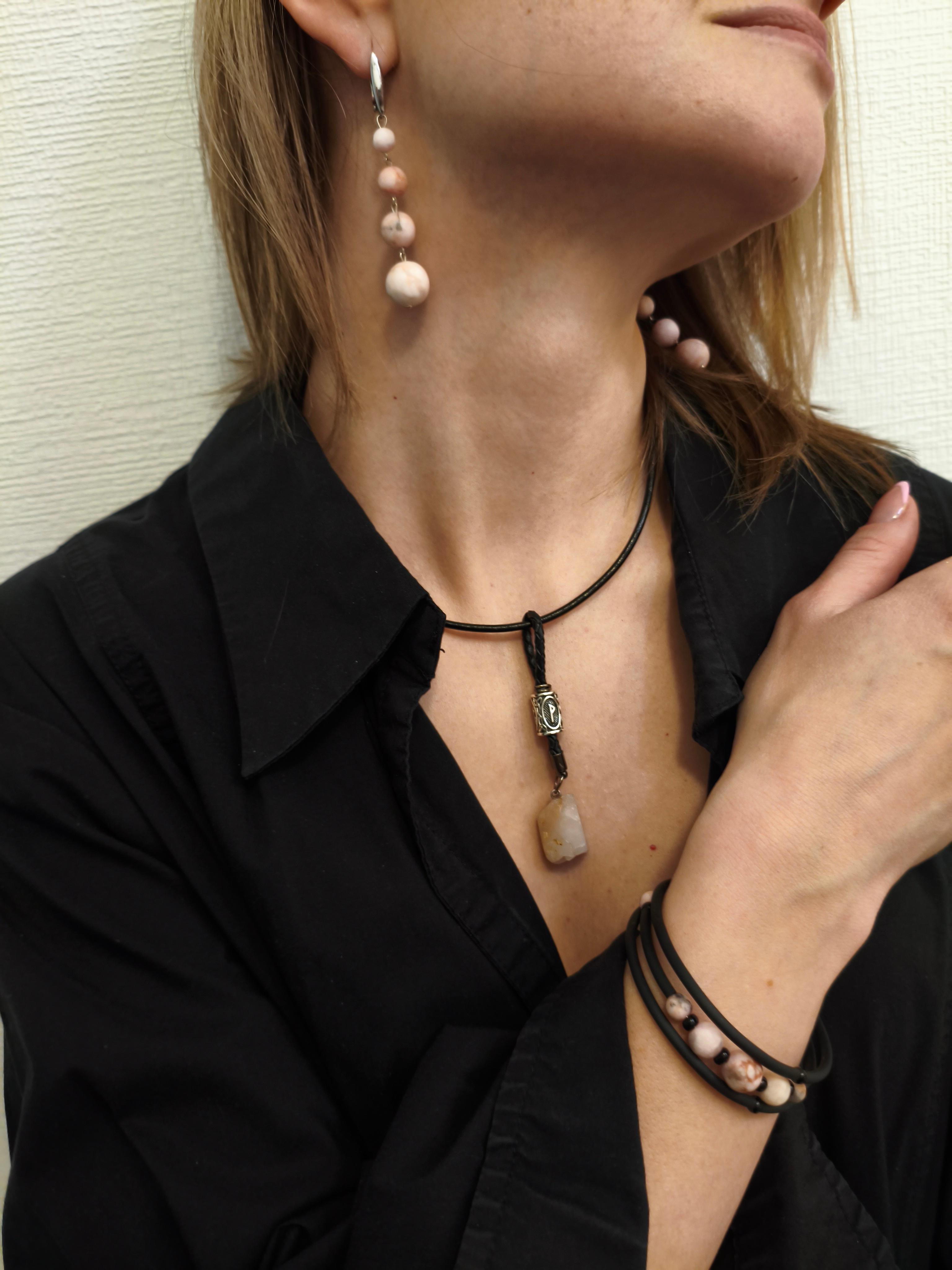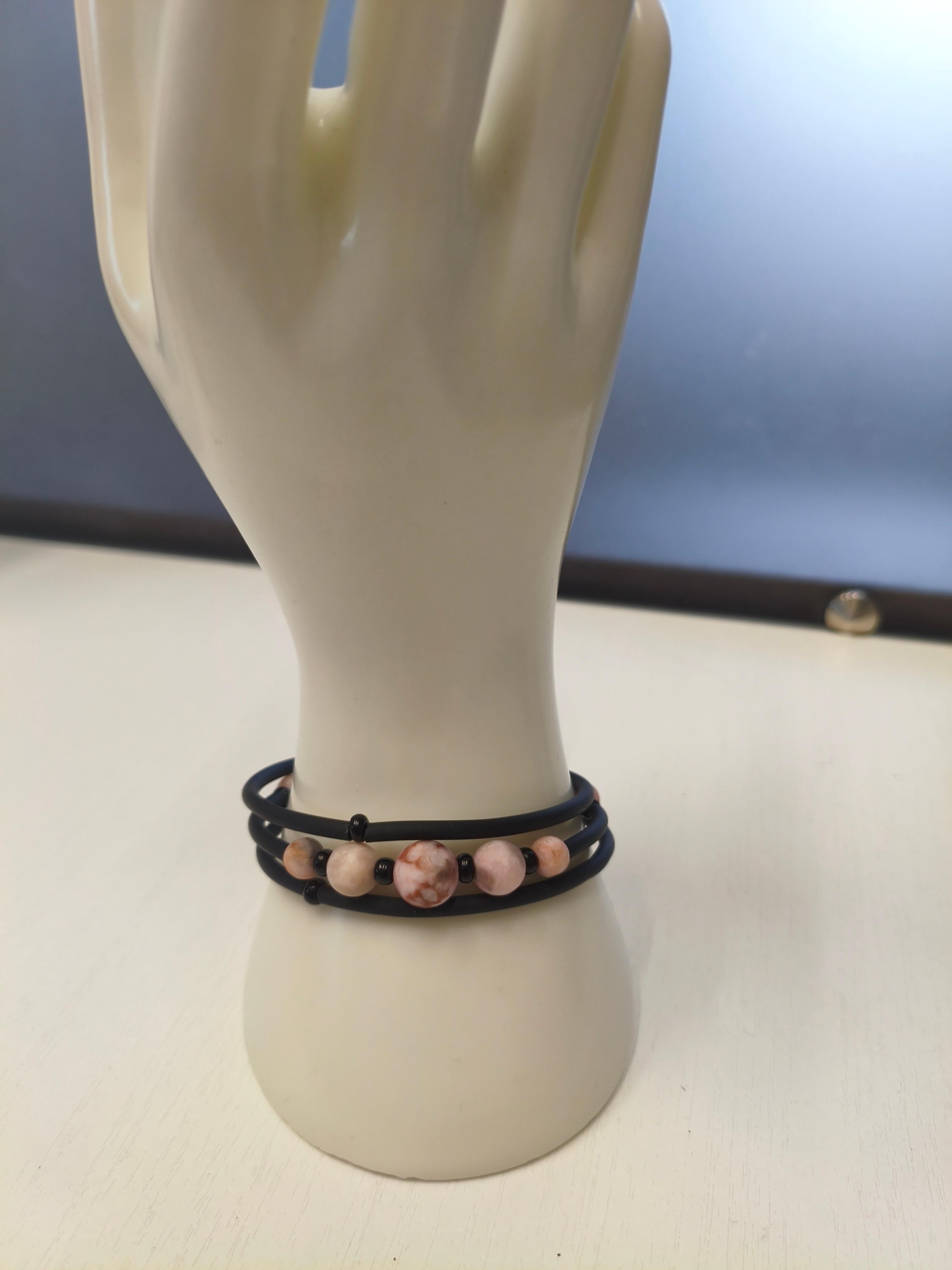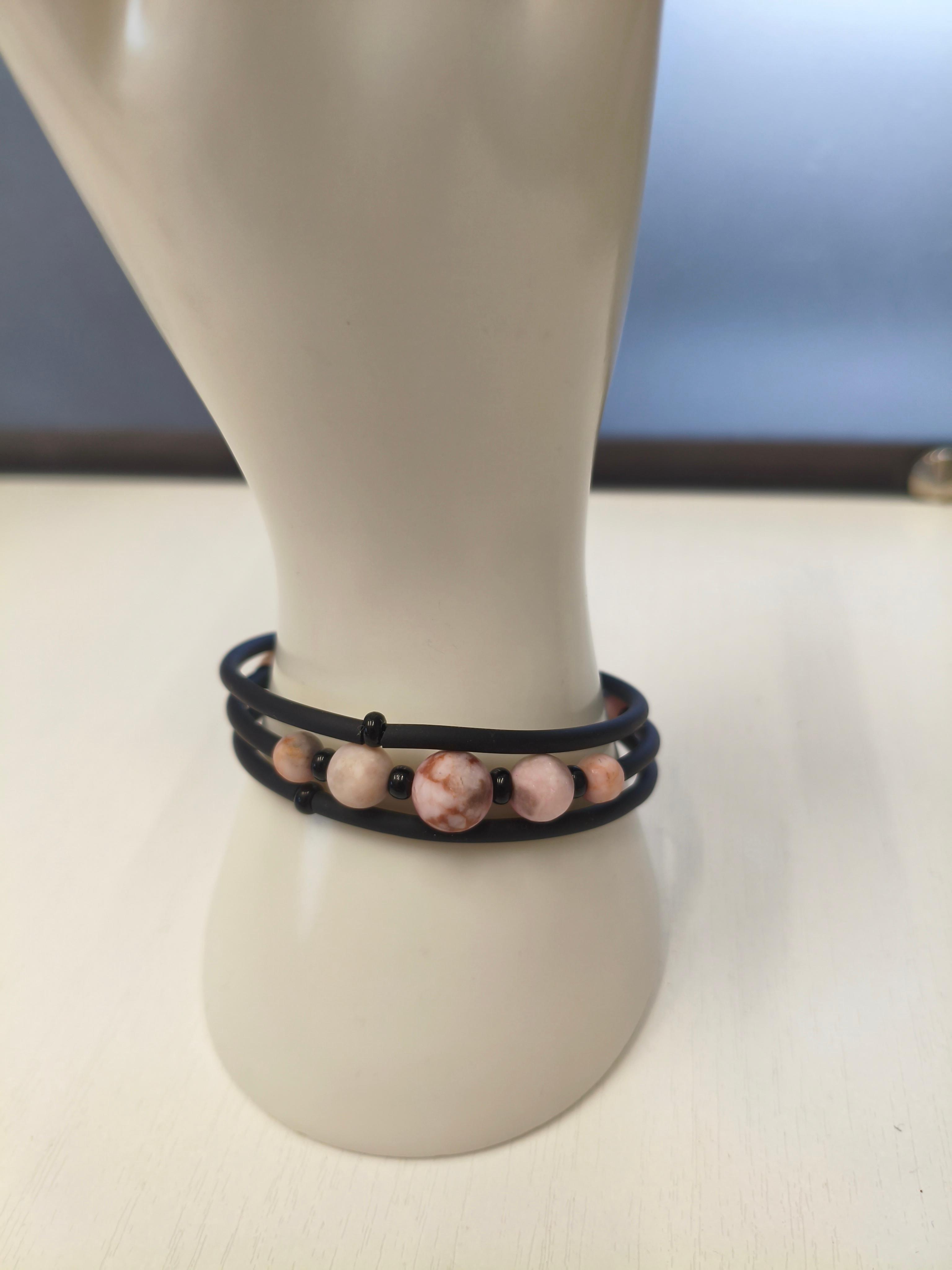 Браслет с памятью Розовая яшма зебра ф 6/8/10/12 мм/фурнитура цвет серебро/черный каучук. ф 60 мм 3 витка. Подходит в комплект с серьгами и колье "Жимолость" и "Пастила" ⭕️Яшма: оберег от сглаза, энергия земли, стойкость, развитие дар убеждения, помощь в достижении целей.