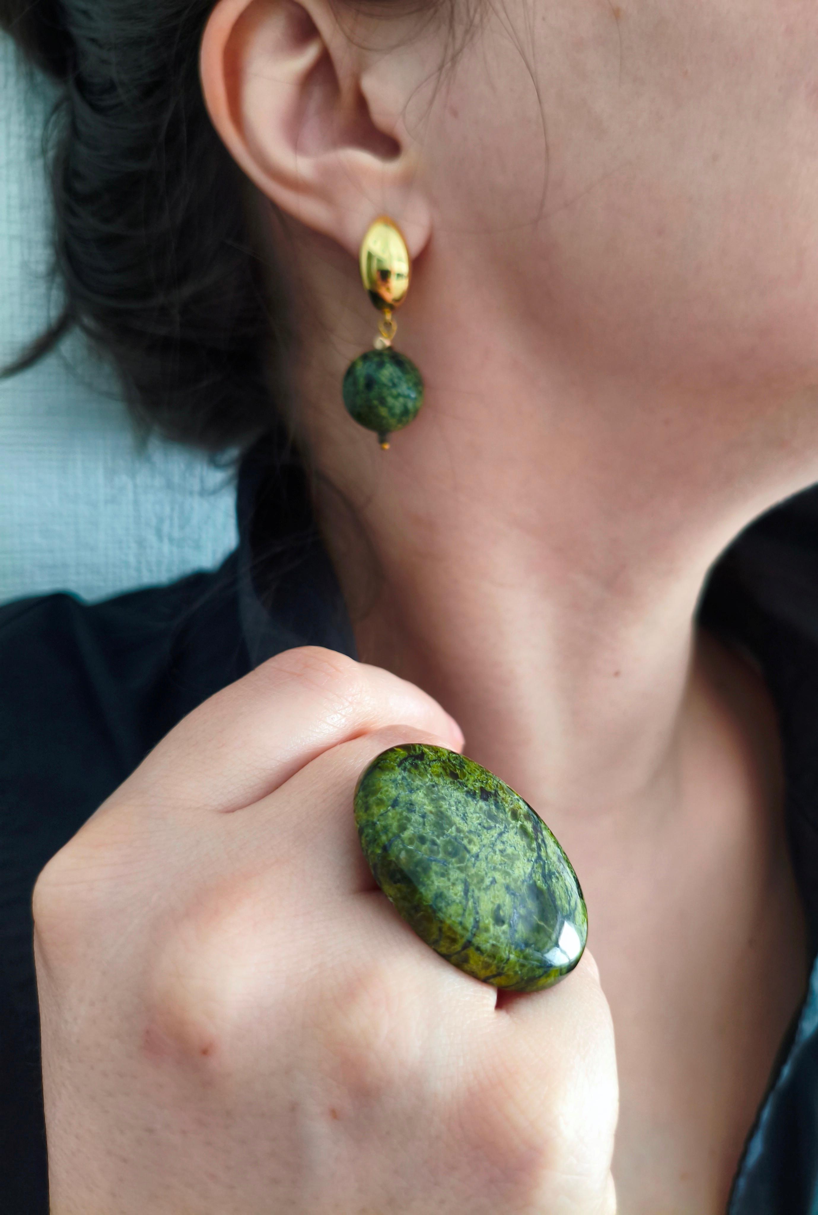 ✅Кольцо: Змеевик 40*30*6,3 мм/безразмерное, нерж. сталь – не темнеет, можно купаться. Подходит в комплект с серьгами "Змеевик" #значение 🔺Змеевик: камень защиты и мудрости, помогает распознавать ложь, преодолевать испытания и усиливает интуицию – при этом его энергия может провоцировать на риск ради обретения жизненного опыта.