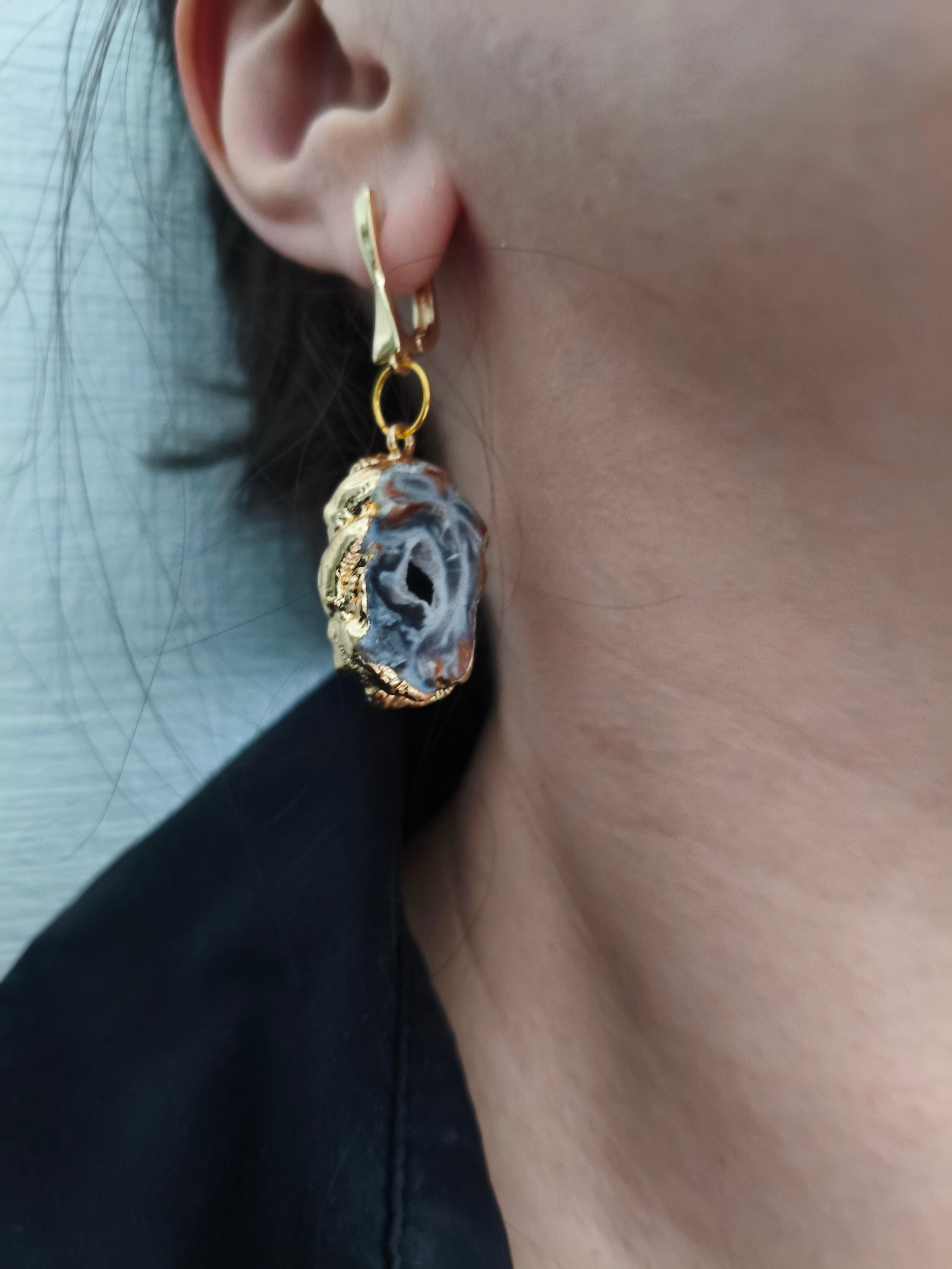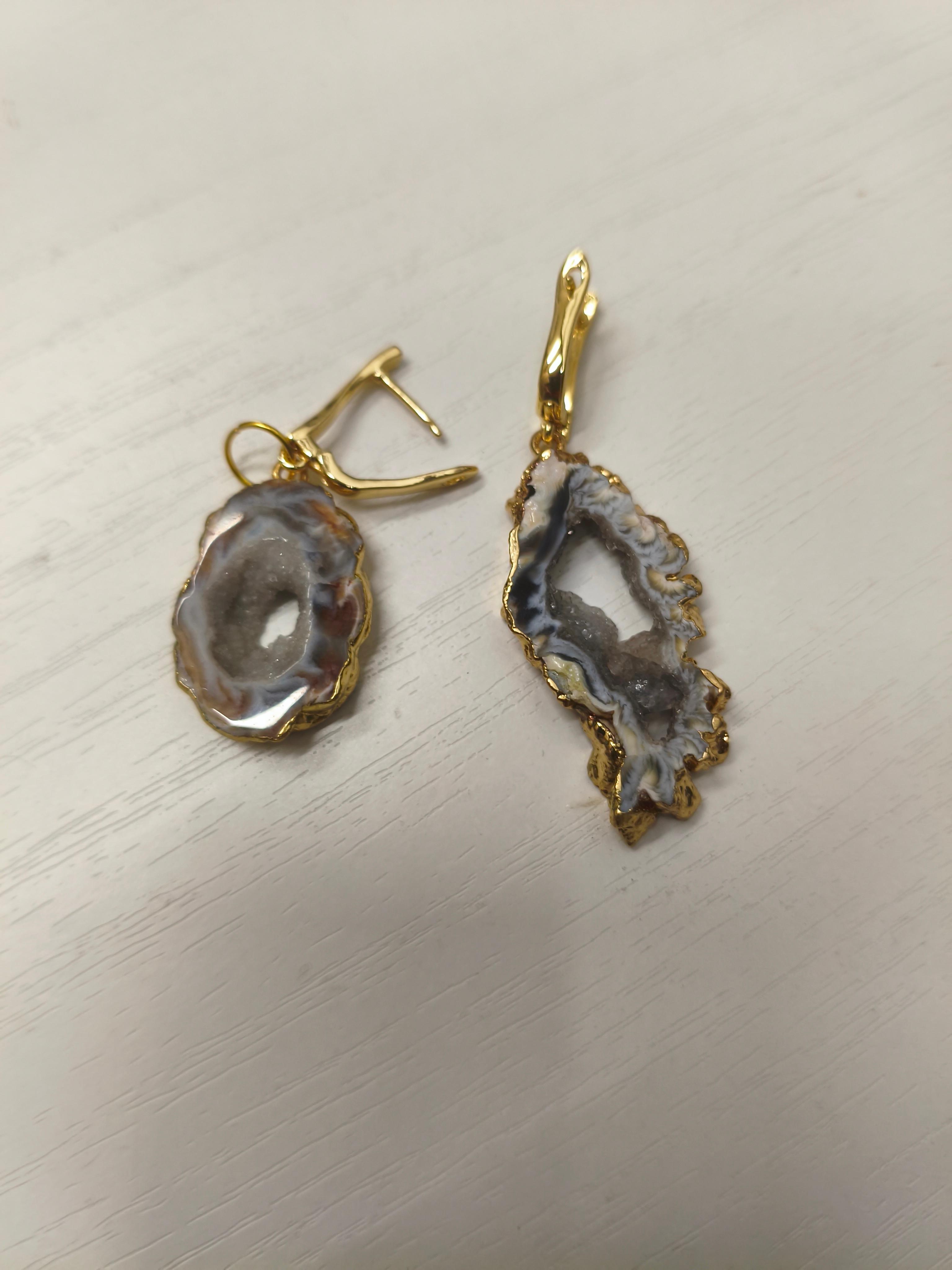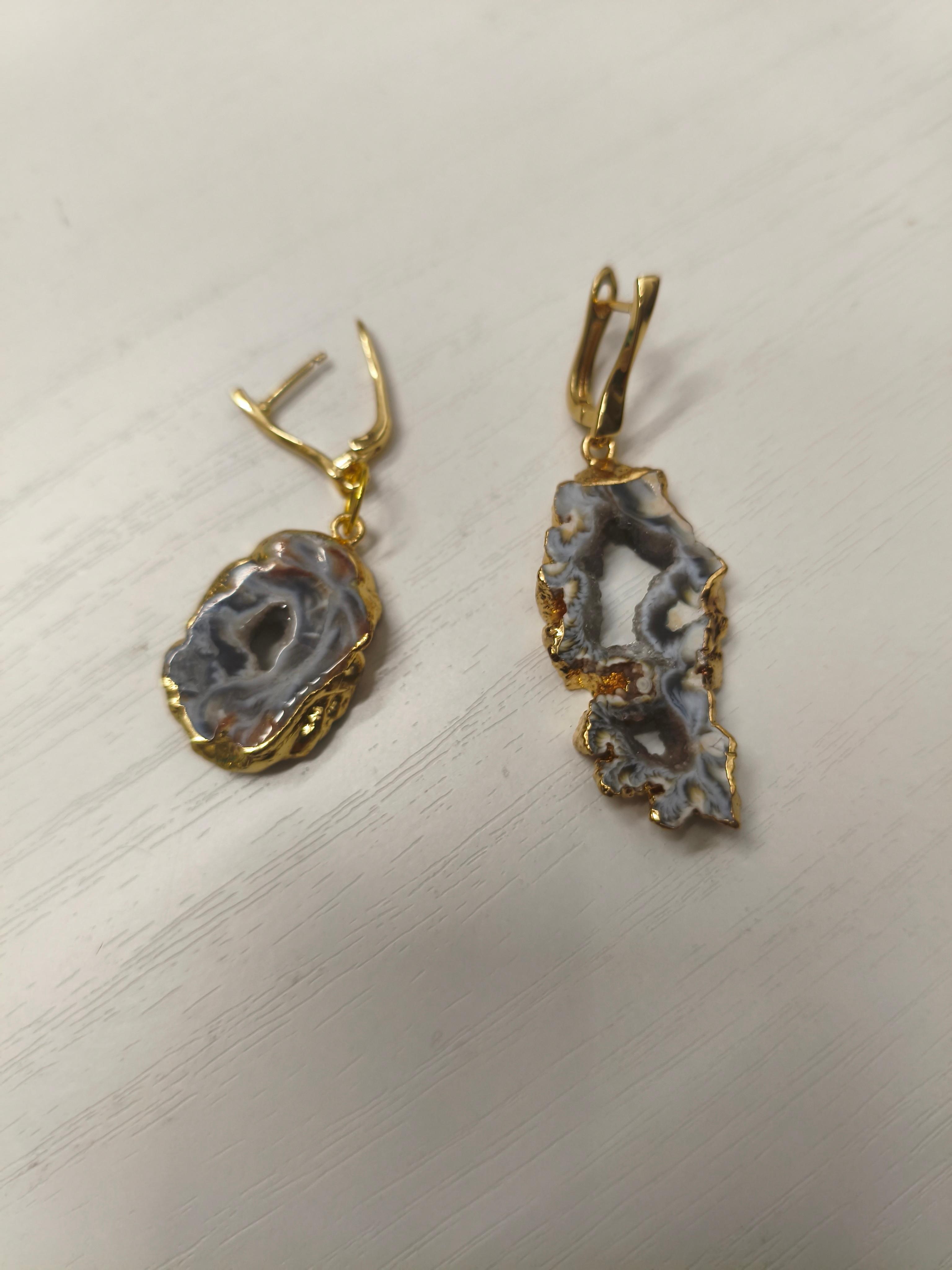 Серьги «Золотая друза» ✅Агат с друзой в золоте ф 26*20*7 мм и 40*20*7 мм/ фурнитура гипоаллергенное родиевое покрытие золото К18. Ассиметричные. Длина от швензы 38 и 43 мм. #значение 🔺Агат с друзой: гармония и единство, поглощает, трансформирует и излучает энергию, способствуя очищению пространства и программированию на достижение конкретных целей.