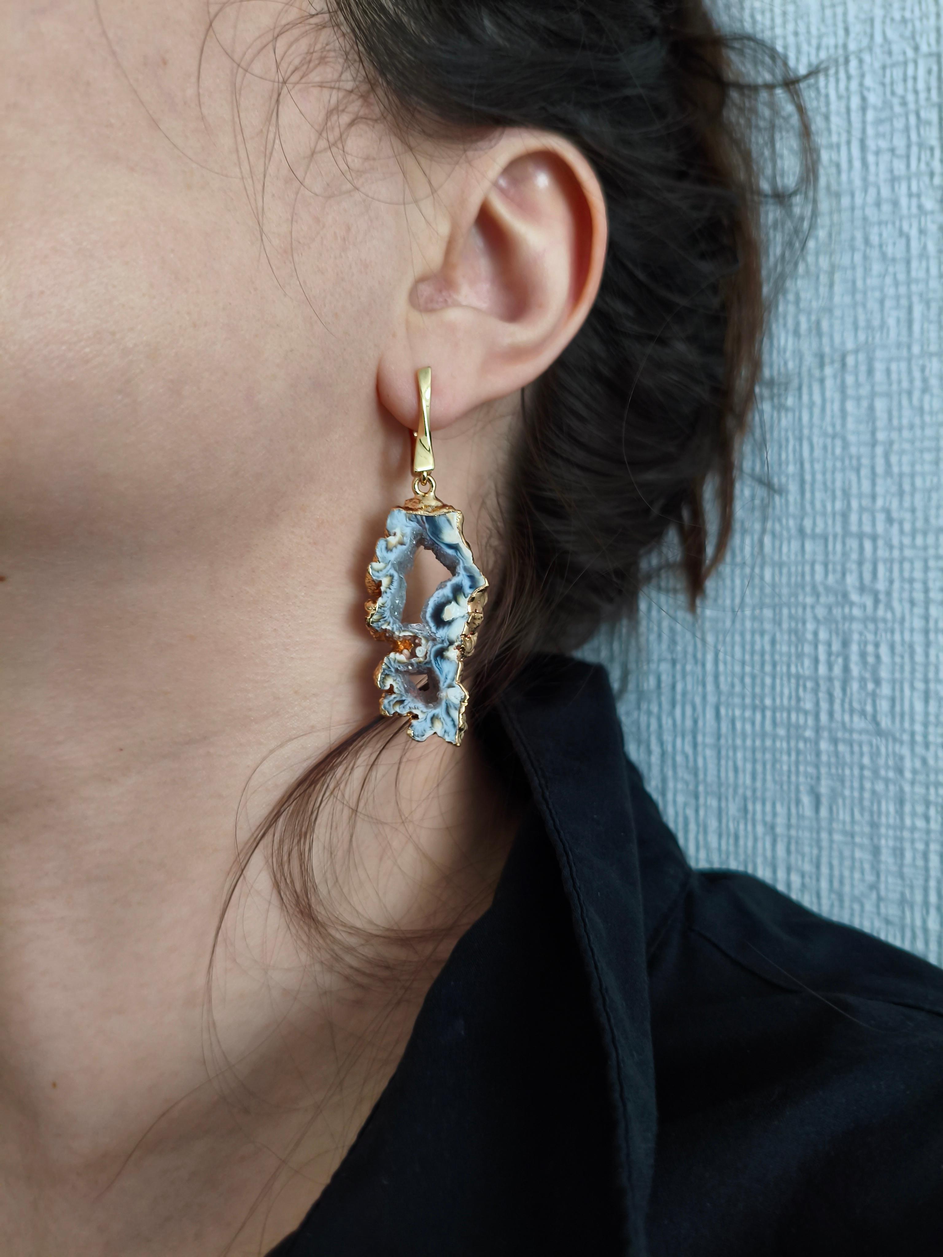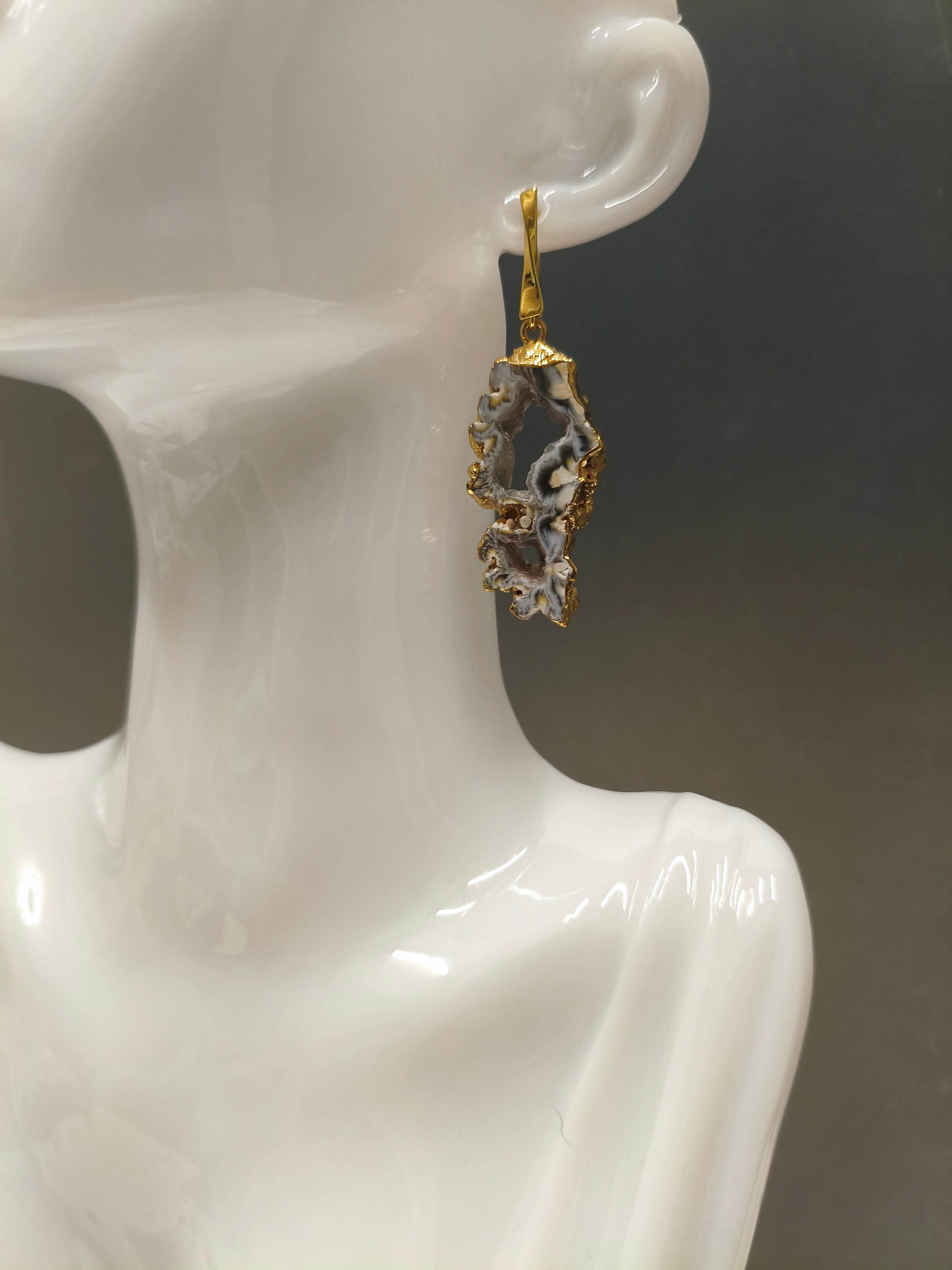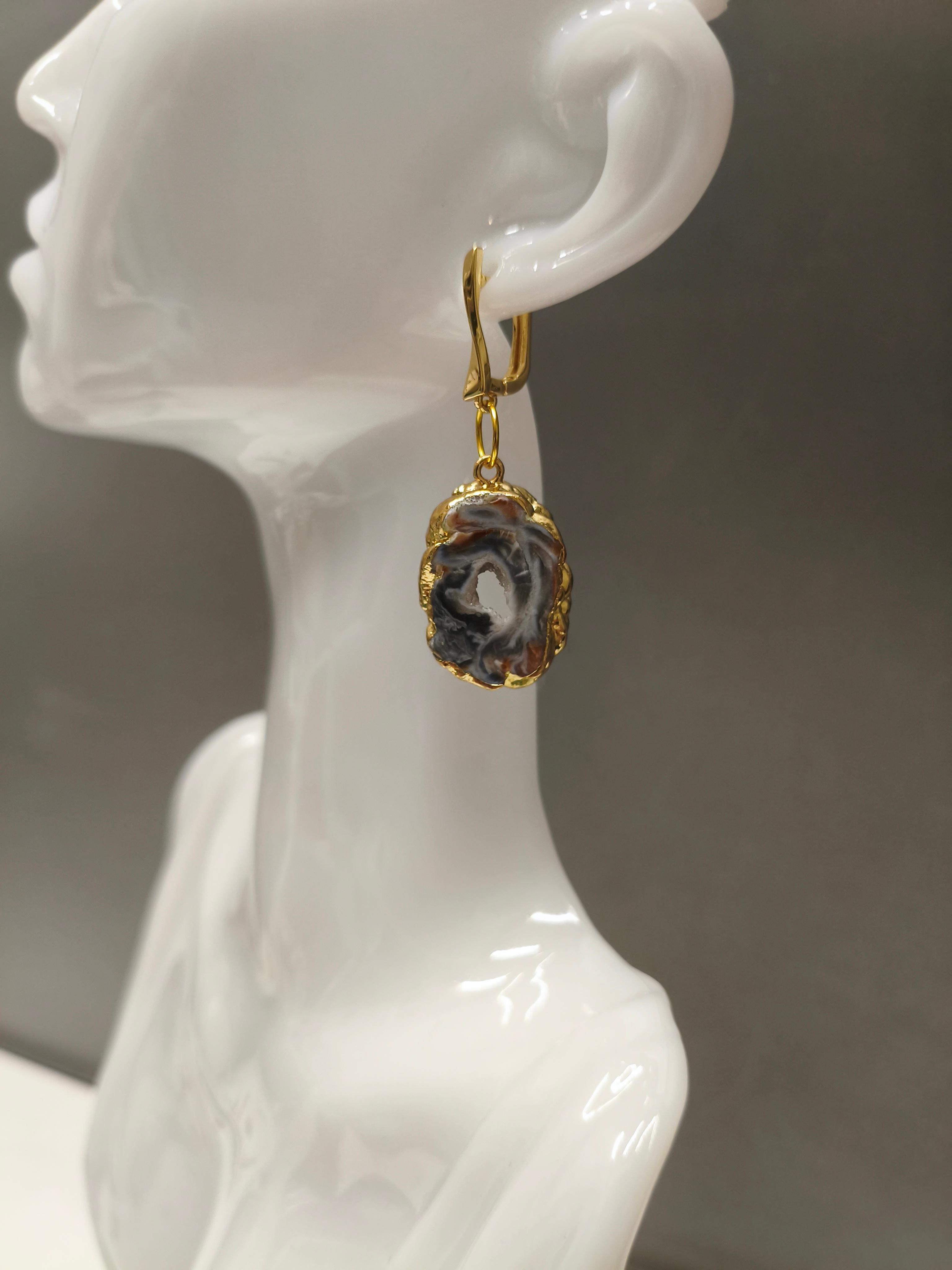 Серьги «Золотая друза» ✅Агат с друзой в золоте ф 26*20*7 мм и 40*20*7 мм/ фурнитура гипоаллергенное родиевое покрытие золото К18. Ассиметричные. Длина от швензы 38 и 43 мм. #значение 🔺Агат с друзой: гармония и единство, поглощает, трансформирует и излучает энергию, способствуя очищению пространства и программированию на достижение конкретных целей.