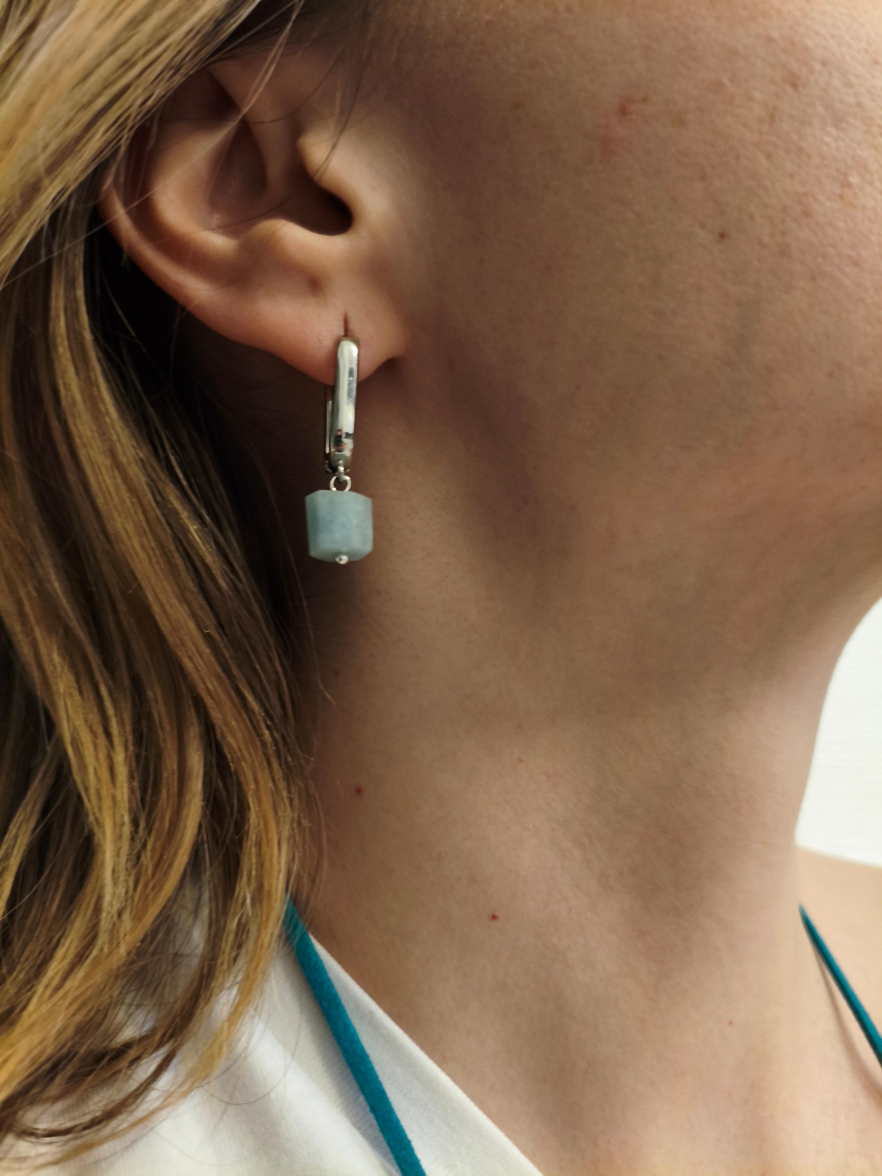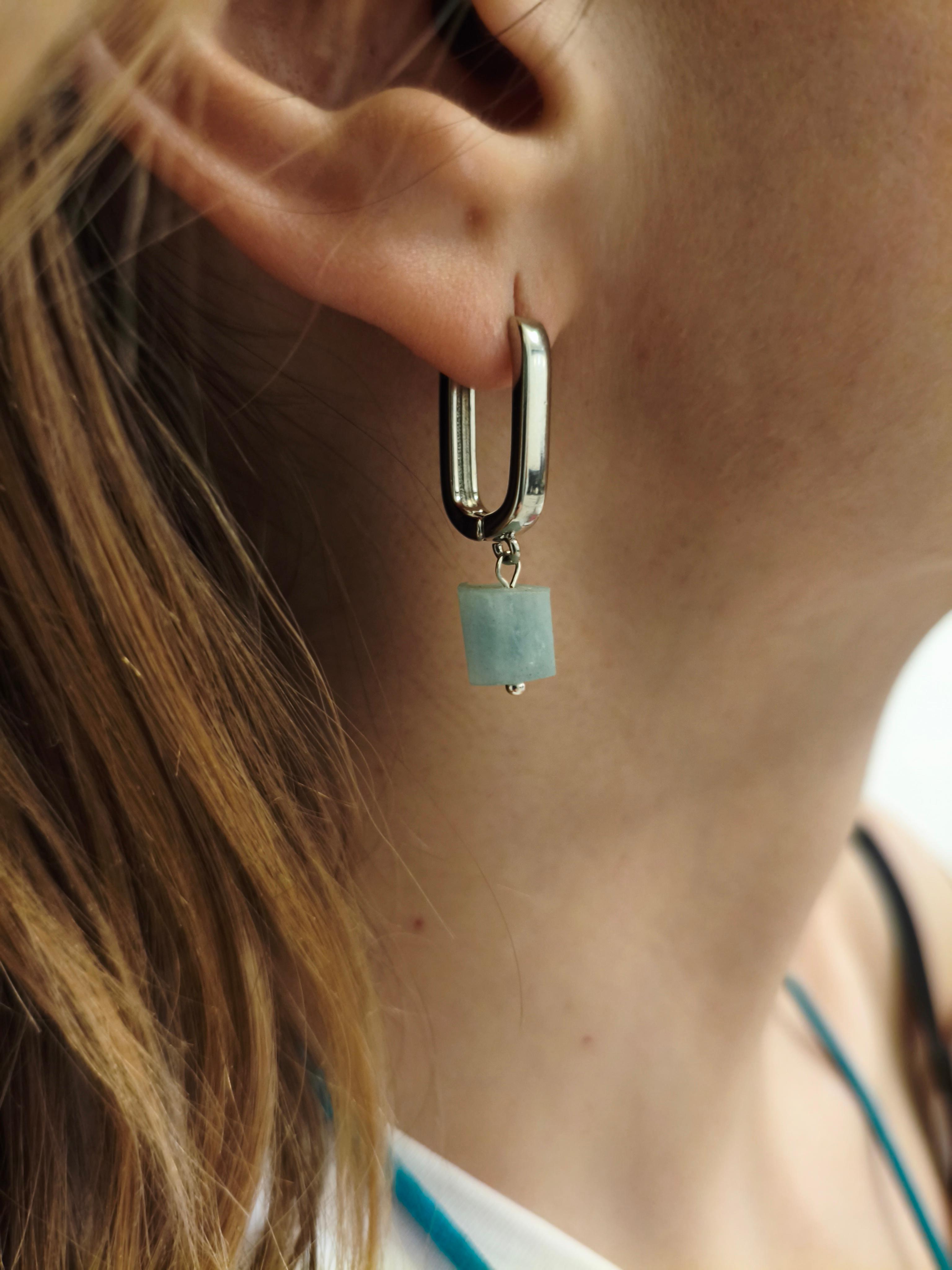 Натуральный аквамарин 12*8 мм на швензах 20 мм с гипоаллергенным родиевым покрытием серебро Сочетается с колье/подвеской "Аква"