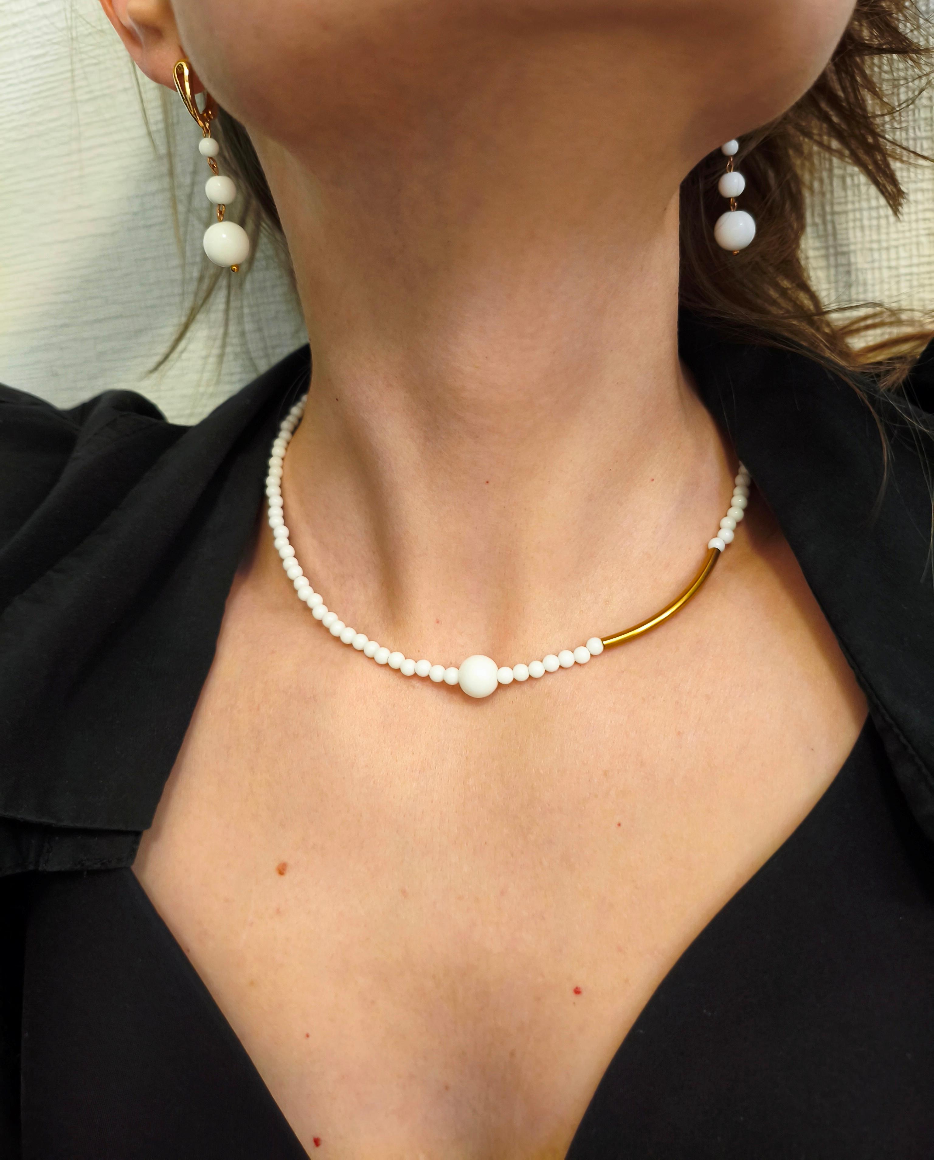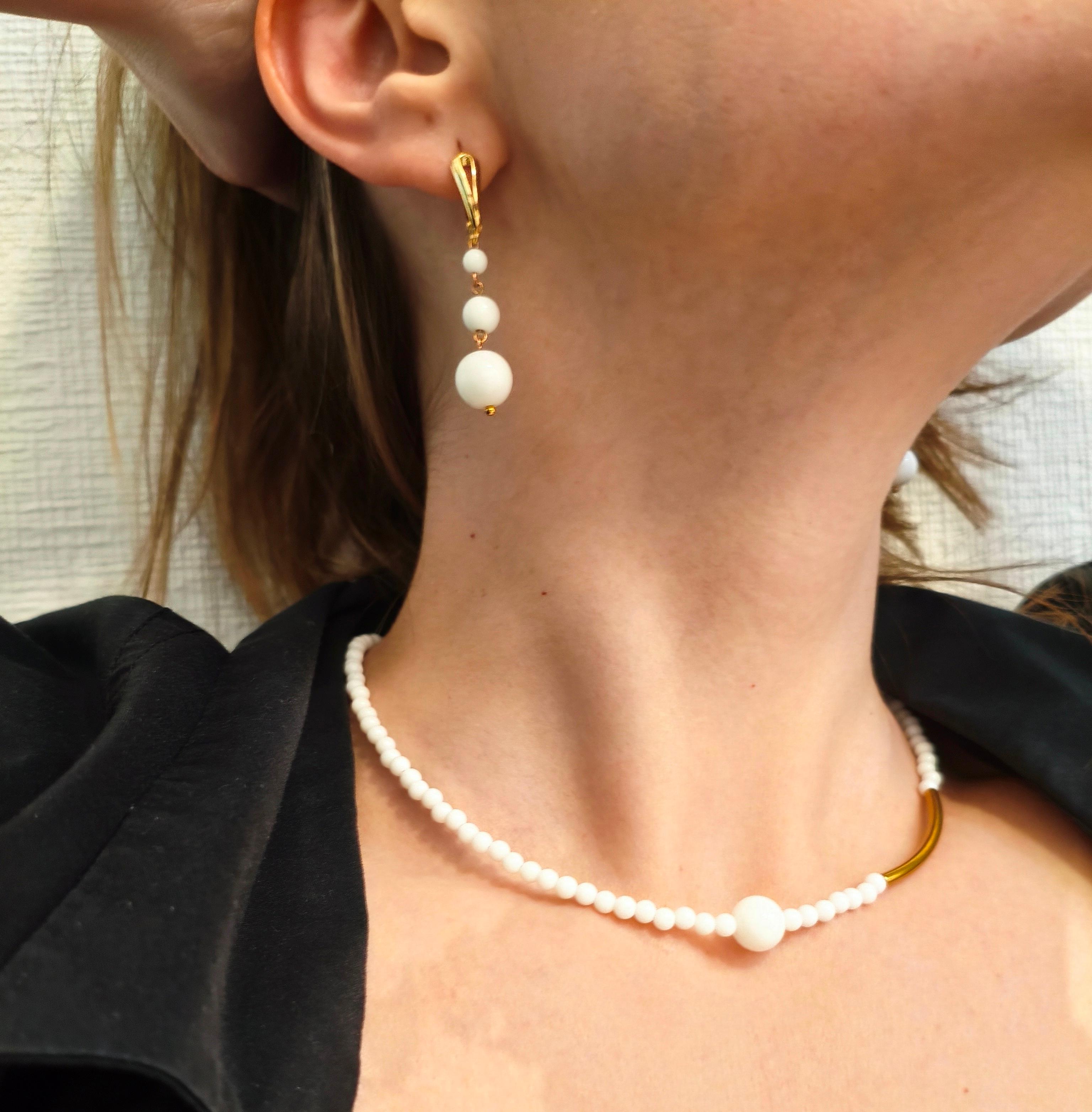 Колье и серьги белый агат + латунь/застёжка карабин ювелирный сплав цвет золото Колье 43-49 см Серьги длина от швензы 30 мм (швензы с родированным гипоалергенным покрытием К18 золото) Колье 1000 руб Серьги 800 руб Комплект 1800 руб