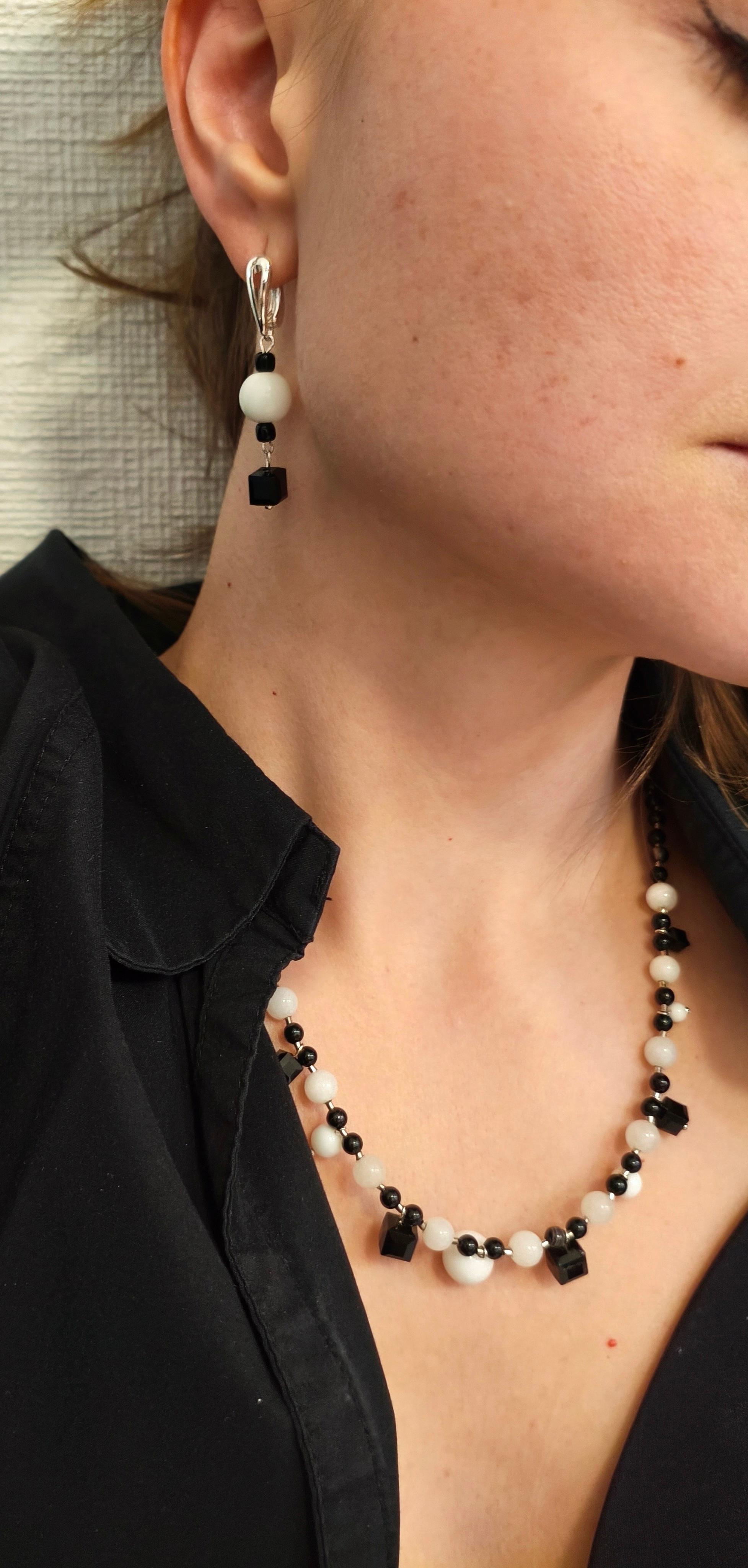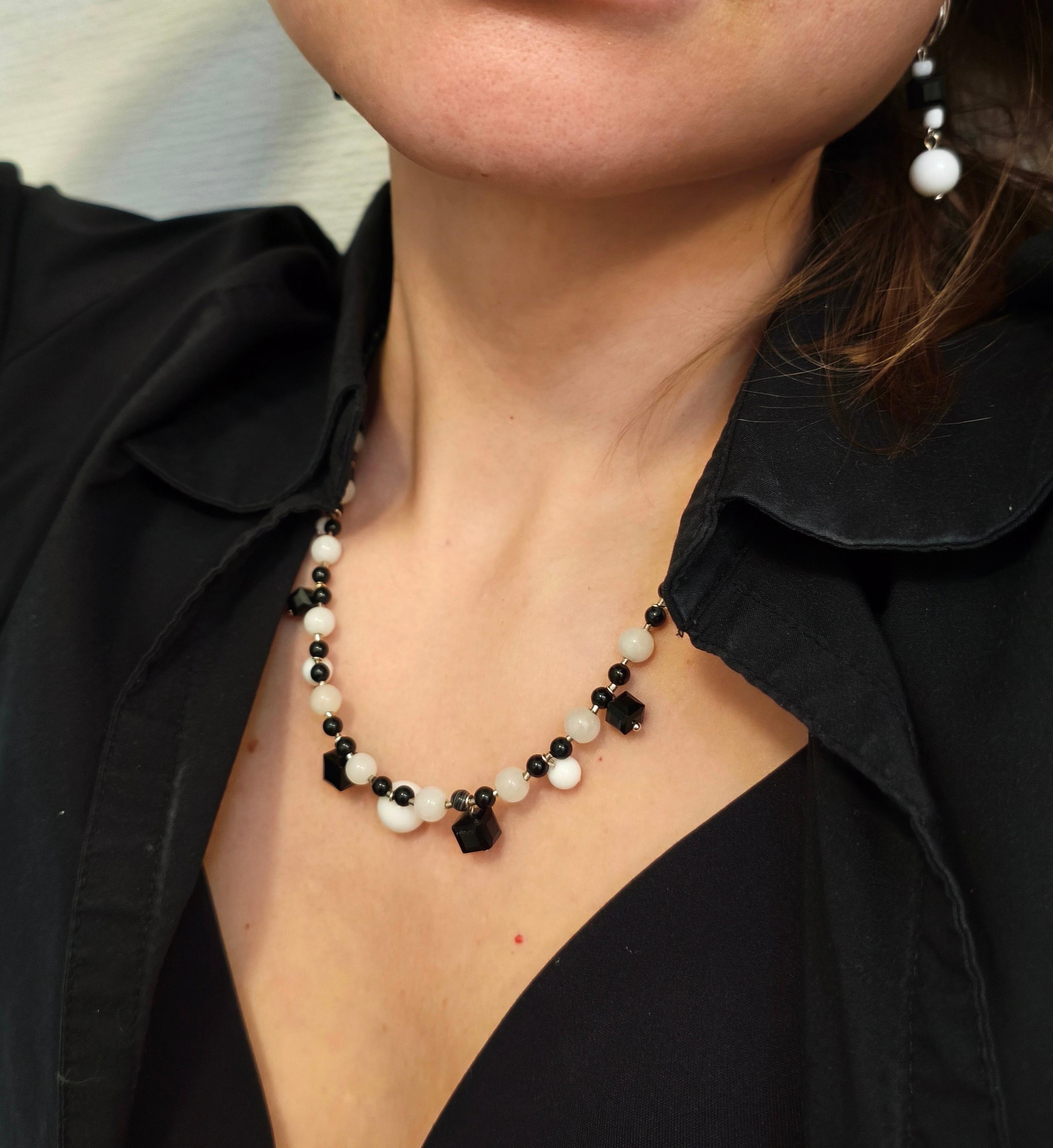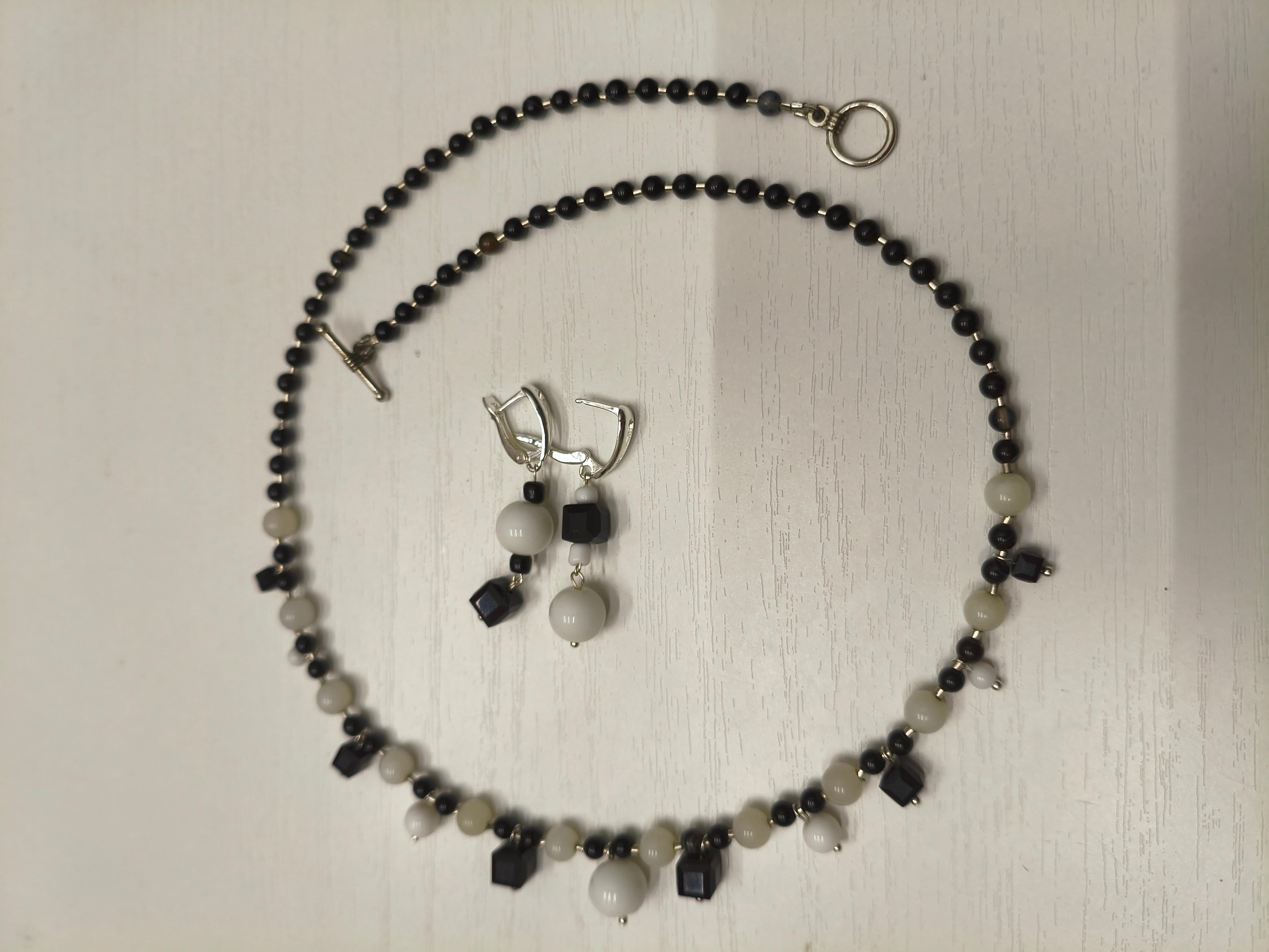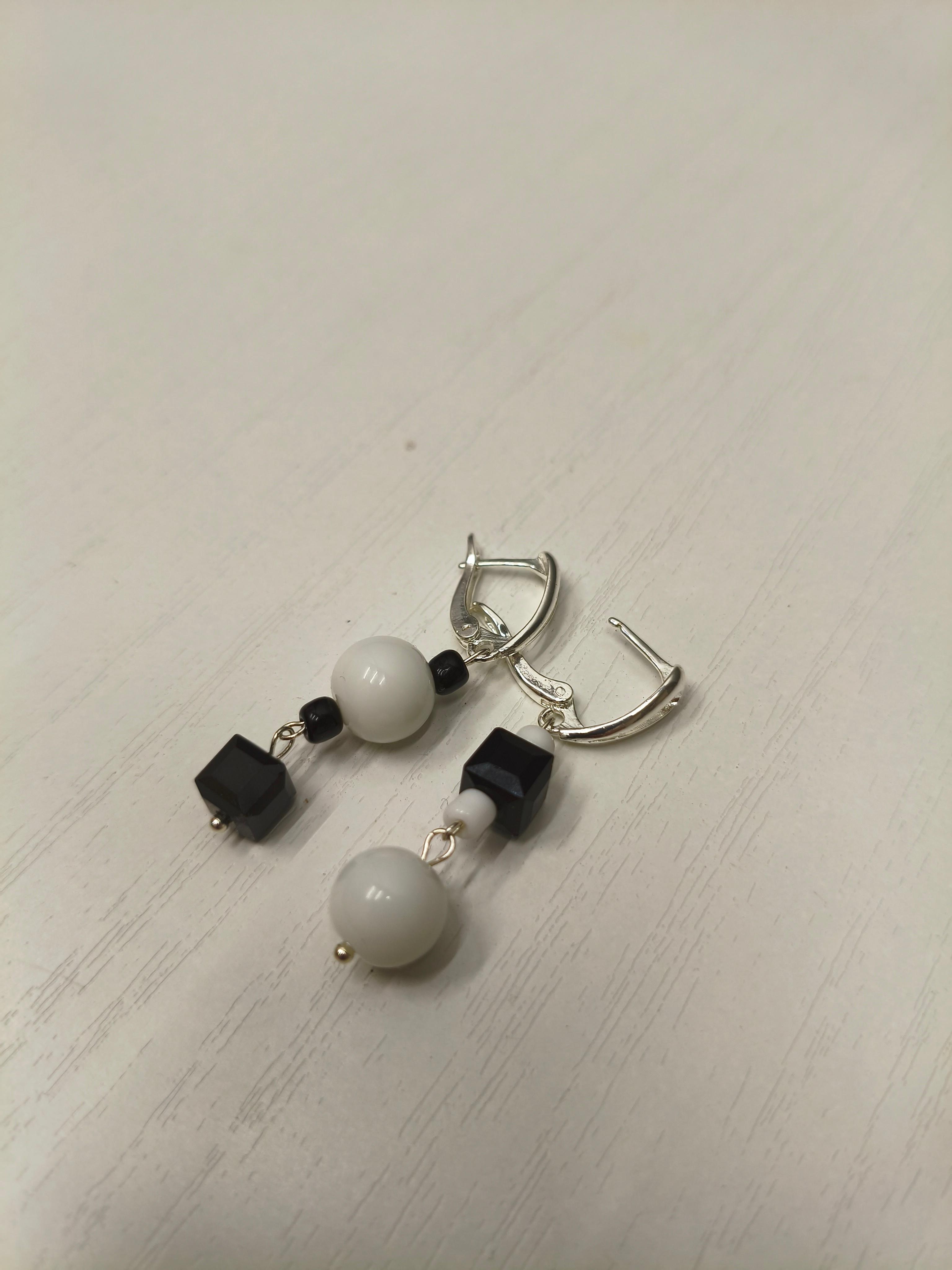 Серьги и колье «Шахматы» ✅Серьги ассиметричные: белый агат ф 8 мм + стекло/ фурнитура гипоаллергенное родиевое покрытие цвет серебро. Длина от швензы 30 мм. Стоимость: 600 руб. ✅Колье: Агат белый и черный ф 8/6/4 мм + стекло /фурнитура юв. Сплав цвет серебро/замок тоггл. Длина 52 см. Подвесные элементы все подвижные. Стоимость: 900 руб. 🔺Агат чёрный: защита от негатива, укрепление воли, поглощение тёмной энергии; 🔺Агат белый: чистота, гармония, успокоение, развитие интуиции.
